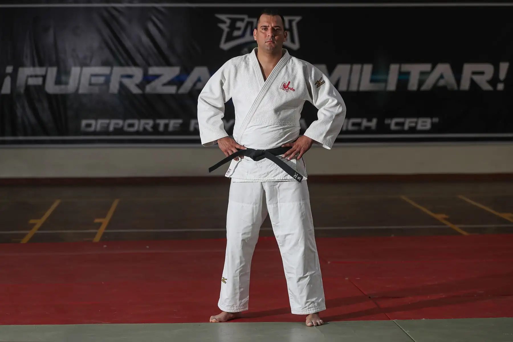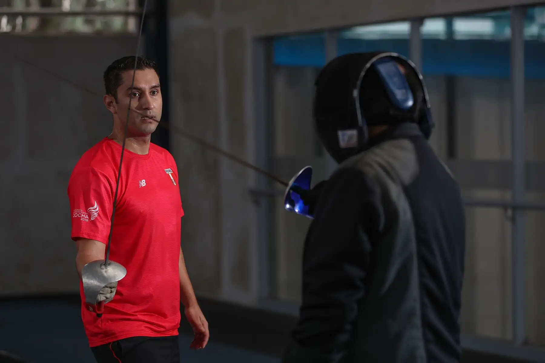 En esgrima participa el teniente 1° AP Ángel Adriel Torreblanca Alegría.