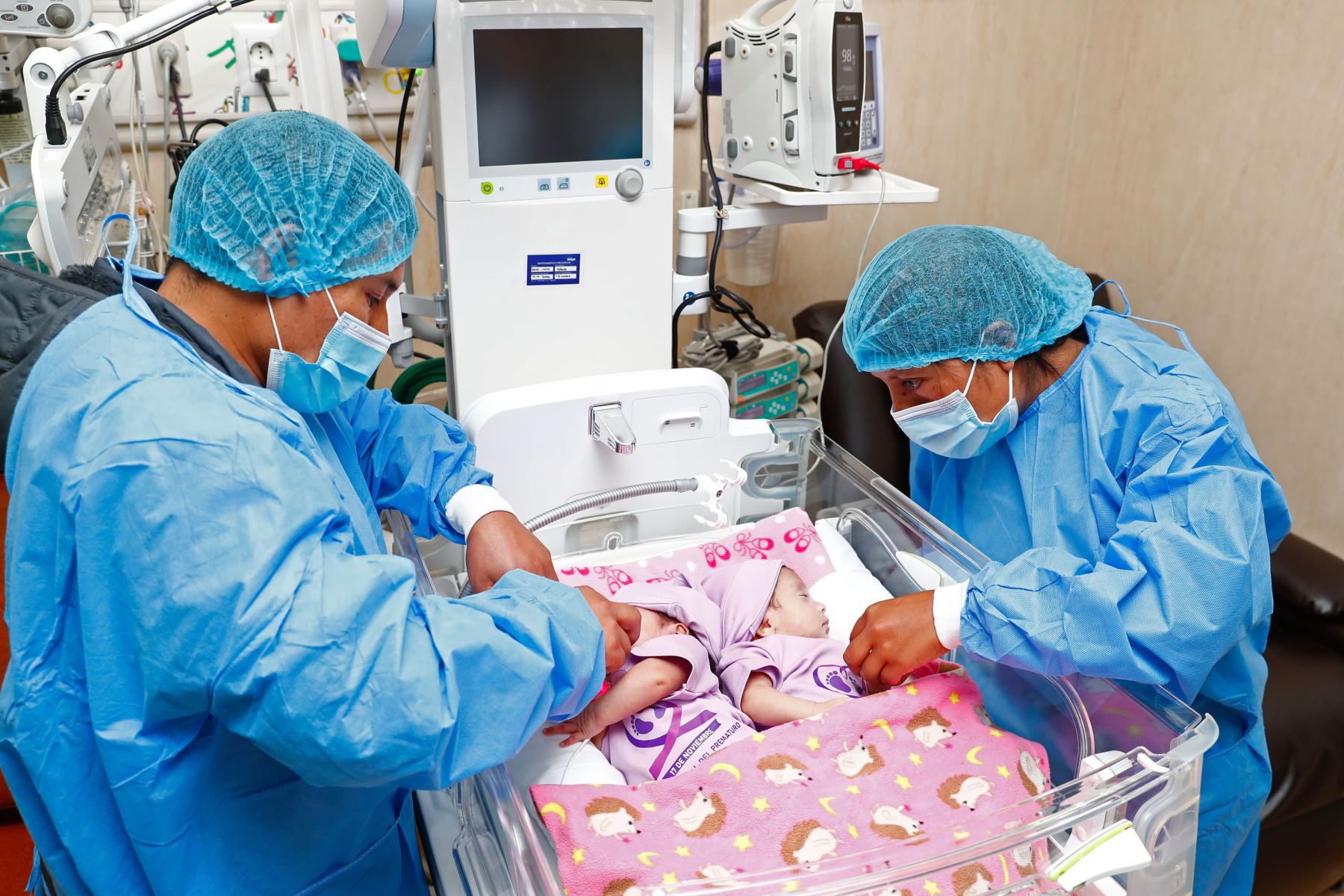17/11/2025 En el marco de las celebraciones del Día Mundial del Bebé Prematuro, el Instituto Nacional de Salud del Niño - San Borja presentó el caso de 2 bebés siameses prematuras que ingresaron al hospital el 8 de octubre de 2025. Actualmente las bebés se encuentran estables. Foto: ANDINA/Daniel Bracamonte