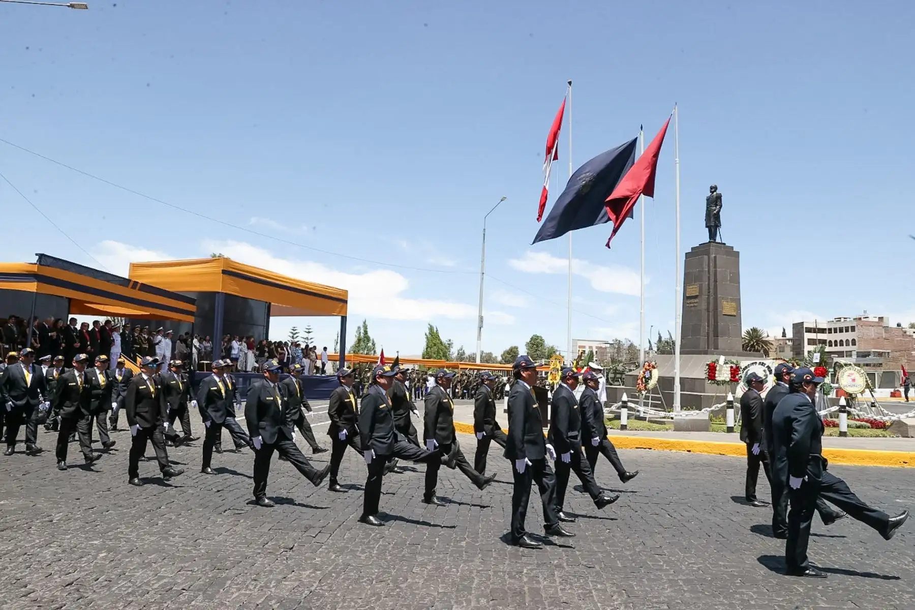 08/10/2025 Ceremonia conmemorativa por el 146 aniversario del combate de Angamos y el 204 aniversario de la Marina de Guerra en Arequipa donde Félix Paz, director de medios periodísticos de Editora Perú, colocó una ofrenda floral al monumento del gran almirante Miguel Grau Seminario.