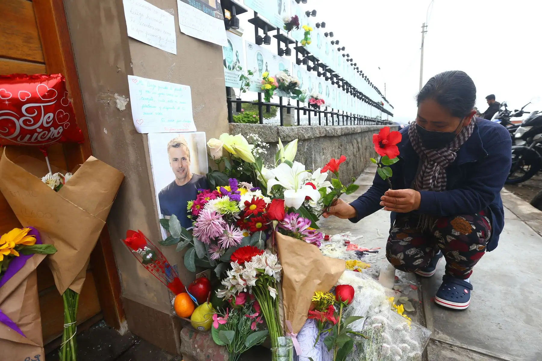 06/08/2024 Con flores, tarjetas y mensajes de amor, fans del fallecido actor Diego Bertie le rinden homenaje en la entrada de su domicilio ubicado en el Malecón de la Reserva, en Miraflores.