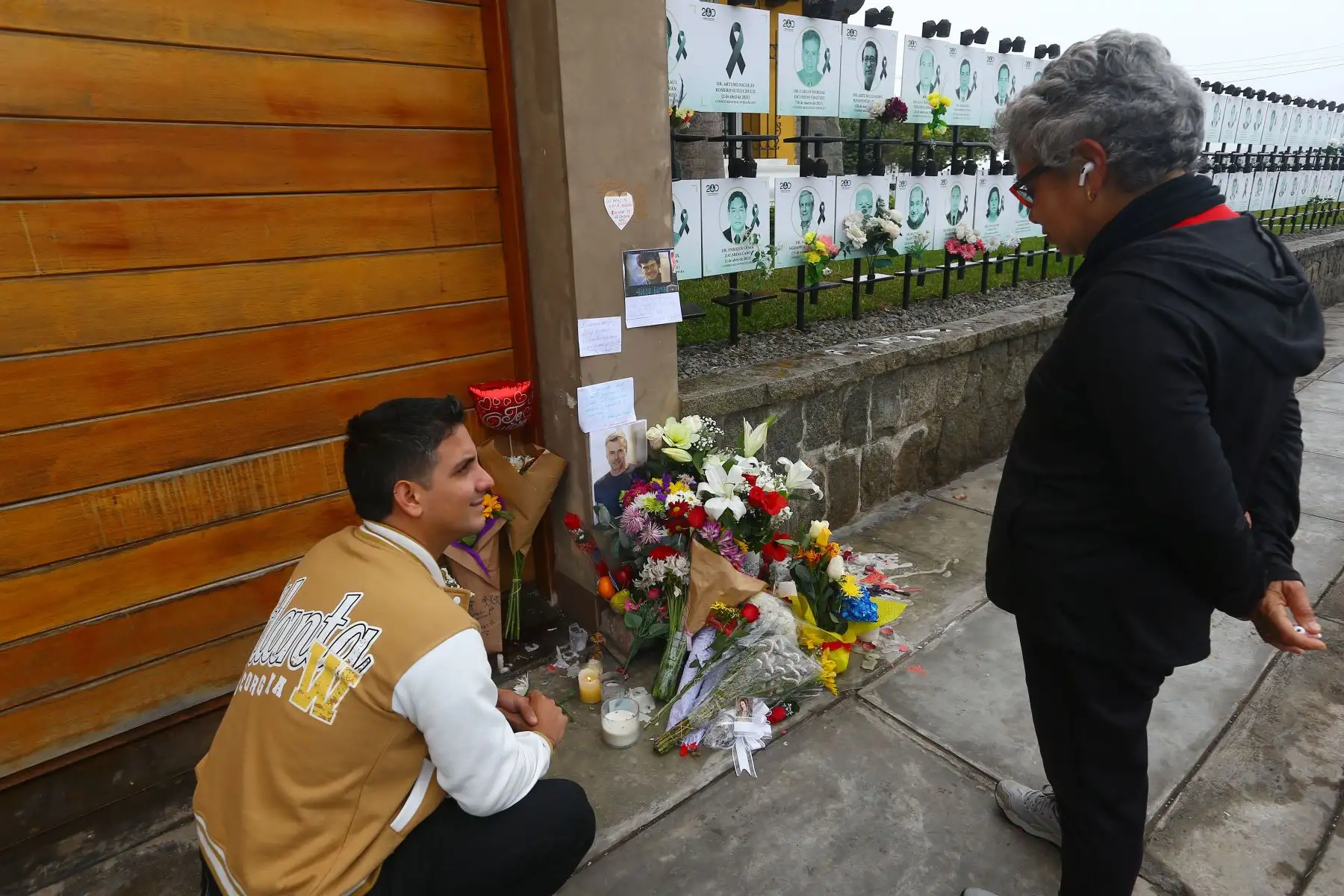 05/08/2025 Con flores, tarjetas y mensajes de amor, fans del fallecido actor Diego Bertie le rinden homenaje en la entrada de su domicilio ubicado en el Malecón de la Reserva, en Miraflores.