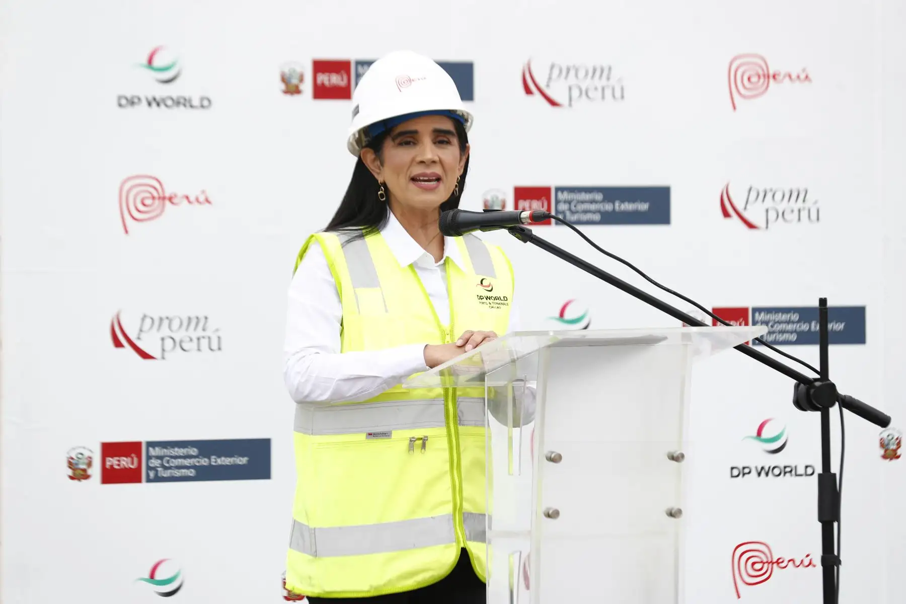 08/11/2024 La ministra de Comercio Exterior y Turismo, Úrsula León, el presidente ejecutivo de Promperú, Ricardo Limo del Castillo, y el CEO de DP World Perú, Carlos Merino, participaron en la ceremonia de entrega del Certificado de Licencia de la Marca Perú a DP World Callao. Foto: ANDINA/Daniel Bracamonte