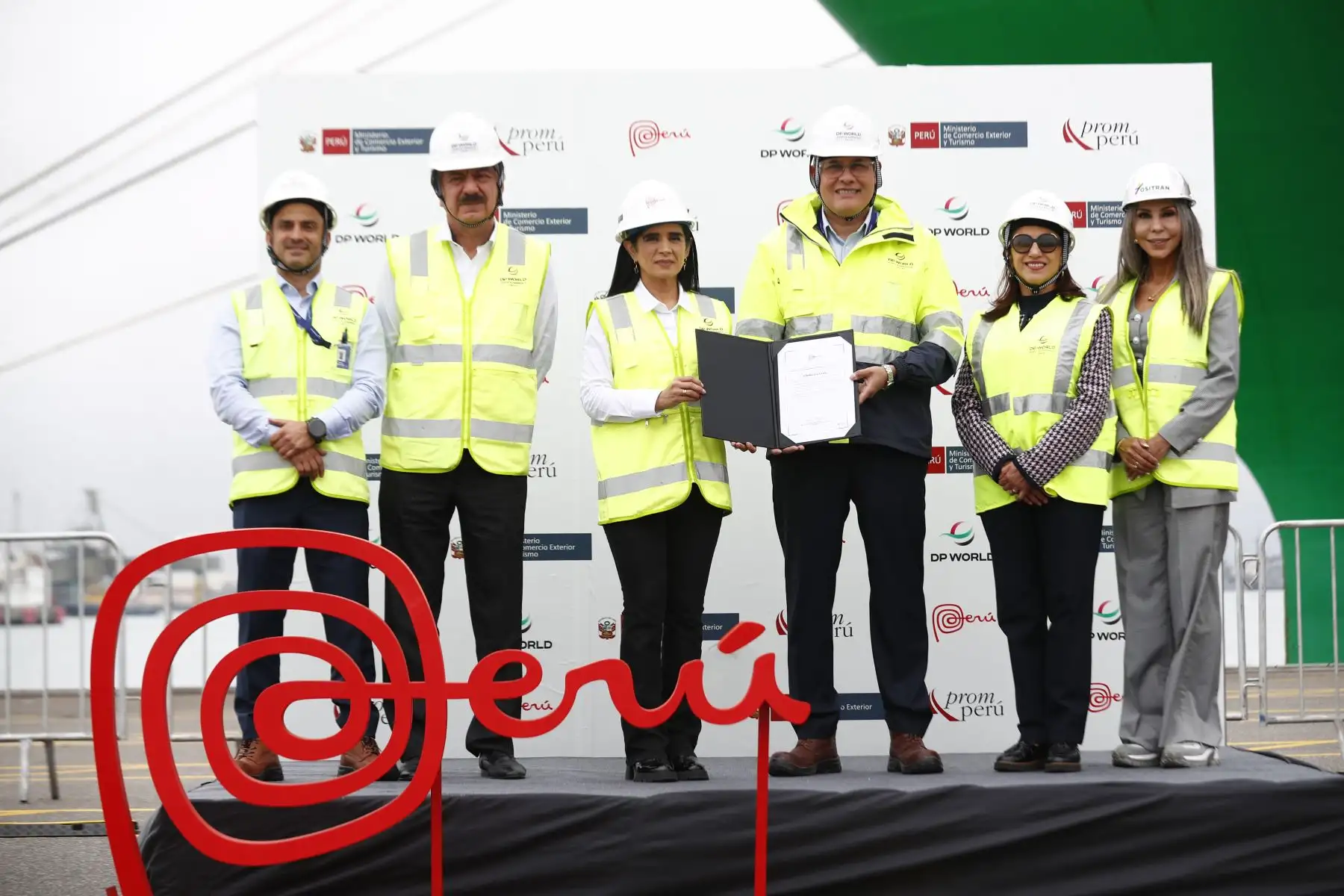 08/11/2024 DP World Callao, el terminal de contenedores más grande de la costa oeste de Sudamérica, recibió su Certificado de Licencia de la Marca Perú en una ceremonia especial, a cargo del Ministerio de Comercio Exterior y Turismo y Promperú. Foto: ANDINA/Daniel Bracamonte