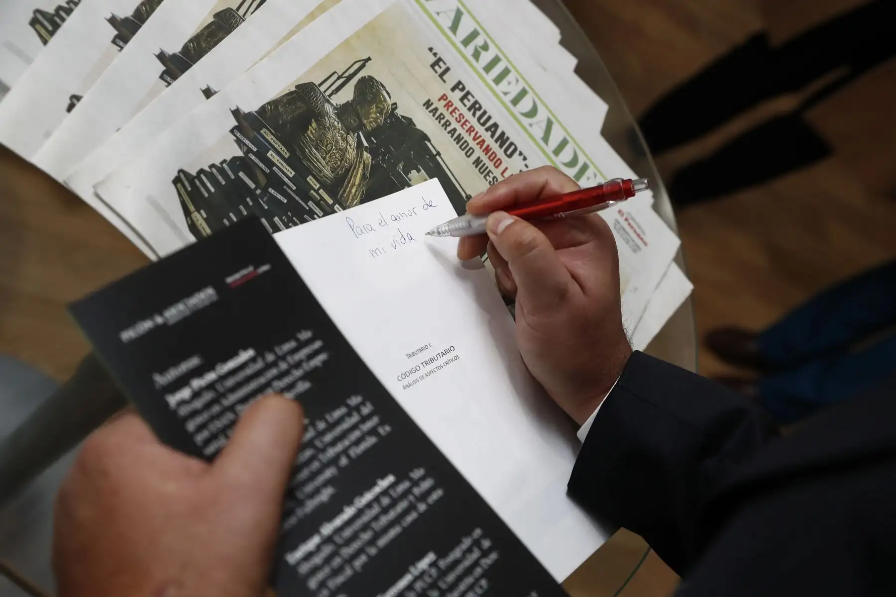 31/07/2025 El fondo editorial de Editora Perú realizó la presentación del libro "Tributario I: Código Tributario - Análisis de aspectos críticos" del Estudio Picón & Asociados, en el auditorio José Maria Arguedas de la Feria Internacional del Libro FIL Lima 2025. Posterior a la presentación, se realizó una firma de libros en el stand de Editora Perú. Foto: ANDINA/Daniel Bracamonte