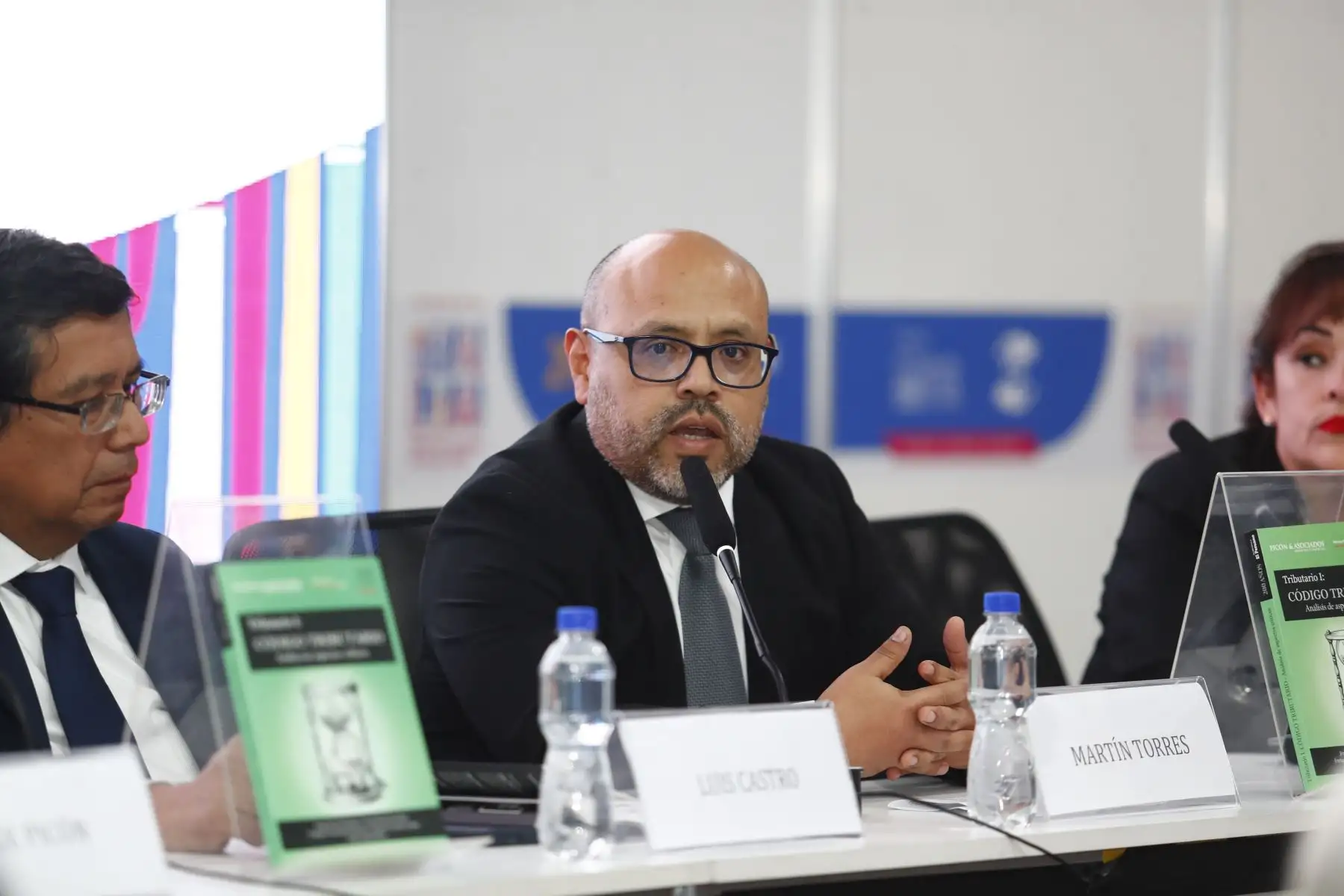 31/07/2025 El fondo editorial de Editora Perú realizó la presentación del libro "Tributario I: Código Tributario - Análisis de aspectos críticos" del Estudio Picón & Asociados, en el auditorio José Maria Arguedas de la Feria Internacional del Libro FIL Lima 2025. Estuvieron presentes los ponentes Jorge Picón, Roxana Terrones, Sandra Gonzales y Martín Torres. Foto: ANDINA/Daniel Bracamonte