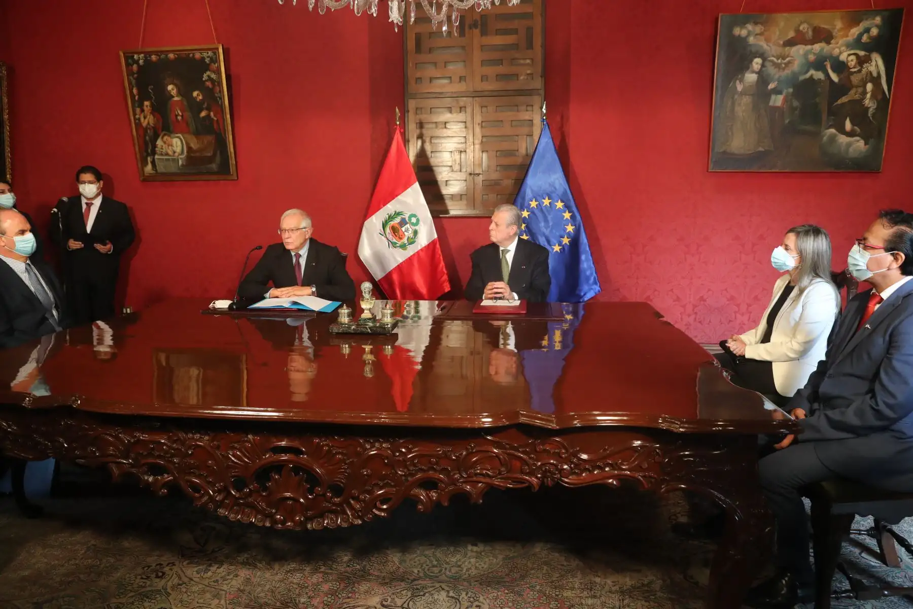 01/11/2021 Canciller Oscar Maúrtua recibe a Josep Borrell Alto representante de la Unión Europea para Asuntos Exteriores y Política de Seguridad, en evento realizado en el Palacio de Torre Tagle. Foto: ANDINA/Andrés Valle