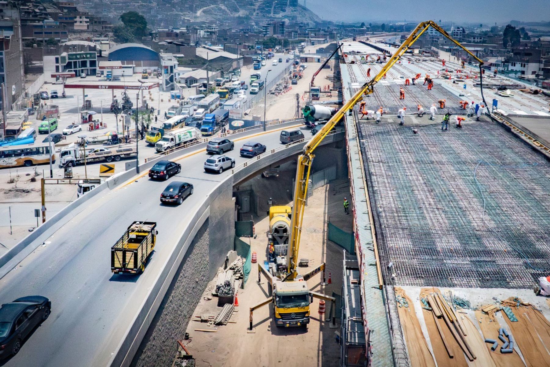 17/11/2025 La construcción del nuevo bypass Las Torres lleva un 85 % de avance de obra, proyectándose a concluir la próxima semana el vaciado de concreto en las losas, donde posteriormente se asfaltarán las pistas en los seis carriles (tres por sentido) que tendrá el viaducto de 1,4 km. En paralelo, se vienen instalando los muros jerseys que protegerán a los vehículos en el bypass. Foto:ANDINA/Difusión