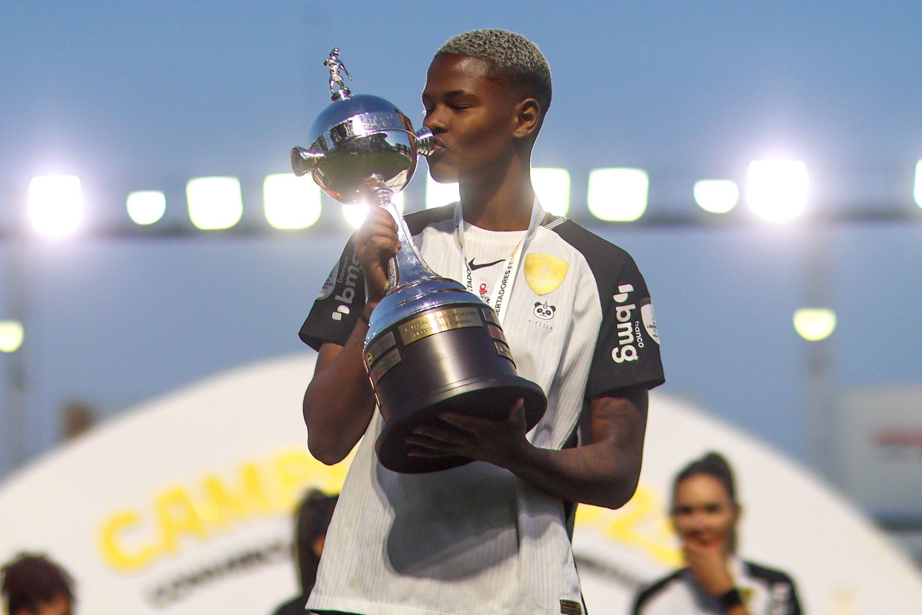 19/10/2025 Jhonson de Corinthians besa el trofeo este sábado, al ganar en la final de la Copa Libertadores Femenina entre Corinthians y Deportivo Cali en el estadio Florencio Sola en Banfield (Argentina). Foto: AN DINA/ EFE