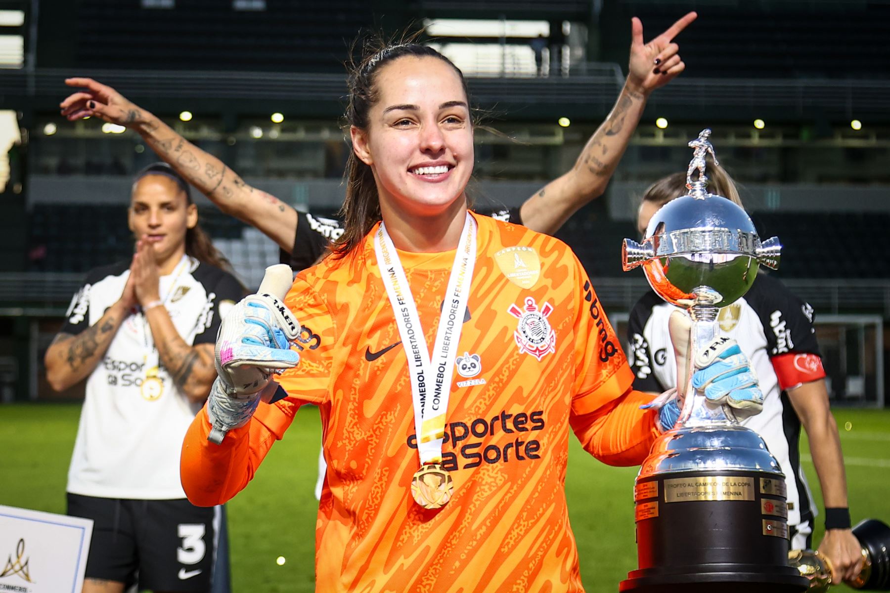 19/10/2025 Gabi Zanott de Corinthians levanta el trofeo este sábado, al ganar en la final de la Copa Libertadores Femenina entre Corinthians y Deportivo Cali en el estadio Florencio Sola en Banfield (Argentina). Foto: ANDINA/EFE