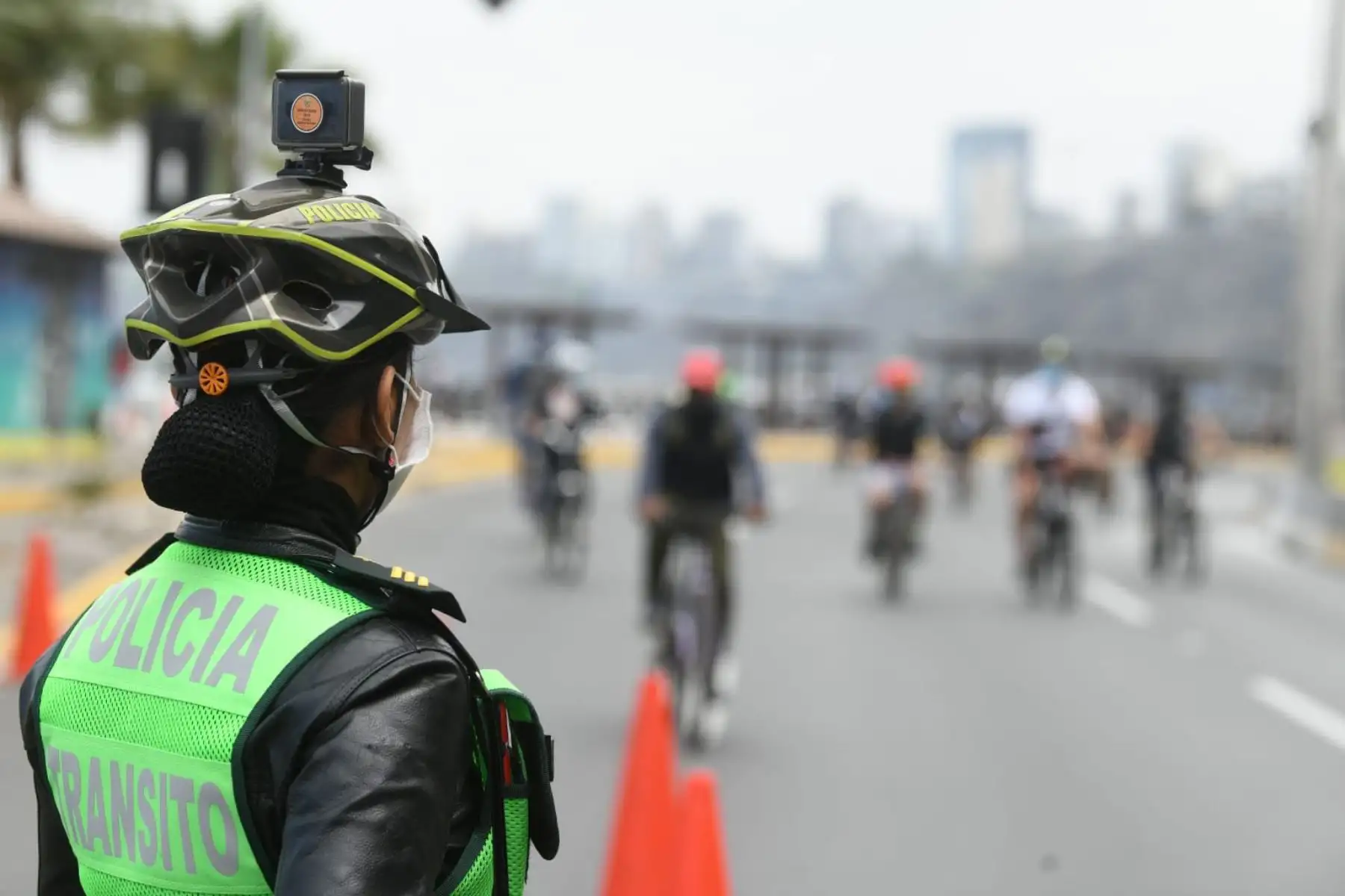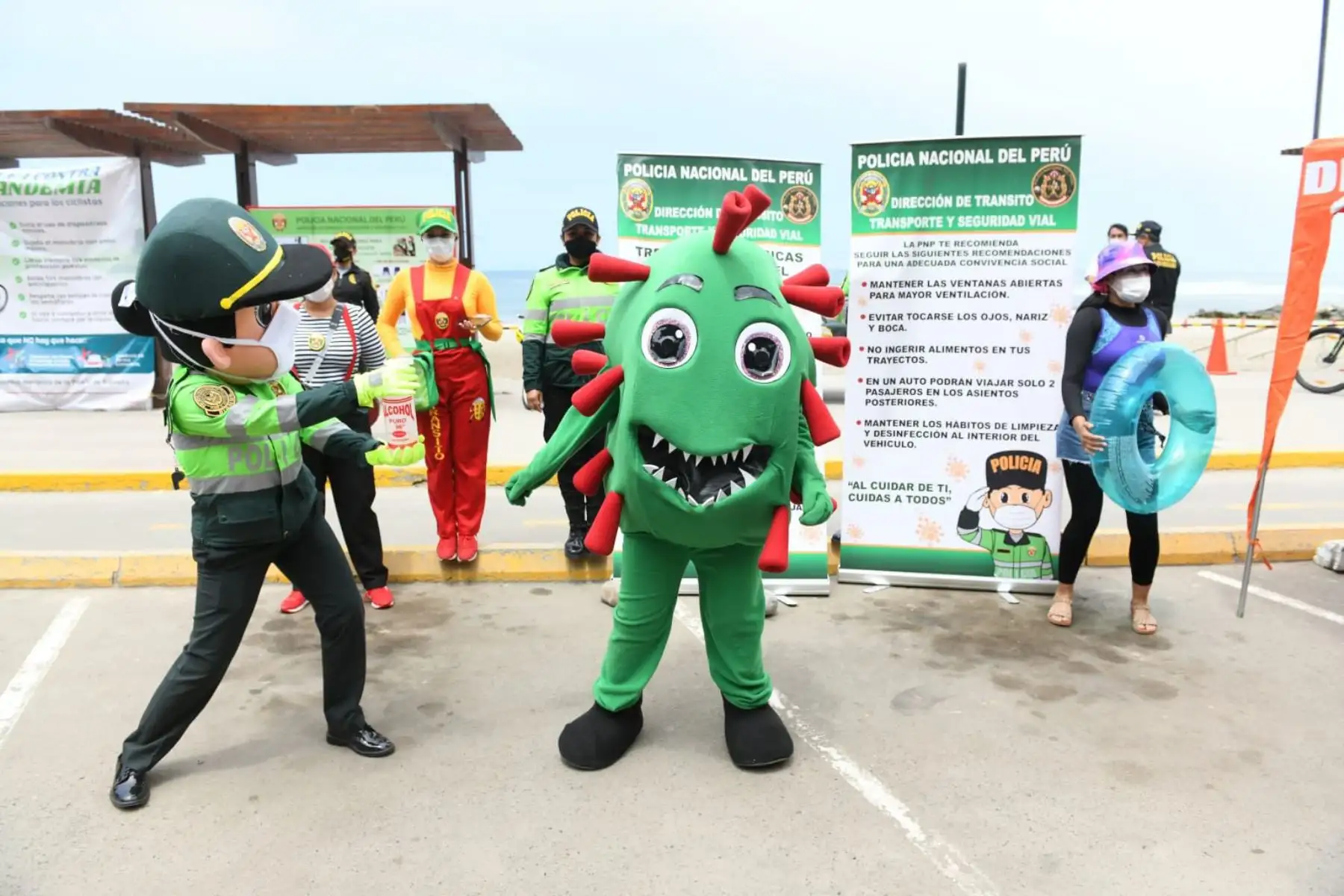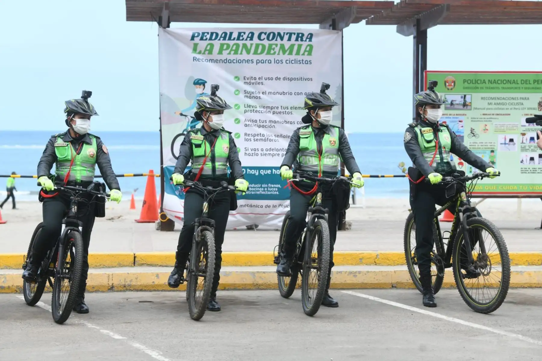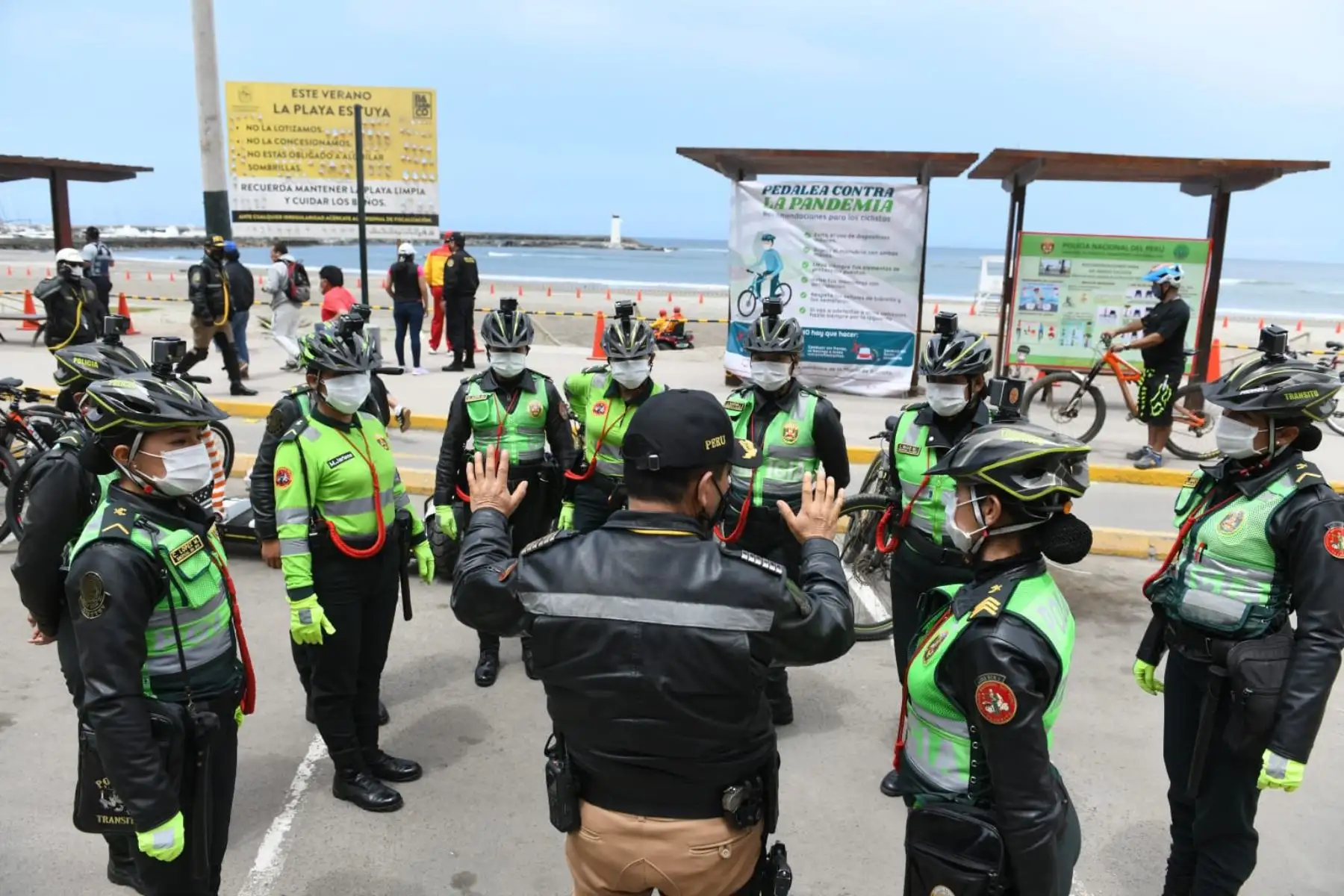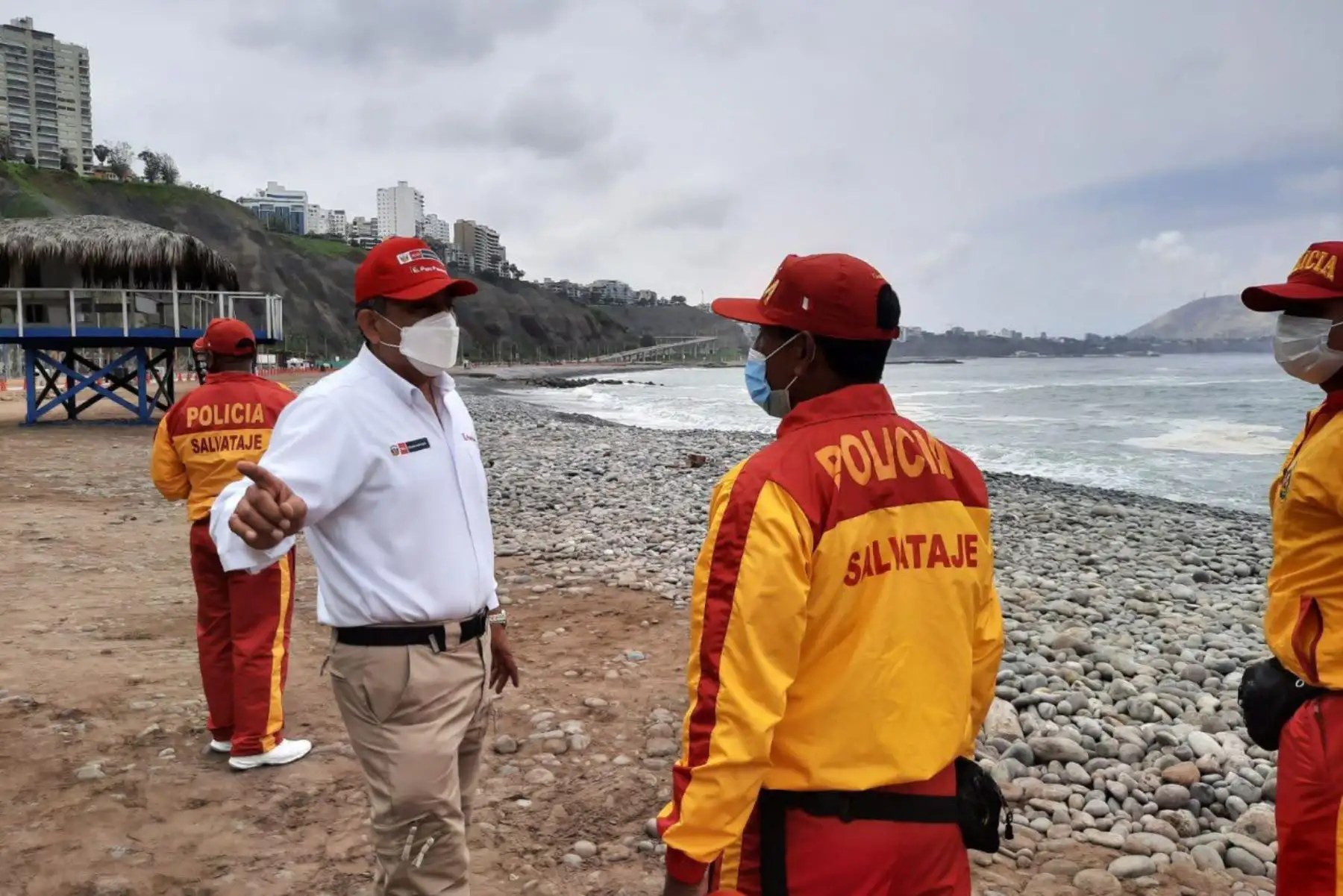 08/11/2020 El ministro del Interior, César Gentille, supervisa las instalaciones del personal policial en la playa del circuito de la Costa Verde de Lima.
