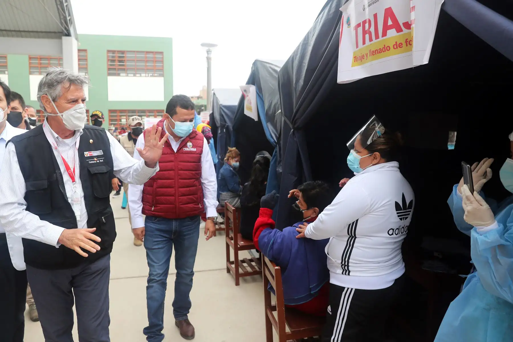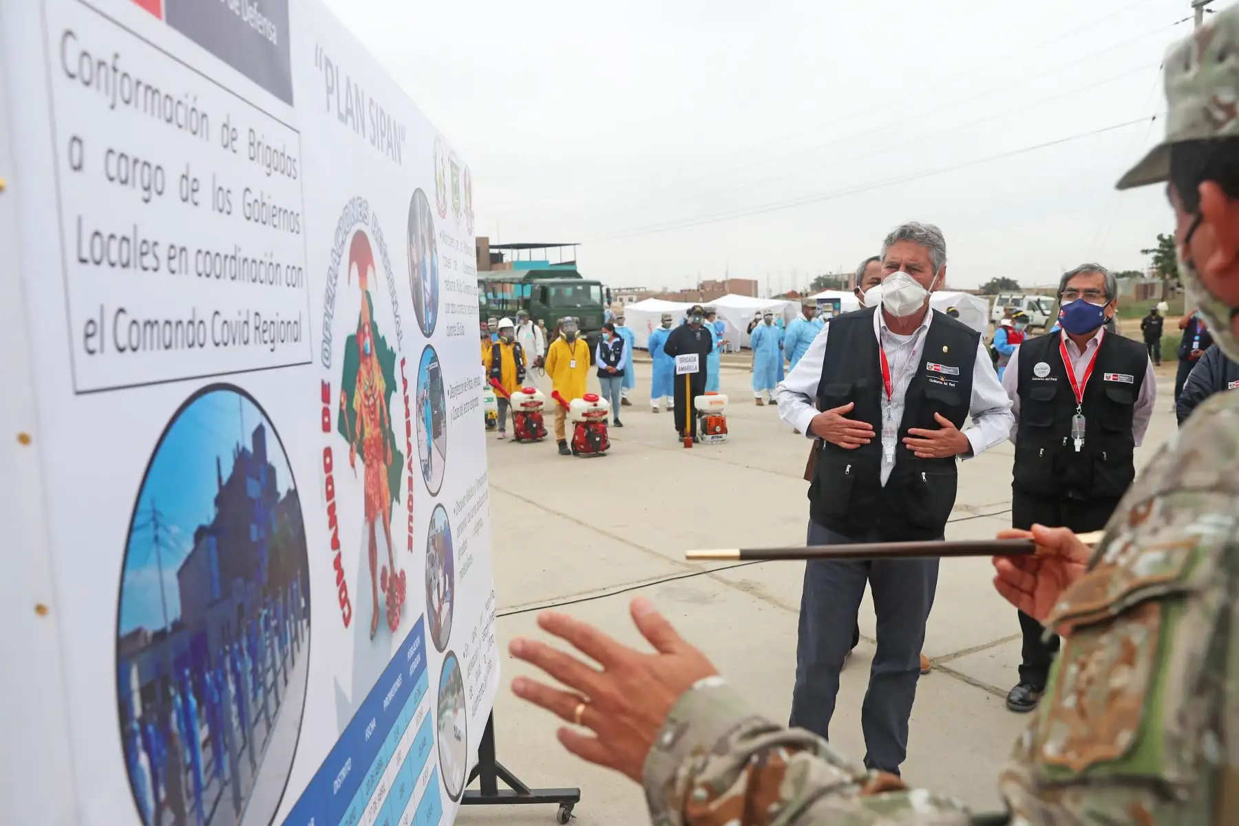 El presidente Francisco Sagasti, supervisa el trabajo del Plan Sipán frente a la covid-19 y la jornada de vacunación en Chiclayo