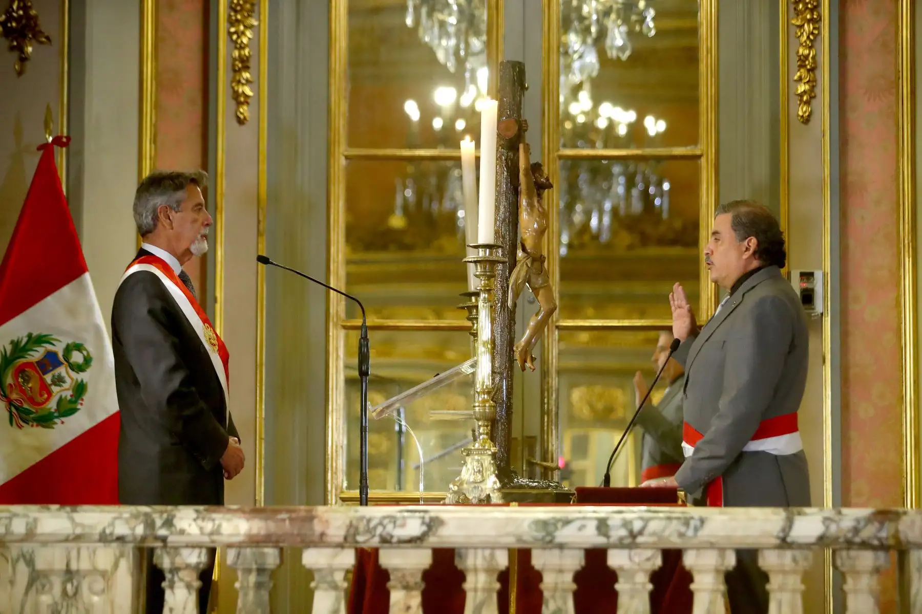 02/12/2020 El presidente de la Republica, Francisco Sagasti, toma juramento al nuevo ministro del Interior, Cluber Fernando Aliaga Lodtmann, en la sede de Palacio de Gobierno.