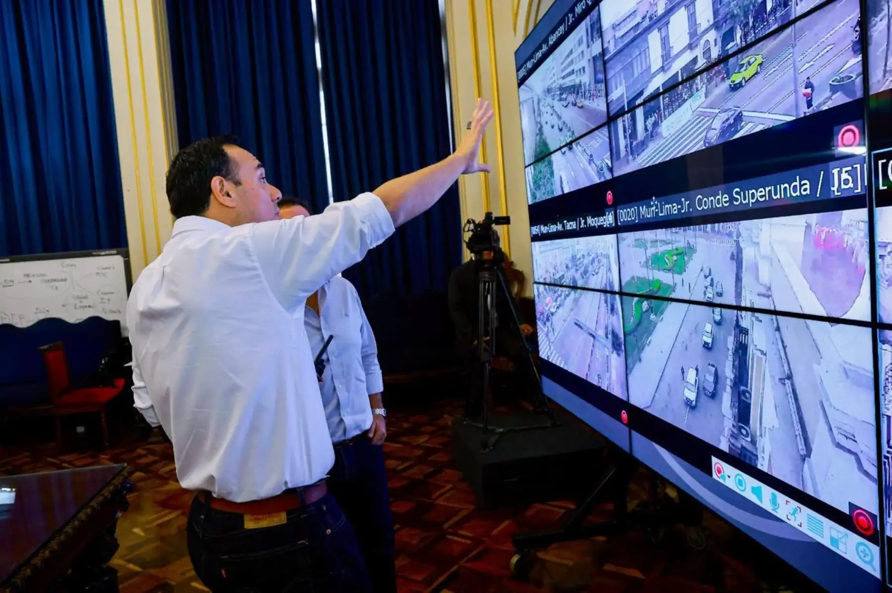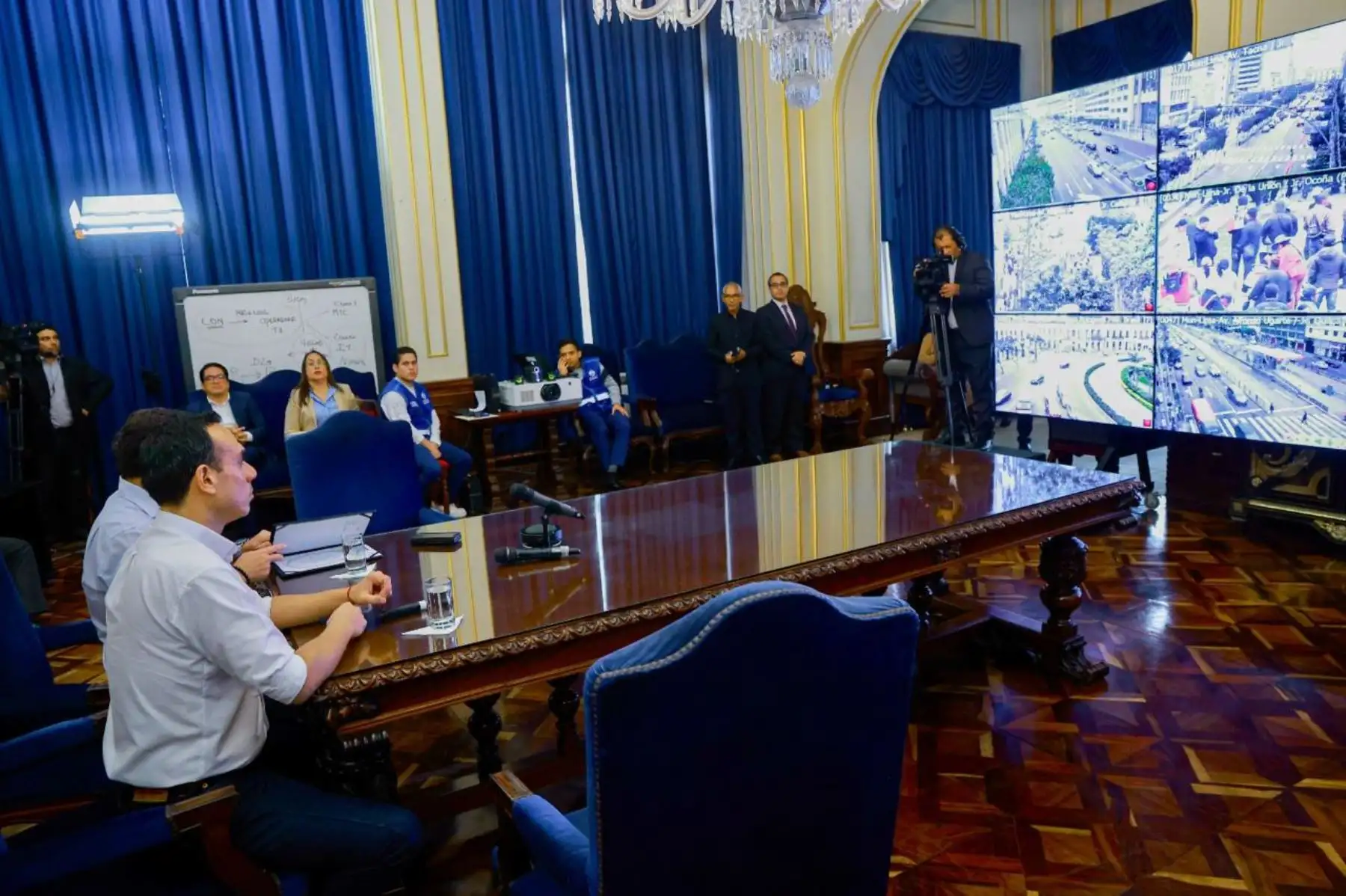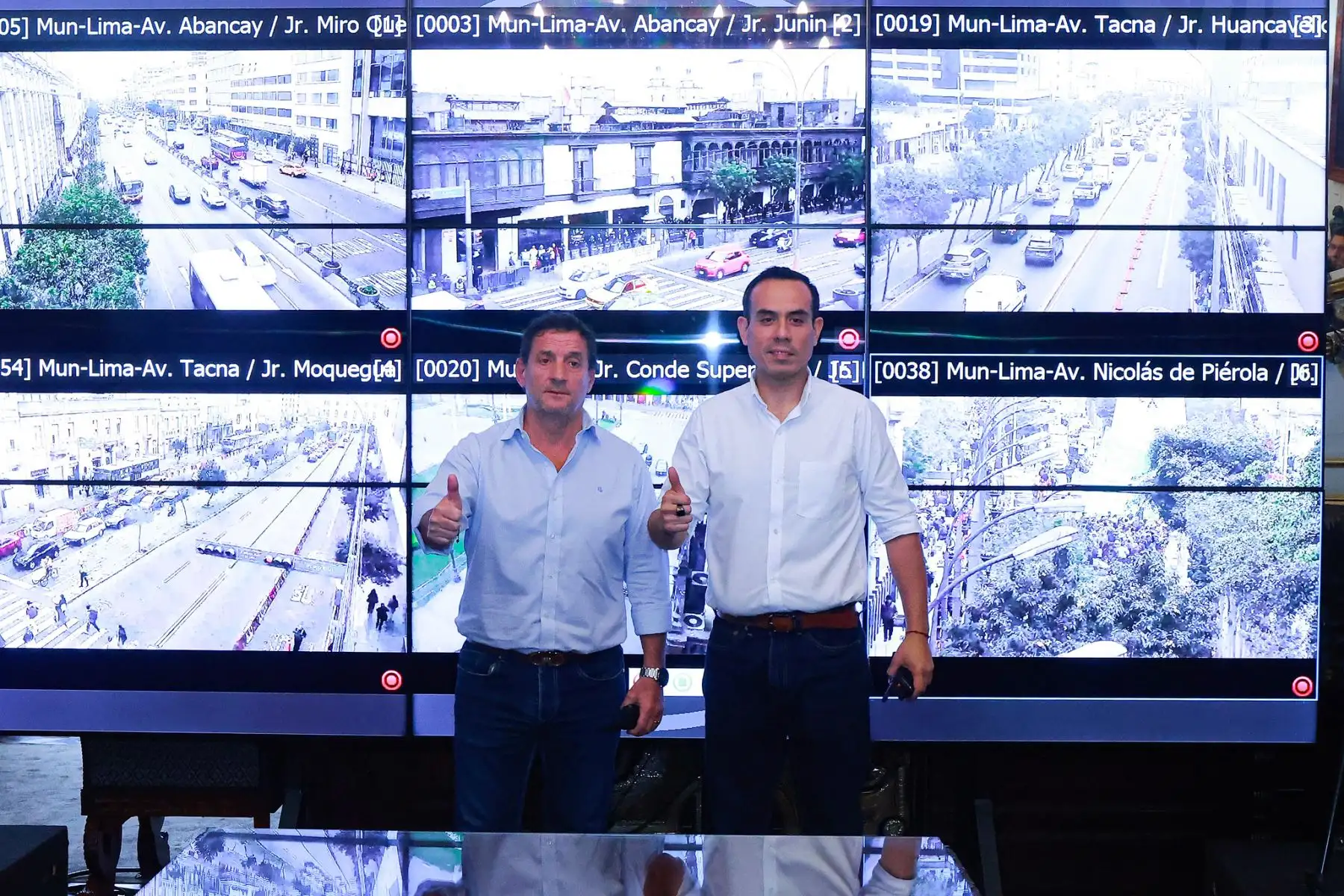 15/10/2025 En la sede de la Municipalidad de Lima, el presidente José Jerí Oré y el alcalde de Lima, Renzo Reggiardo, coordinaron acciones y estrategias para resguardar el orden en la ciudad. Asimismo, supervisaron el sistema de videovigilancia implementadas para prevenir delitos y fortalecer la seguridad ciudadana en la capital. Foto: ANDINA/Prensa Presidencia