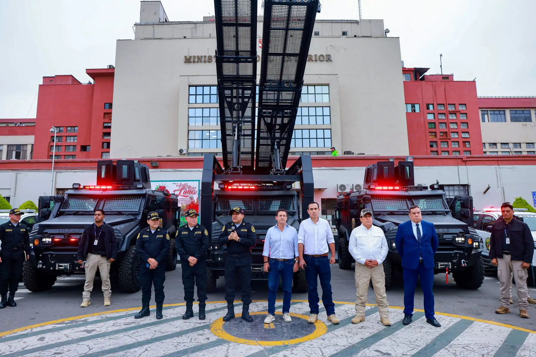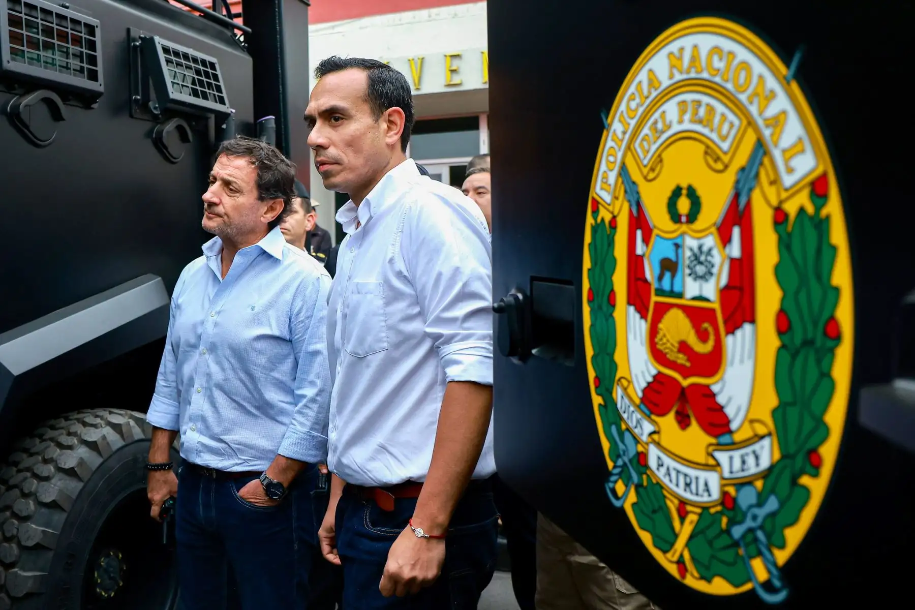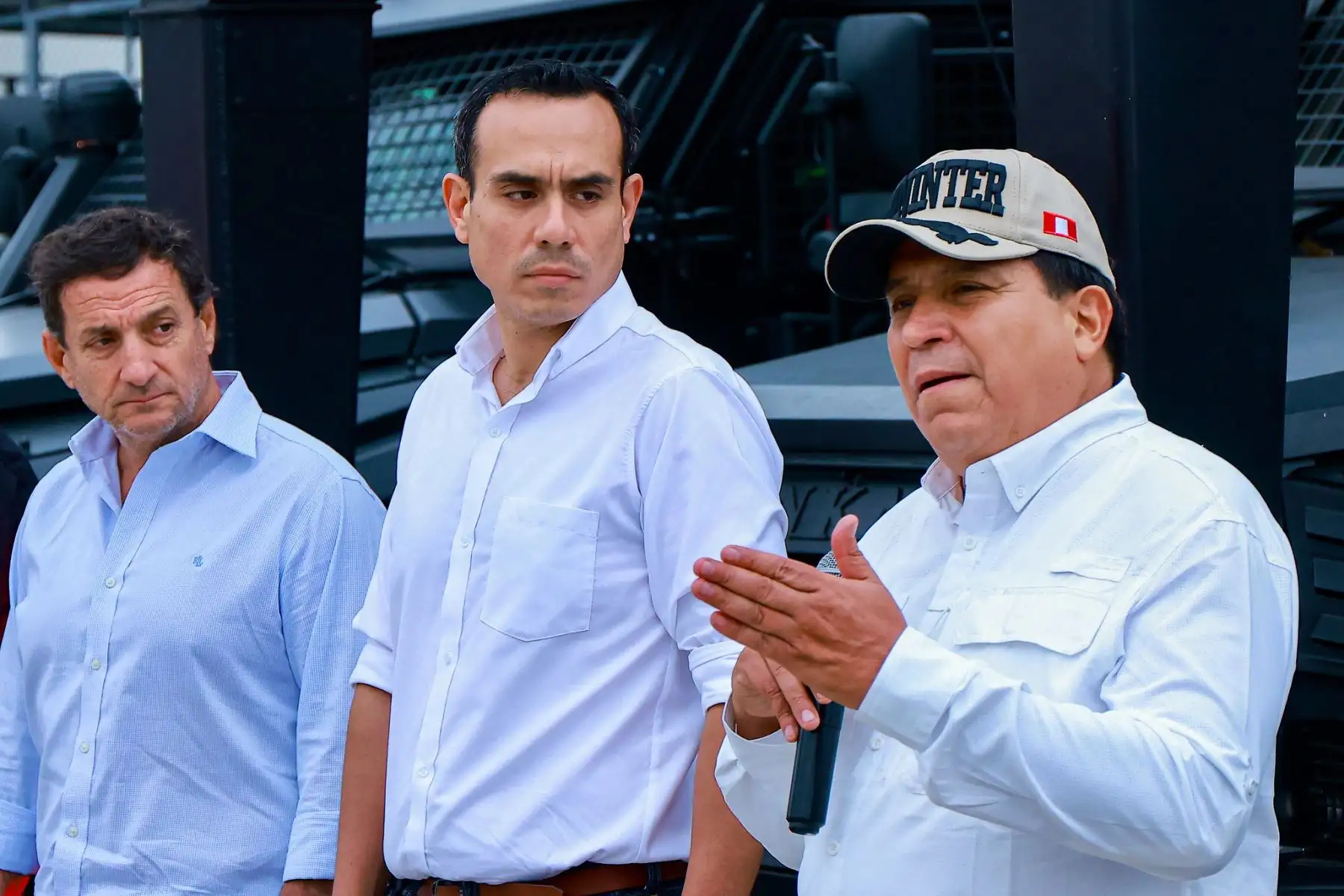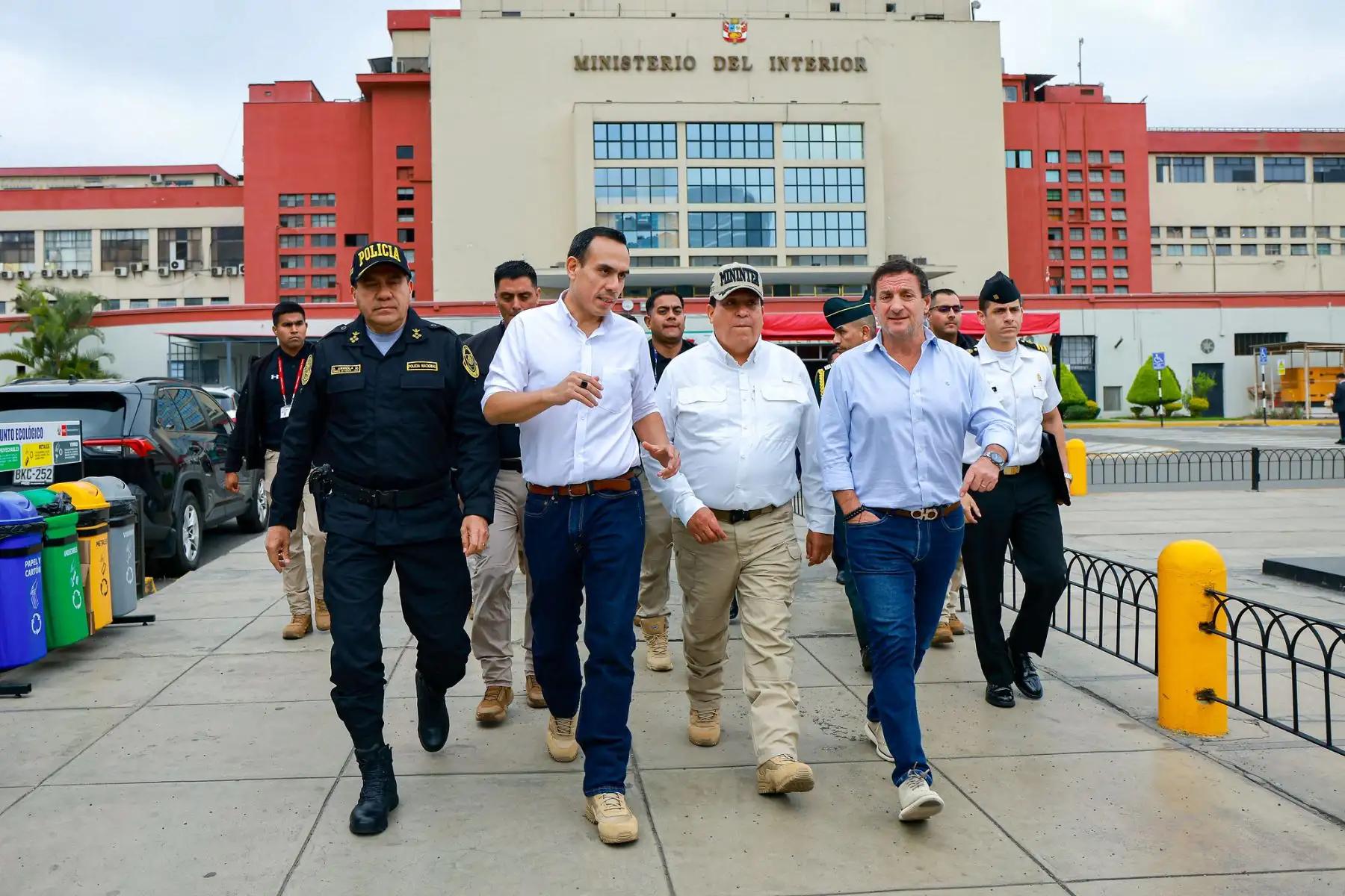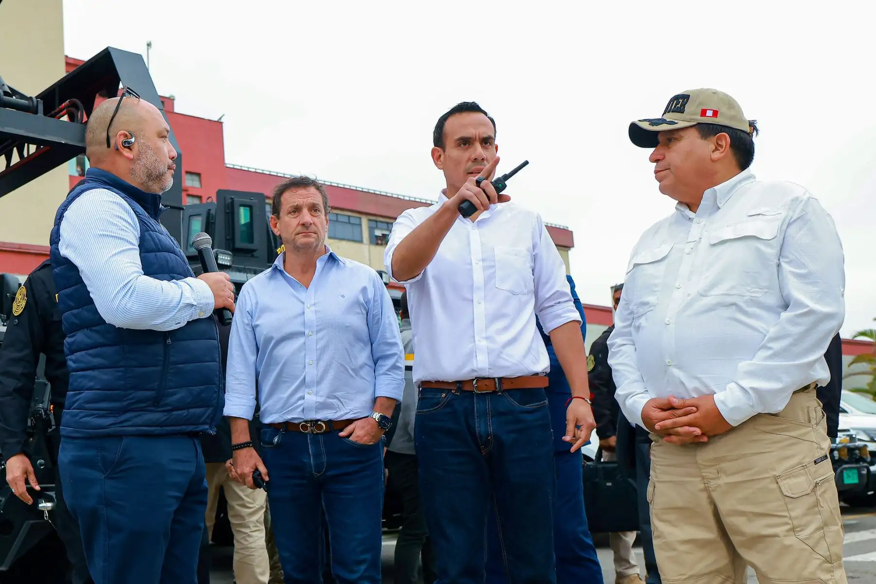 15/10/2025 El presidente José Jerí Oré, el ministro Vicente Tiburcio, el comandante general de la PNP, Oscar Arriola, y el alcalde de