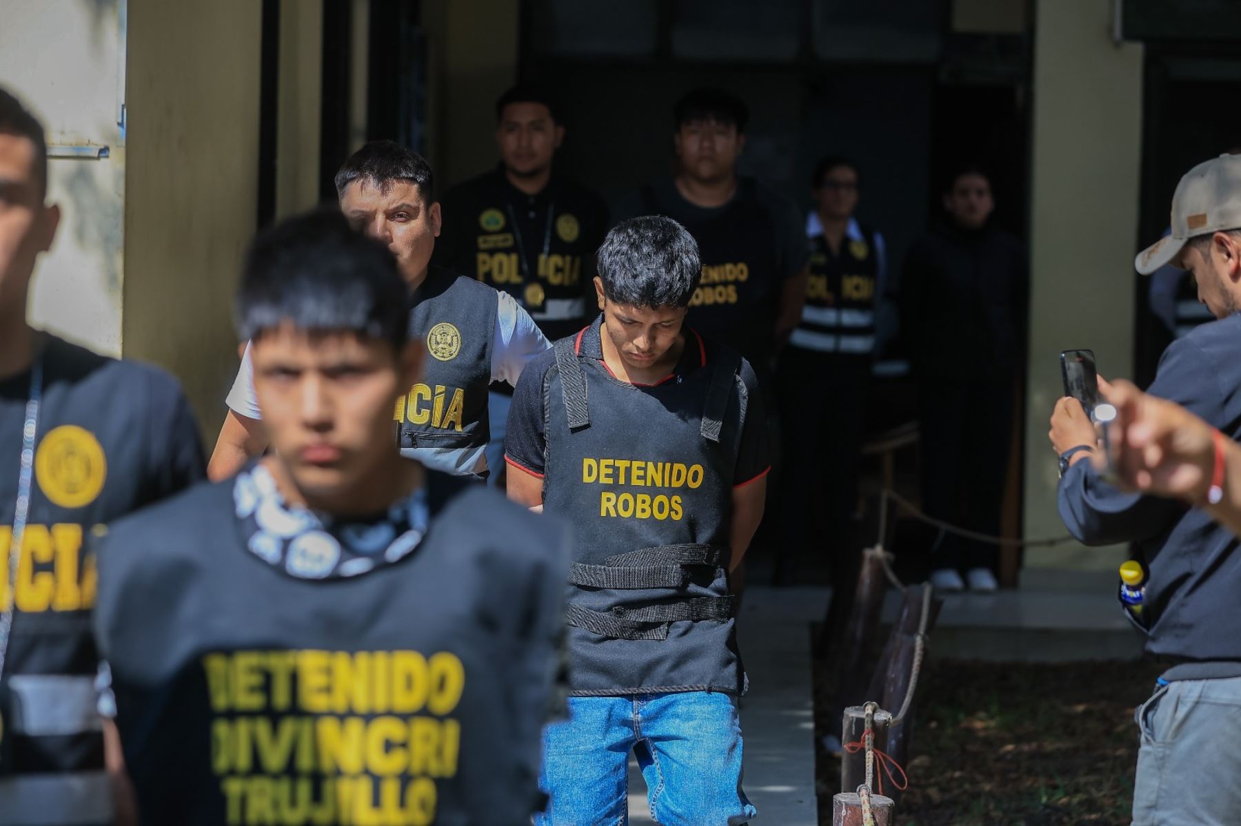 El presidente de la república, José Jerí, participó en la presentación de los miembros de la organización criminal "Los Gatilleros del Alto Chepén". Los detenidos son presuntos autores de delitos como homicidio, tenencia ilegal de armas y otros crímenes.  Foto: ANDINA/Prensa Presidencia