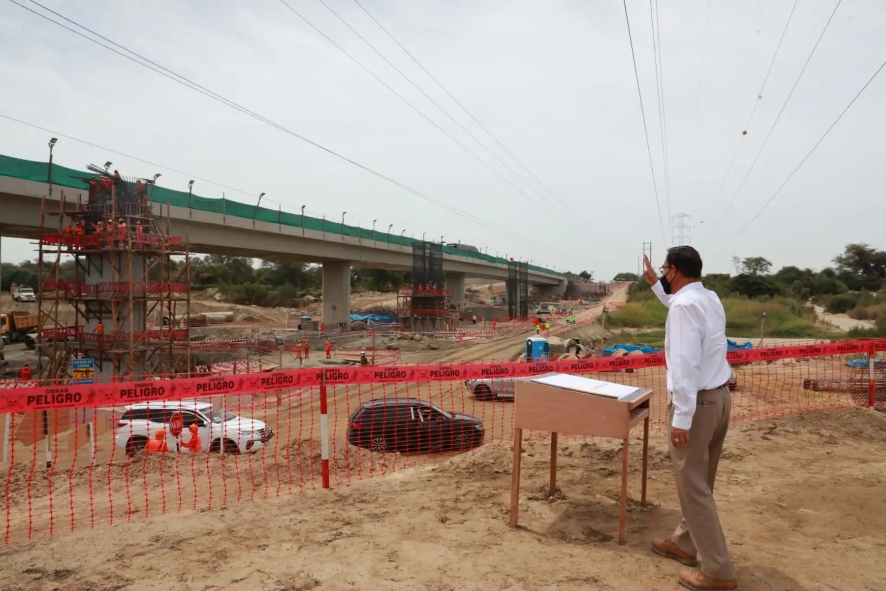 30/10/2020 El presidente Martin Vizcarra, supervisa el avance de obras del Puente Grau de Piura, infraestructura de moderno diseño que asegura el tránsito vehicular y el traslado de productos agrícolas a los mercados, incluso durante la temporada de lluvias.