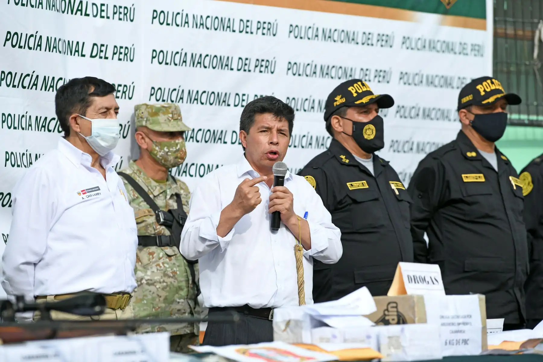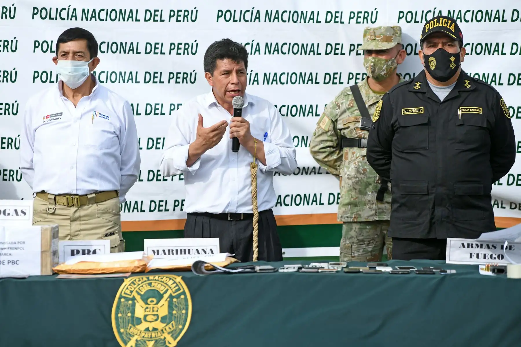 20/02/2022 Presidente Pedro Castillo participa en la presentación de los resultados de los operativos realizados por la Policía Nacional y la Sucamec en Cajamarca, durante la última semana.