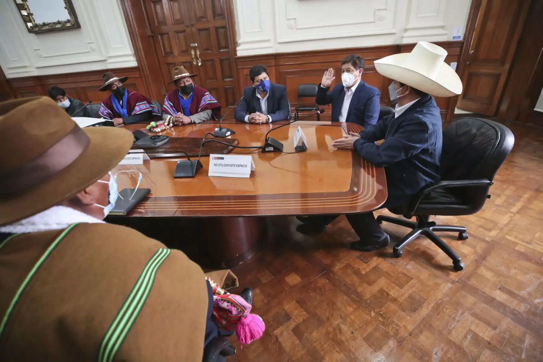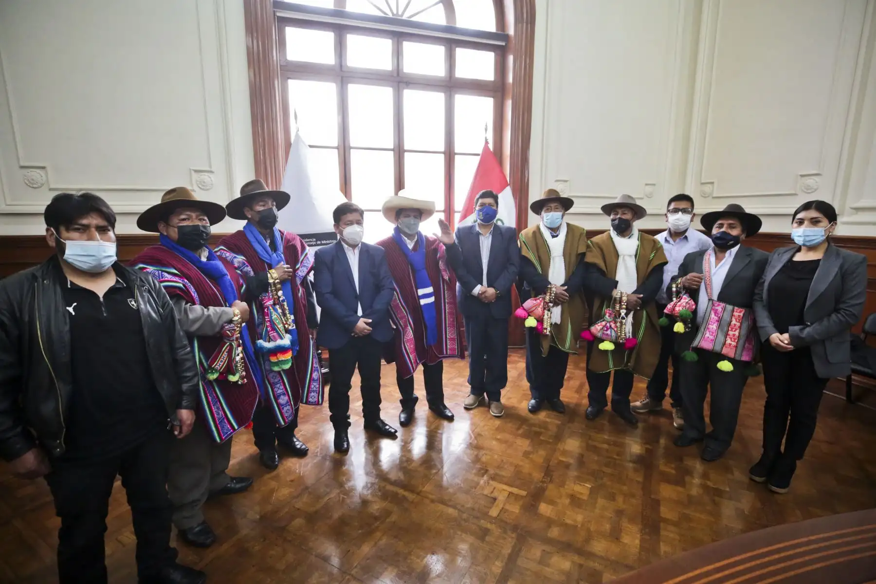 El Presidente Pedro Castillo, el Premier Guido Bellido y el ministro de Vivienda reciben una delegación de la provincia de Huancané, Puno en Palacio de Gobierno