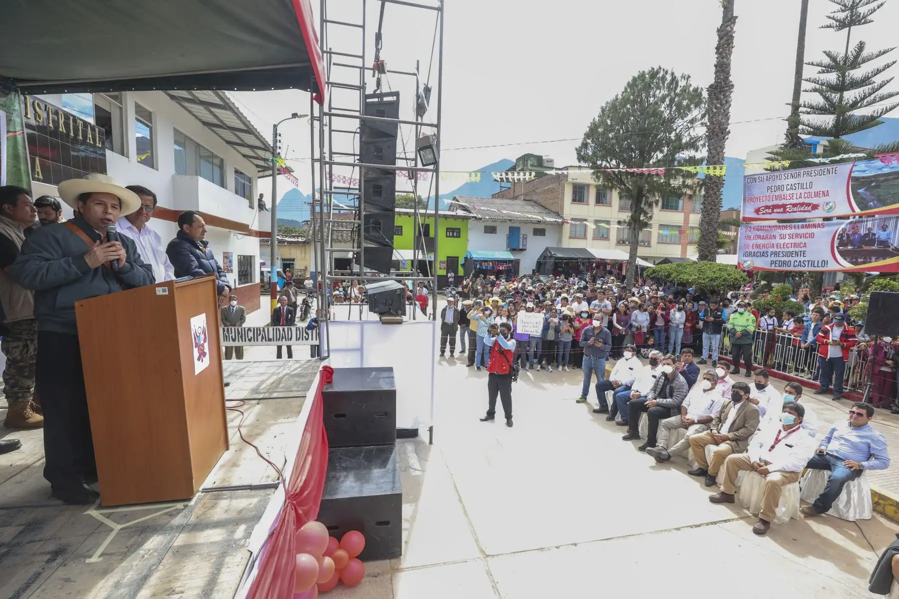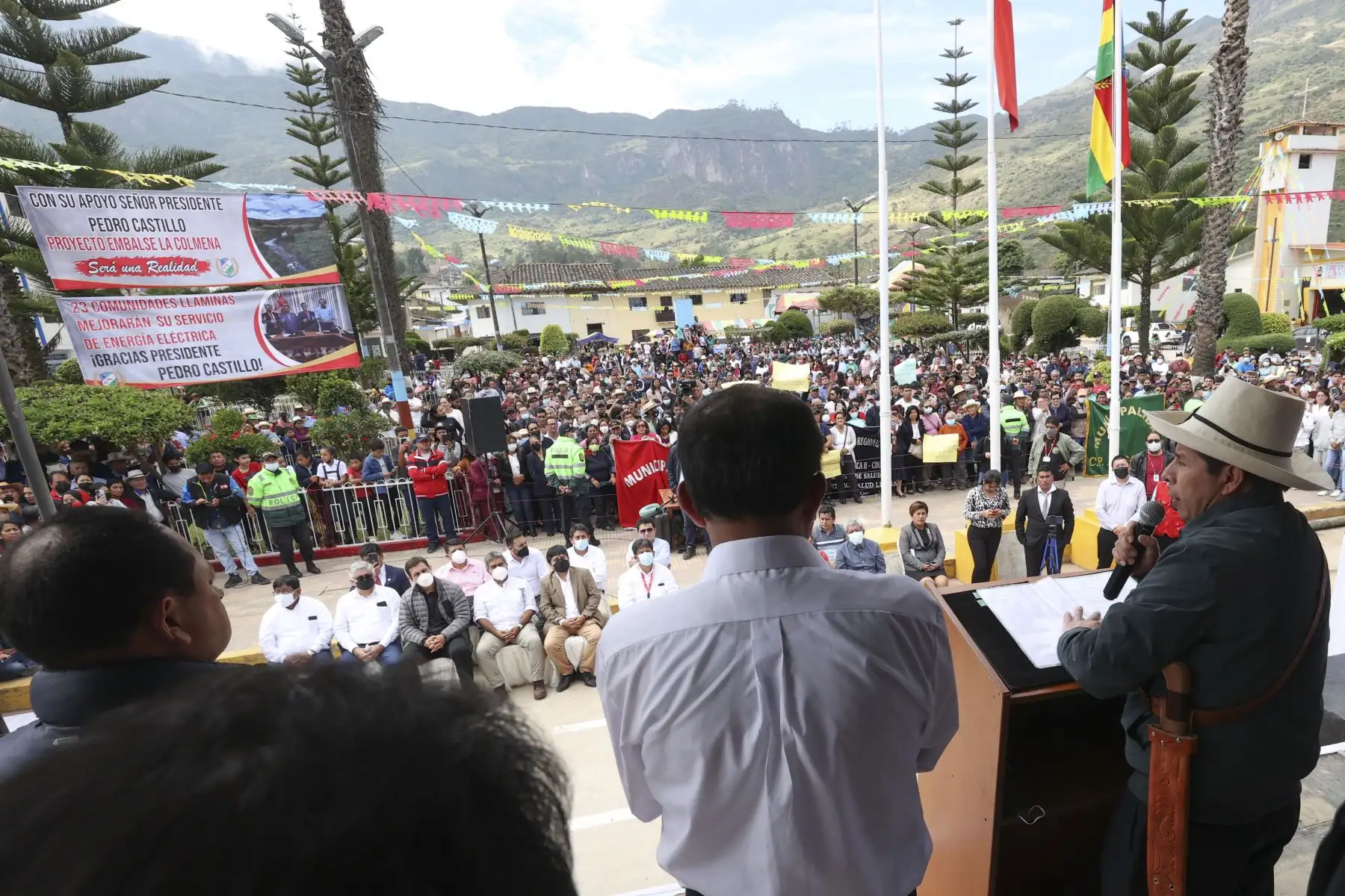 El presidente Pedro Castillo, sostiene un encuentro con la población del distrito de Llama, provincia de Chota, región Cajamarca