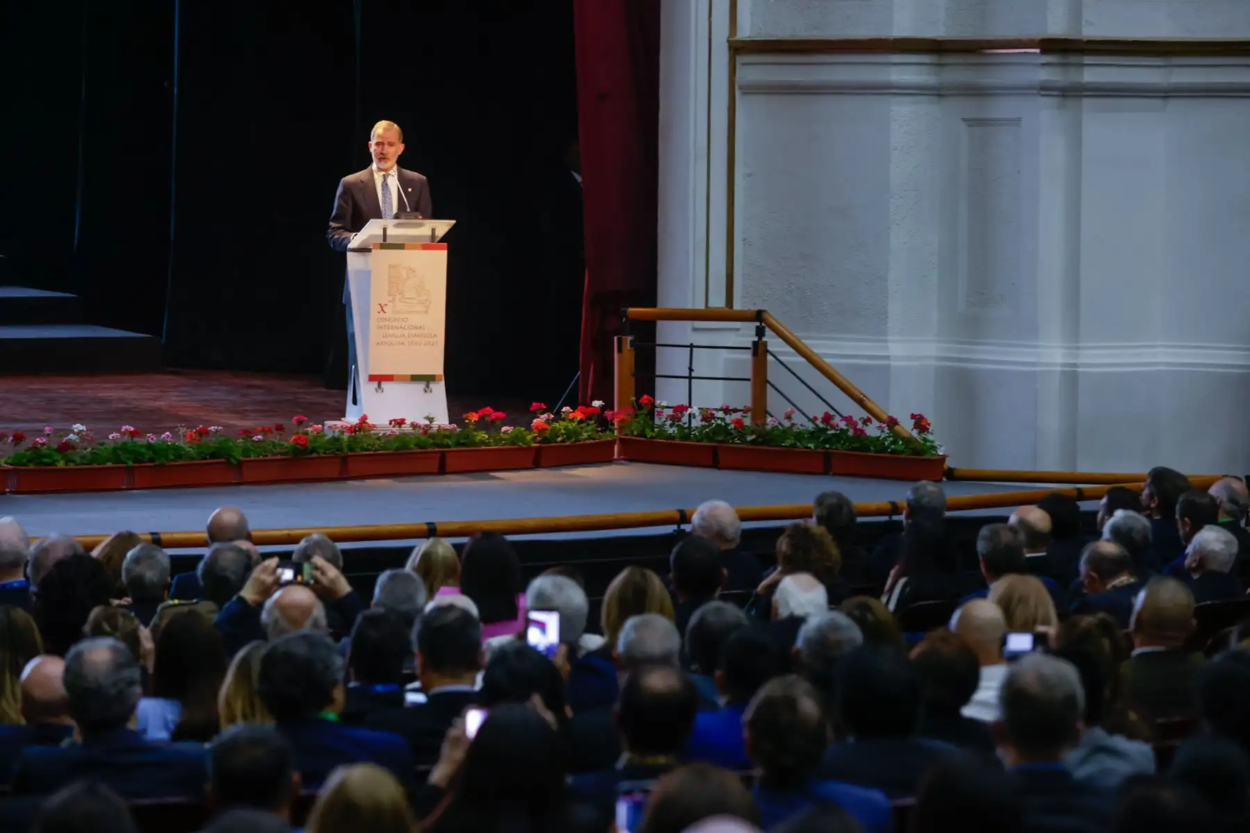 15/10/2025 Con la presencia del Con la presencia del rey Felipe VI de España se inauguró el X Congreso Internacional de la Lengua Española (CILE) en Arequipa, un encuentro académico y cultural que reúne a destacadas personalidades del ámbito literario y lingüístico. Foto: ANDINA/Luis Iparraguirre