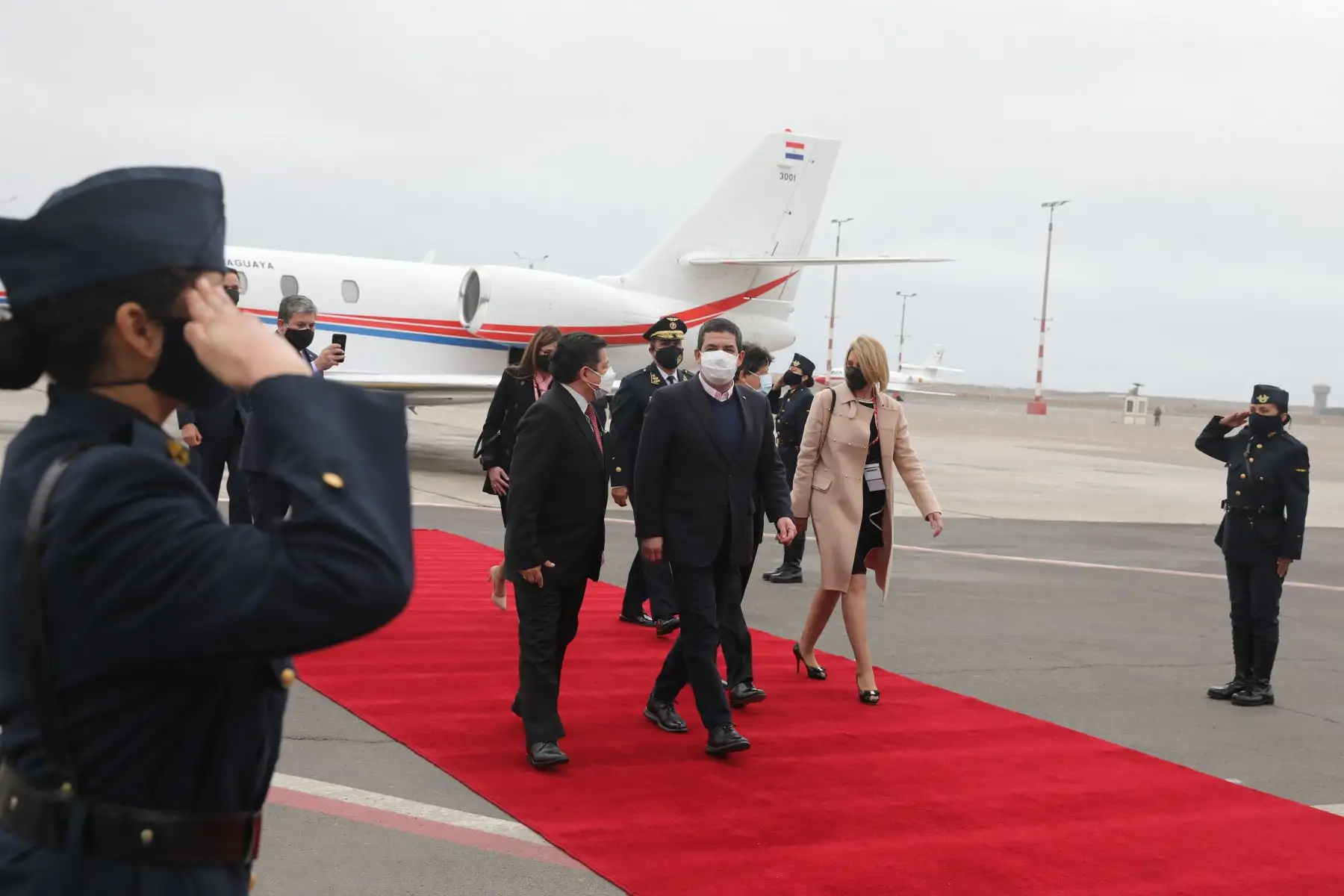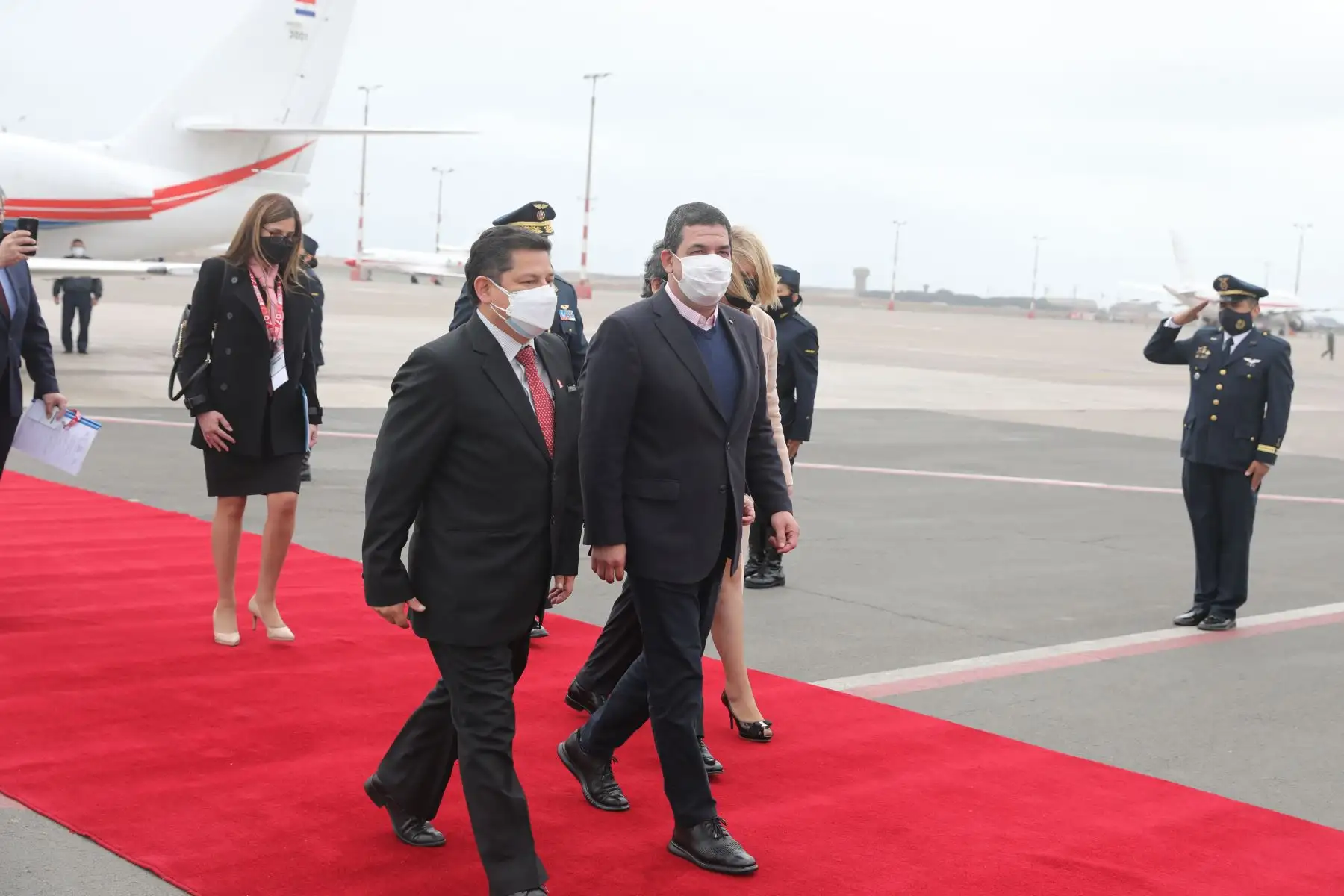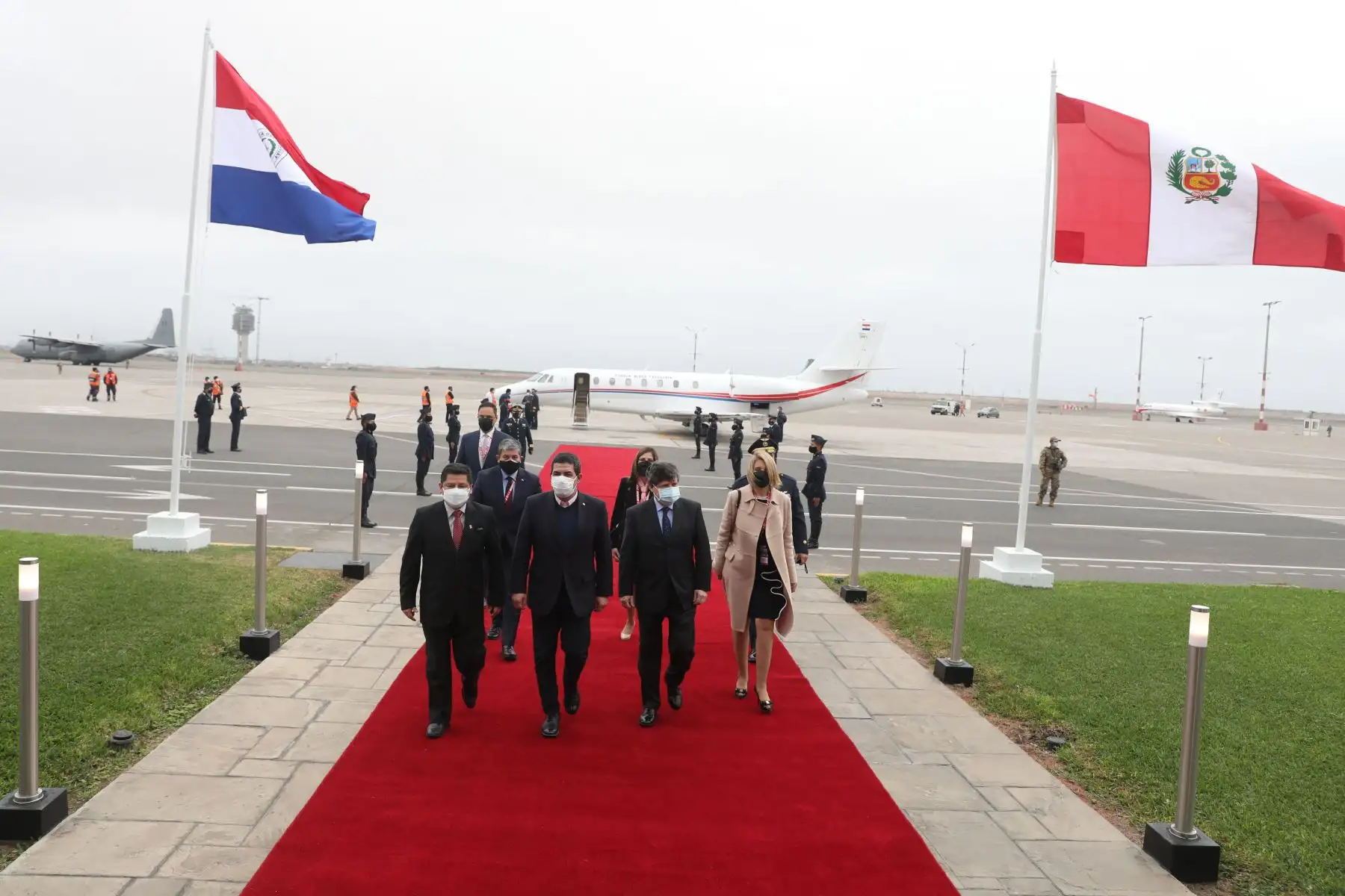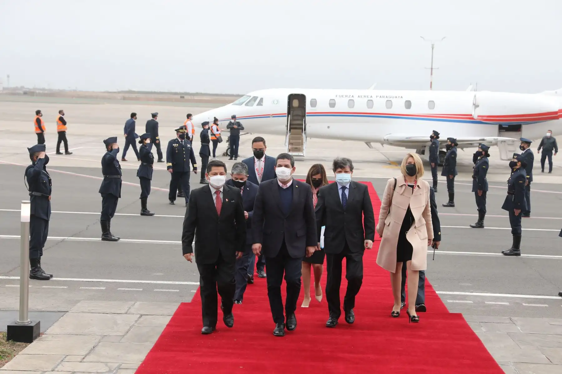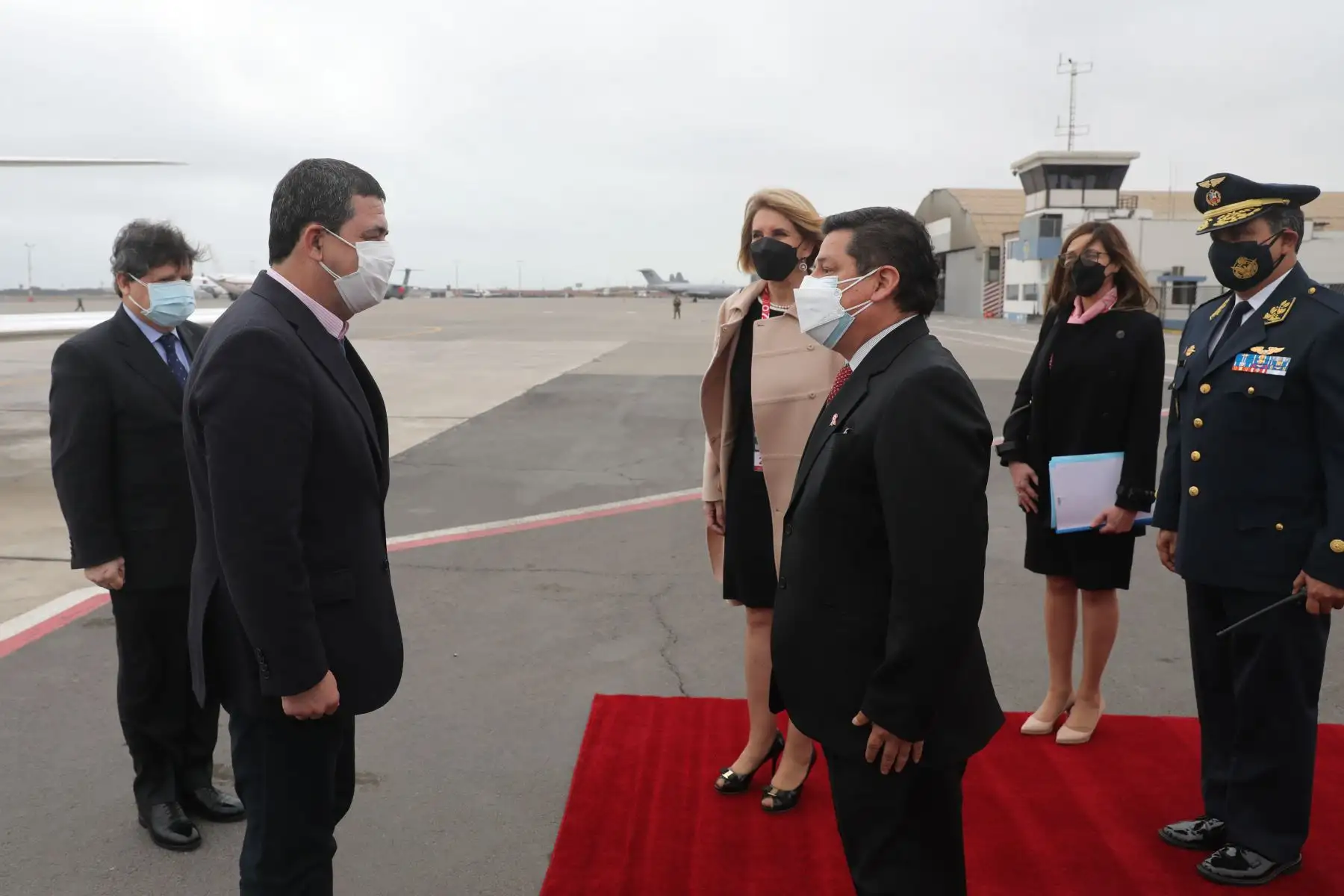 27/07/2021 El vicepresidente de Paraguay, Hugo Velásquez, arriba al Grupo Aéreo Nº 8 para estar presente en la toma de posesión del presidente electo, Pedro Castillo. Delegación fue recibida por el ministro de Justicia, Eduardo Ernesto Vega.