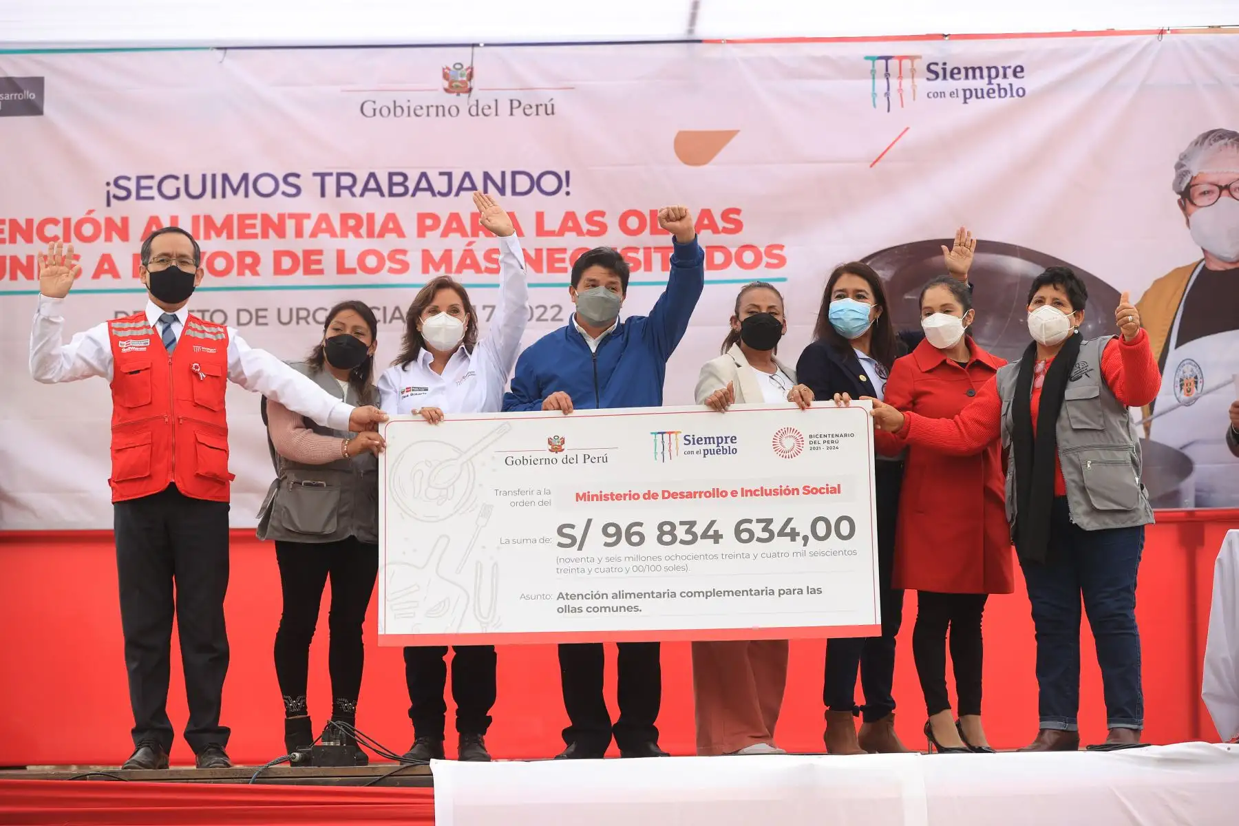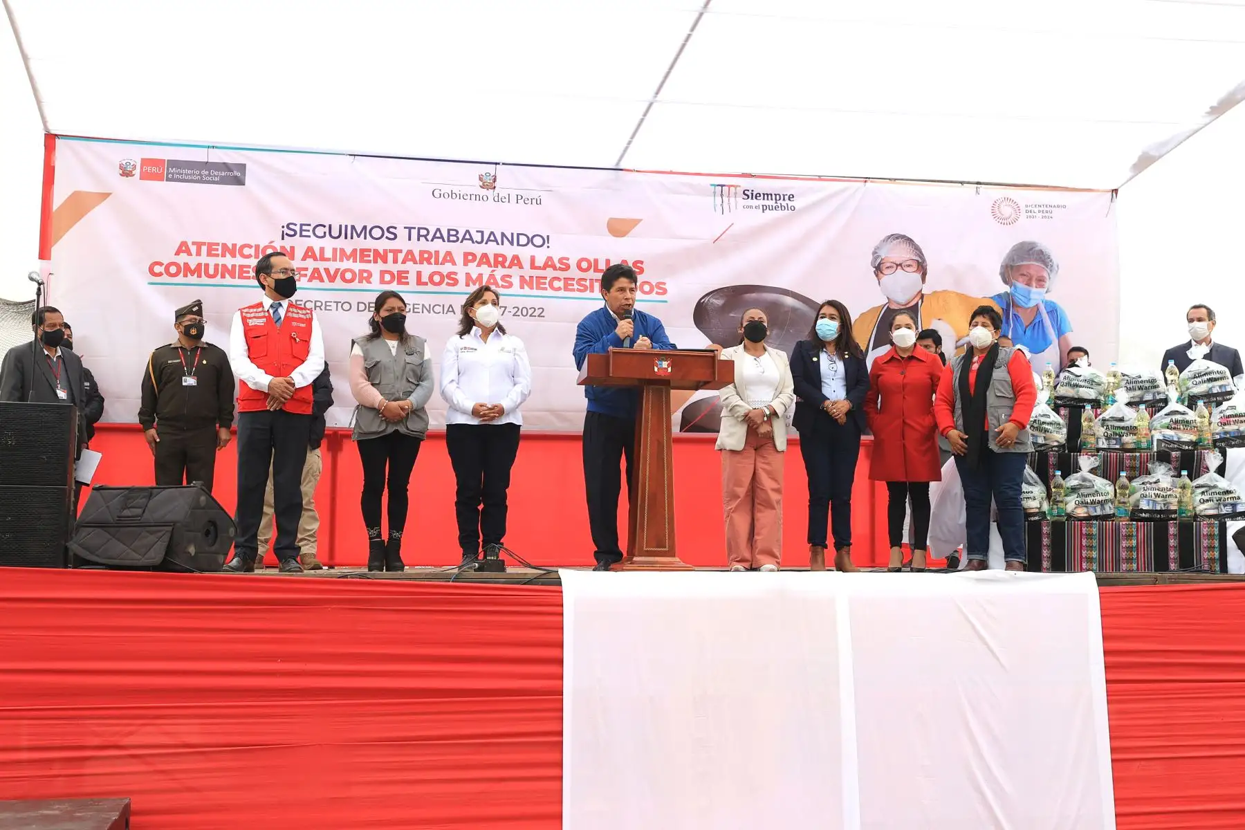 04/07/2022 Presidente Pedro Castillo lideró la ceremonia de entrega de alimentos Qali Warma para la atención de personas vulnerables en Comas y anunció la transferencia de más de S/ 96c millones para las ollas comunes..