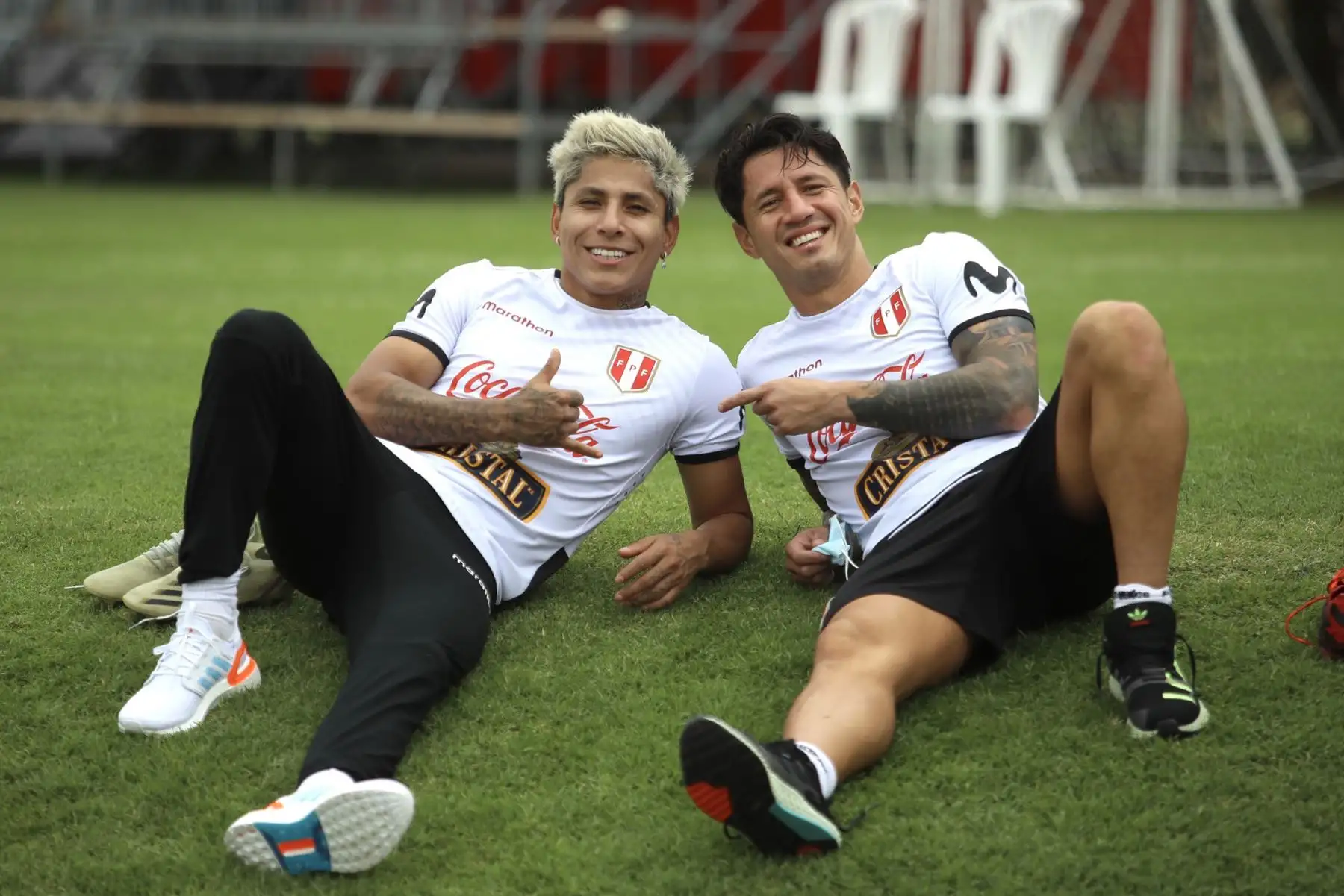 10/11/2020 Gianluca Lapadula se muestra a lado de Raúl Ruidíaz durante el entrenamiento de la selección Peruana. Foto: FPF