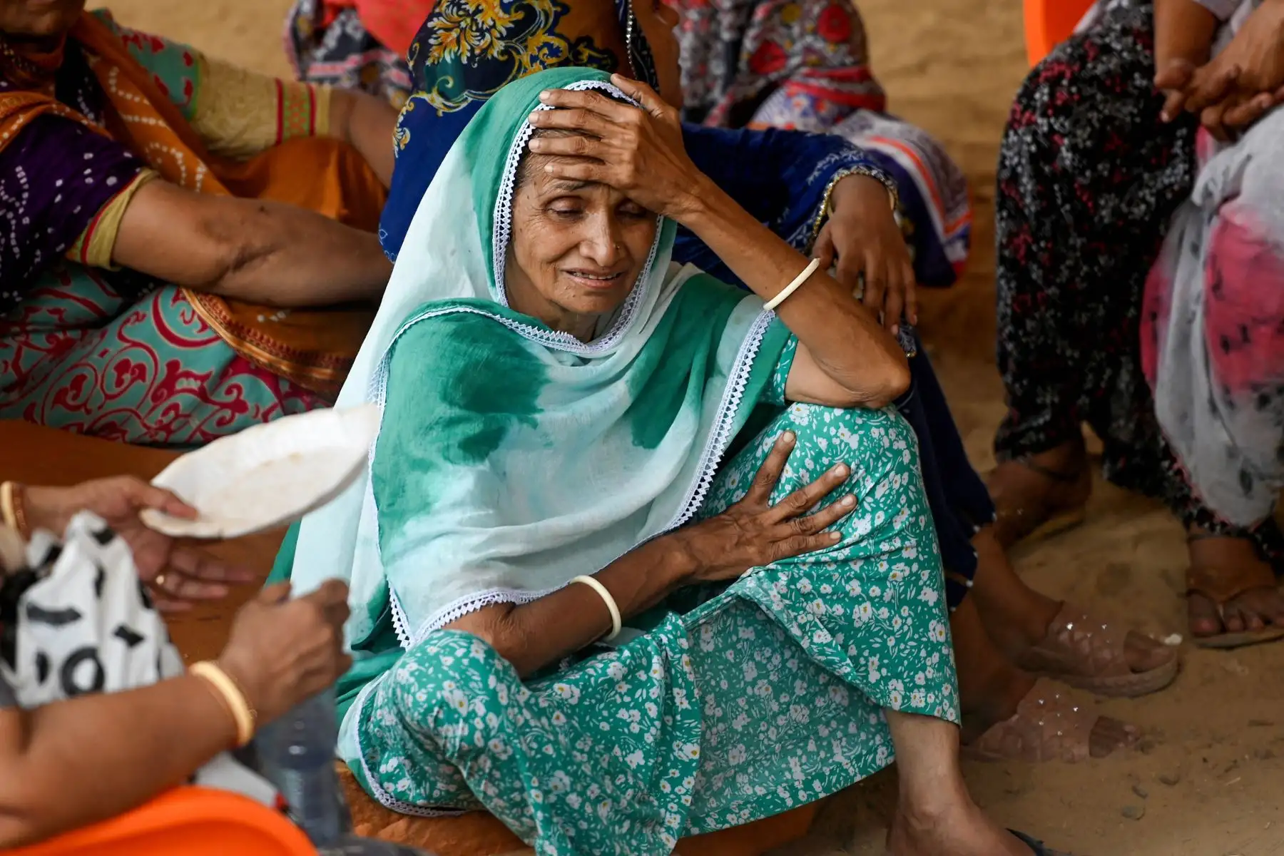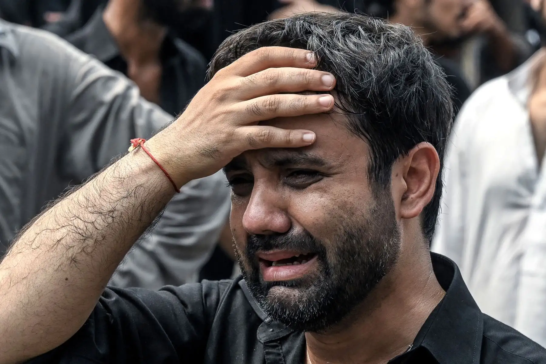 06/07/2025 Una víctima espera con sus familiares la recuperación de sus familiares entre los escombros del derrumbe de un edificio en Karachi. Los equipos de rescate recuperaron más cuerpos de entre los escombros del derrumbe de un edificio de cinco plantas en Pakistán durante la noche, mientras las operaciones de recuperación continuaban por segundo día. Foto. ANDINA/ AFP