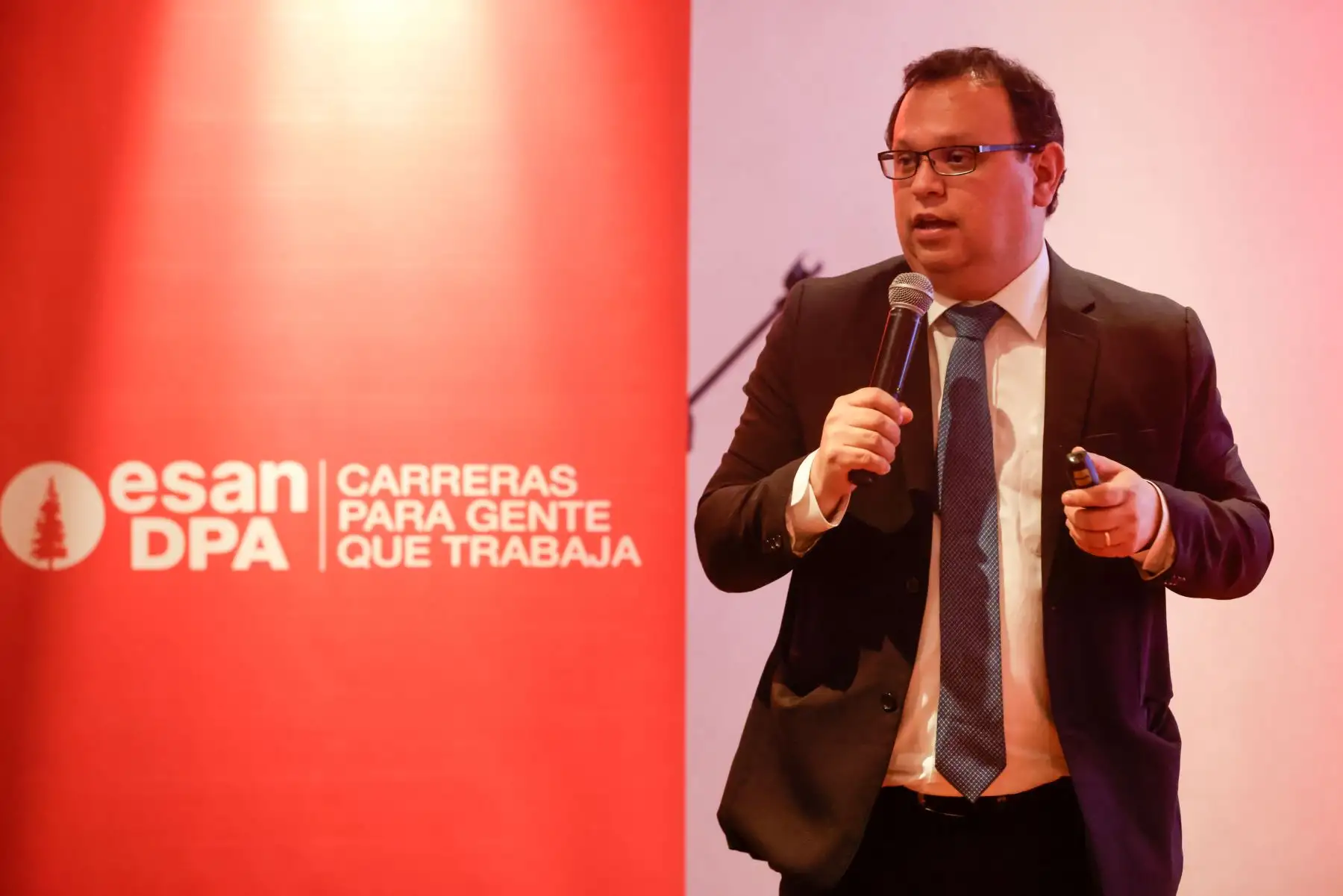 28/11/2024 Marco Vinelli, director de la Escuela de Gobierno de ESAN, abordó la necesidad de "Cerrar brechas en la calidad del servicio público". Por su parte, Eduardo Mantilla, director del DPA, presentó una innovadora propuesta educativa diseñada específicamente para servidores públicos. Foto: ANDINA/Luis Iparraguirre