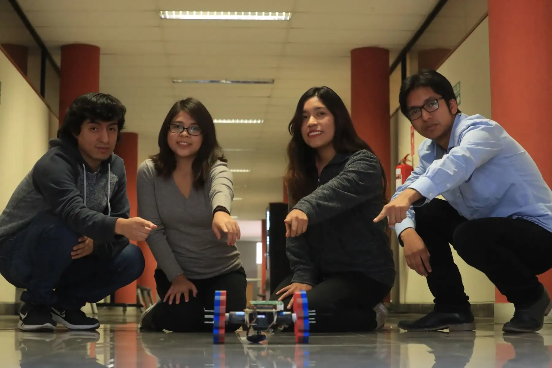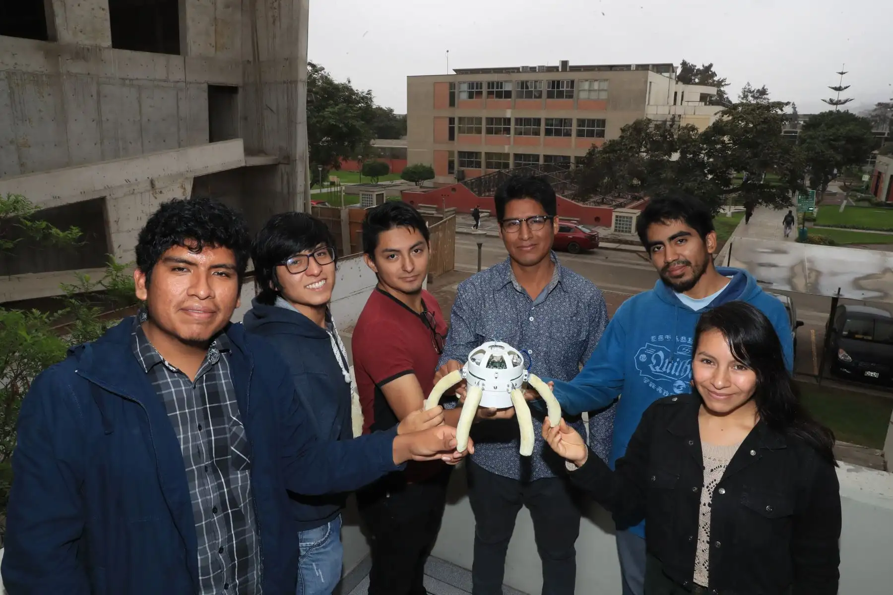 Estudiantes de la UNI que desarrollan el proyecto Kuntur que participará en un concurso de innovación tecnológica en Francia. De izquierda a derecha Johan Núñez, Fredy Segama, Waldir Flóres, Daniel Santivañez y Richard Santiago