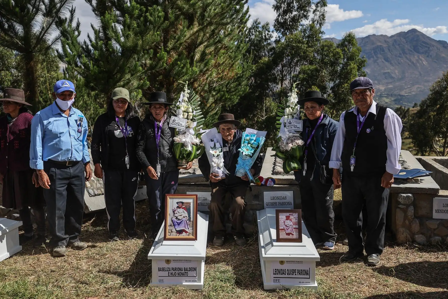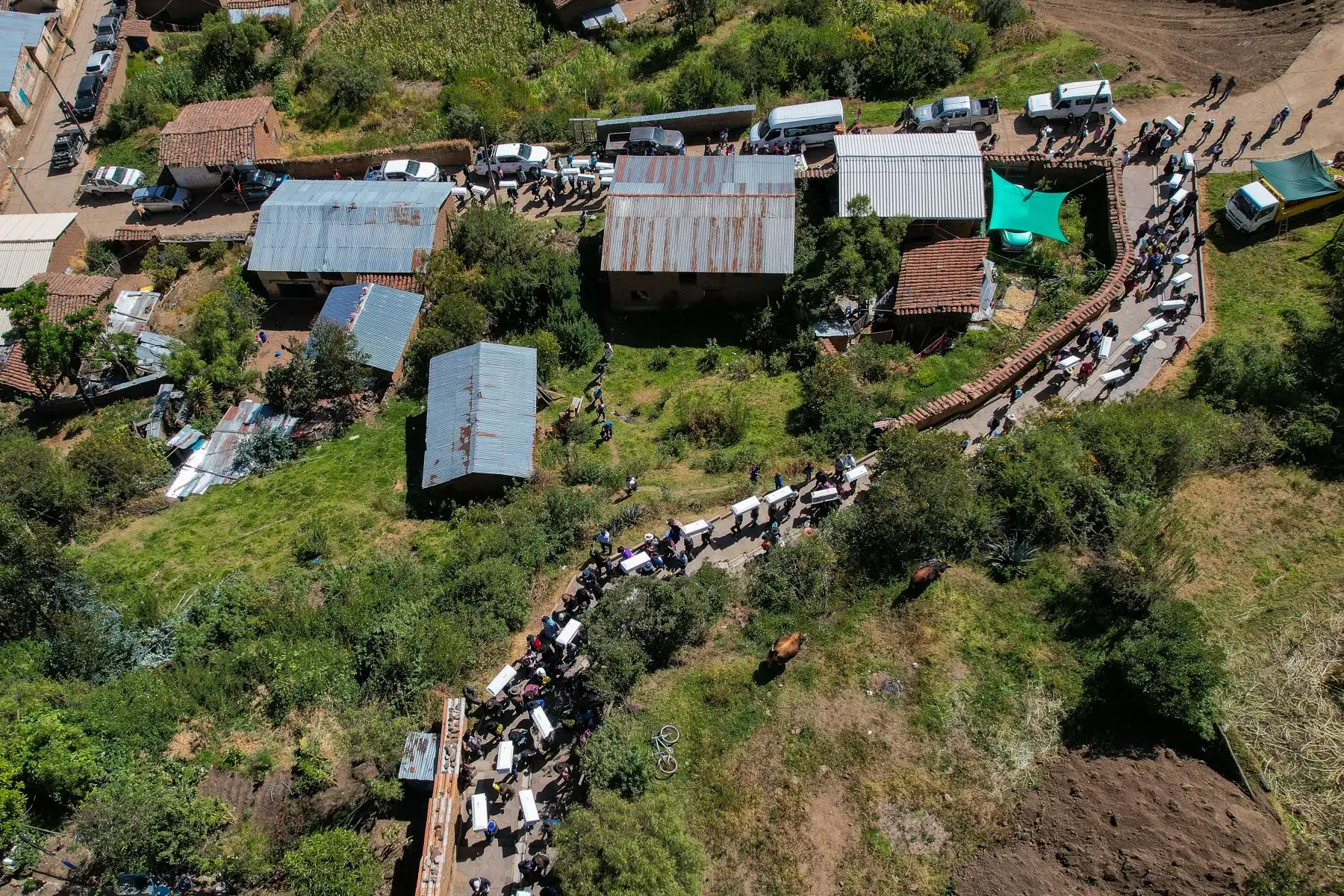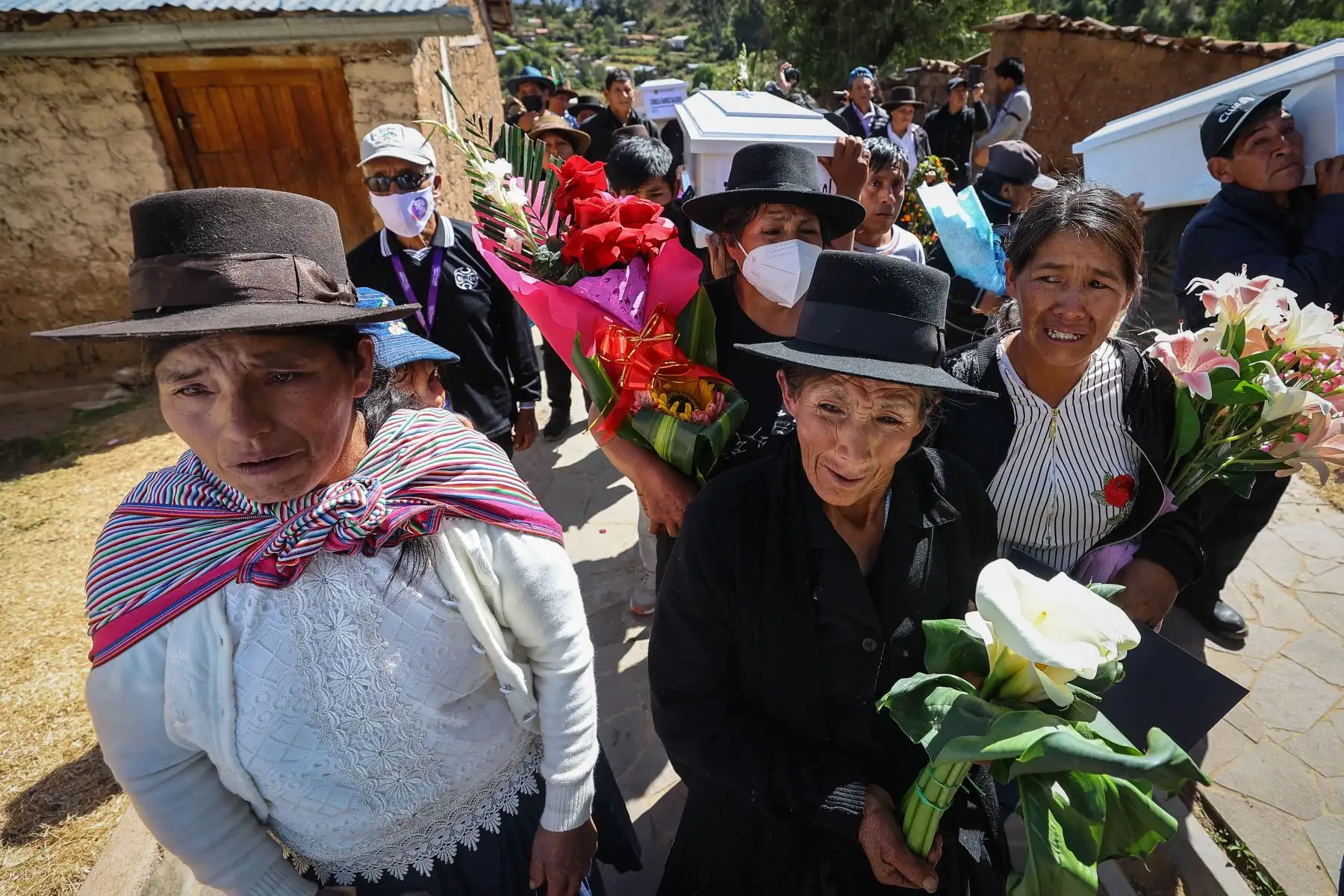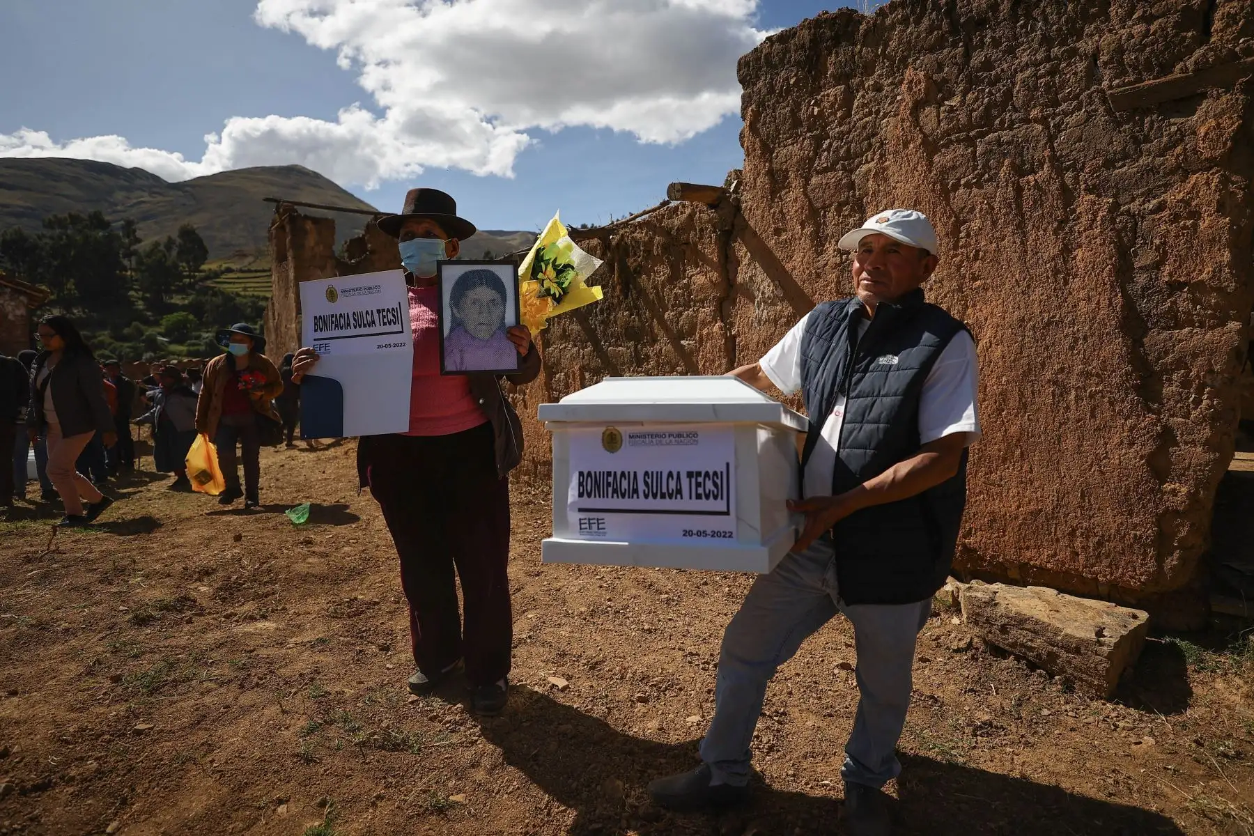 20/05/2022 Familiares de las víctimas y las autoridades inician el cortejo fúnebre hacía el santuario ubicado en la ex base militar de Accomarca, para darles una sepultura digna. Foto: ANDINA/ Andrés Valle