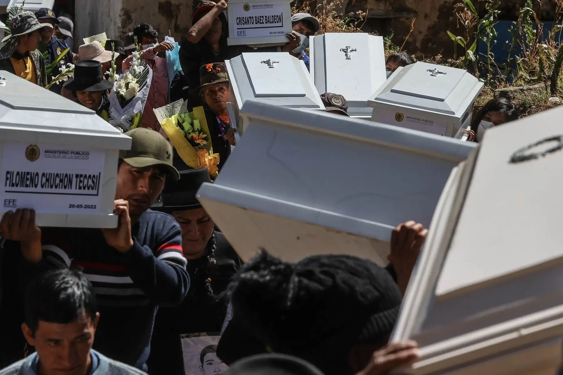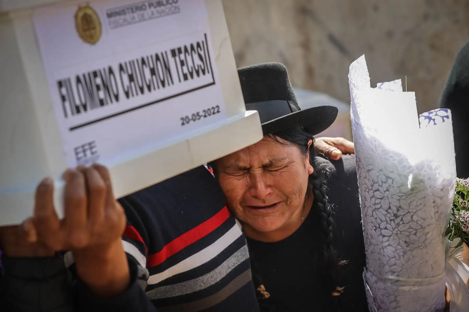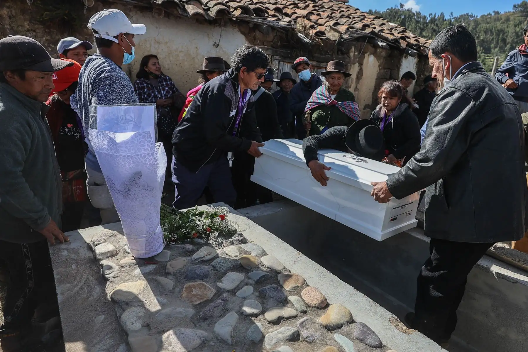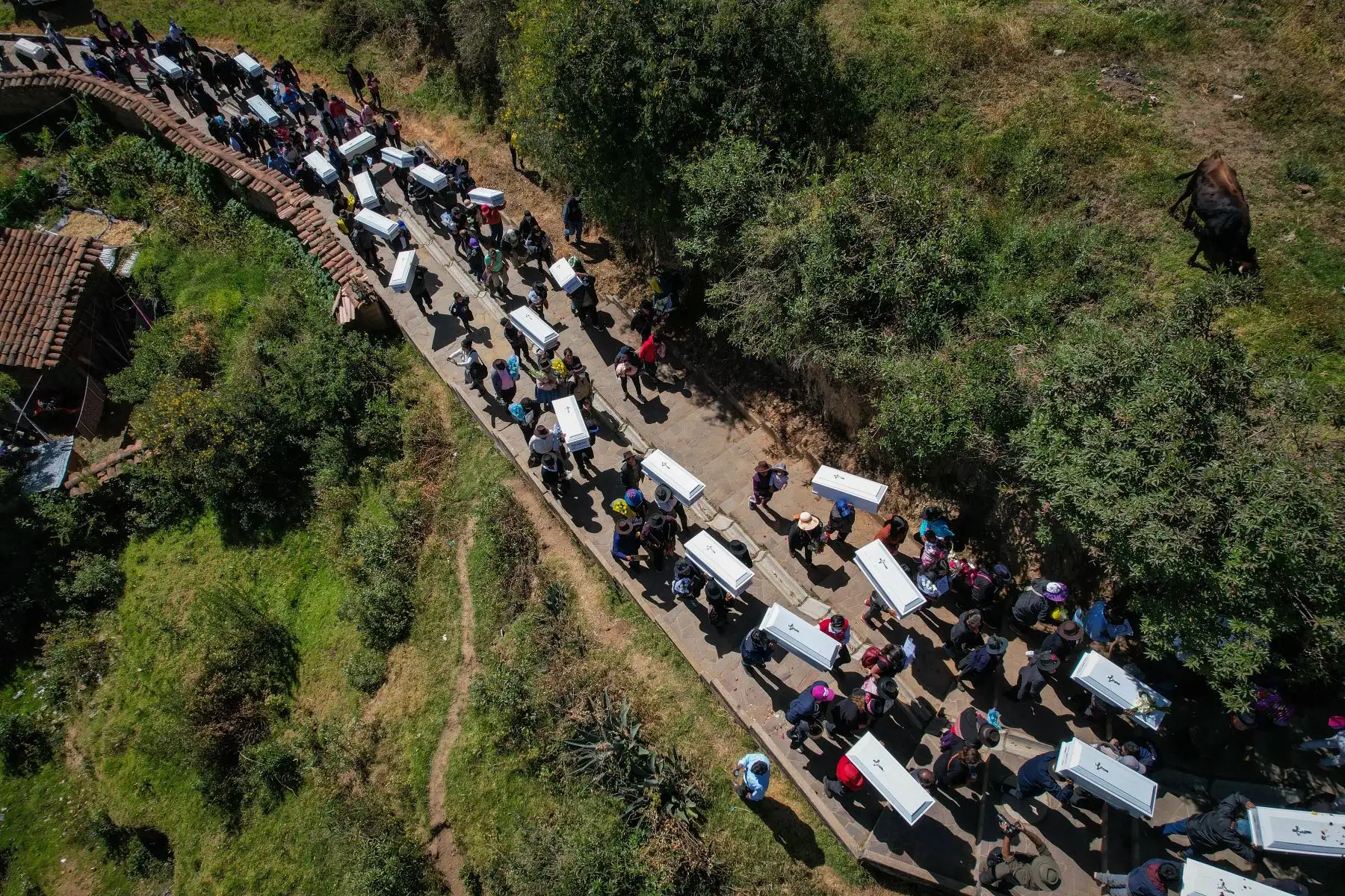 20/05/2022 Familiares de las víctimas y las autoridades inician el cortejo fúnebre hacía el santuario ubicado en la ex base militar de Accomarca, para darles una sepultura digna. Foto: ANDINA/ Andrés Valle