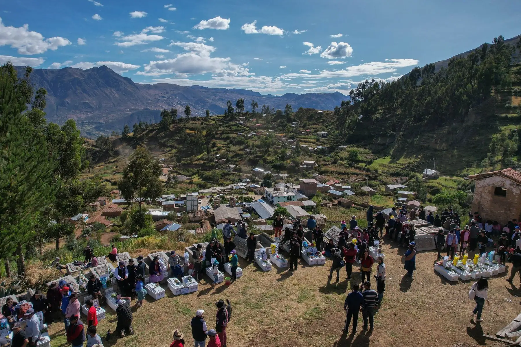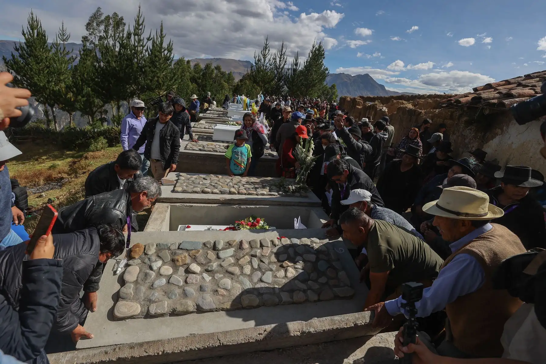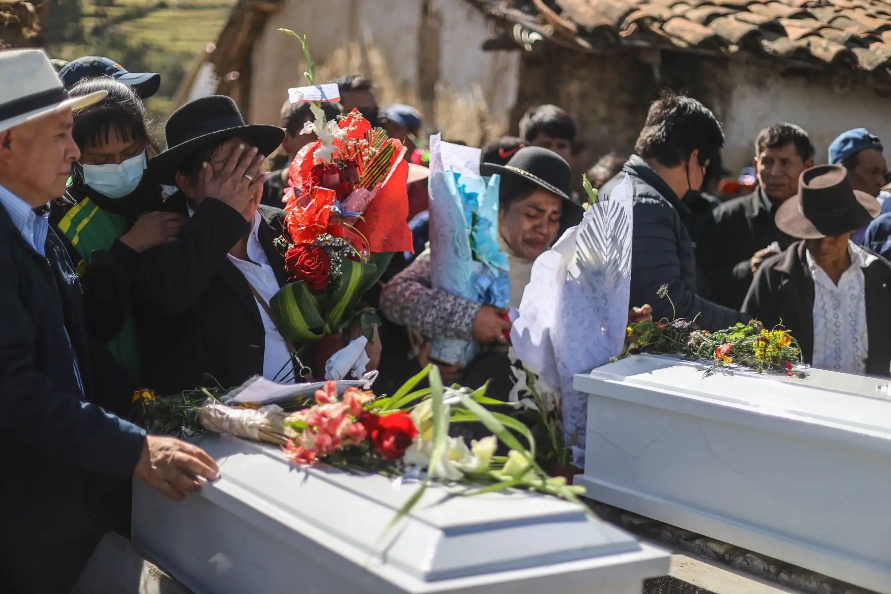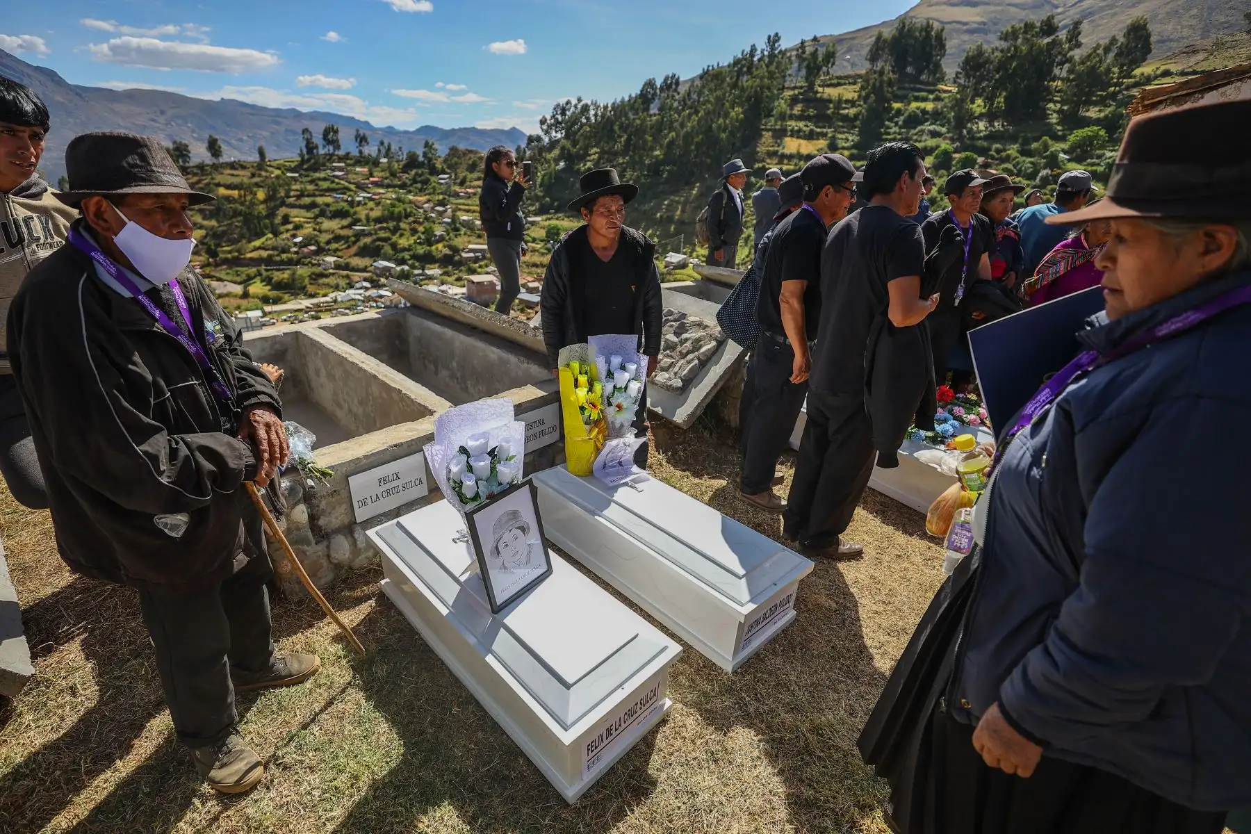 20/05/2022 Familiares de las víctimas y las autoridades inician el cortejo fúnebre hacía el santuario ubicado en la ex base militar de Accomarca, para darles una sepultura digna. Foto: ANDINA/ Andrés Valle