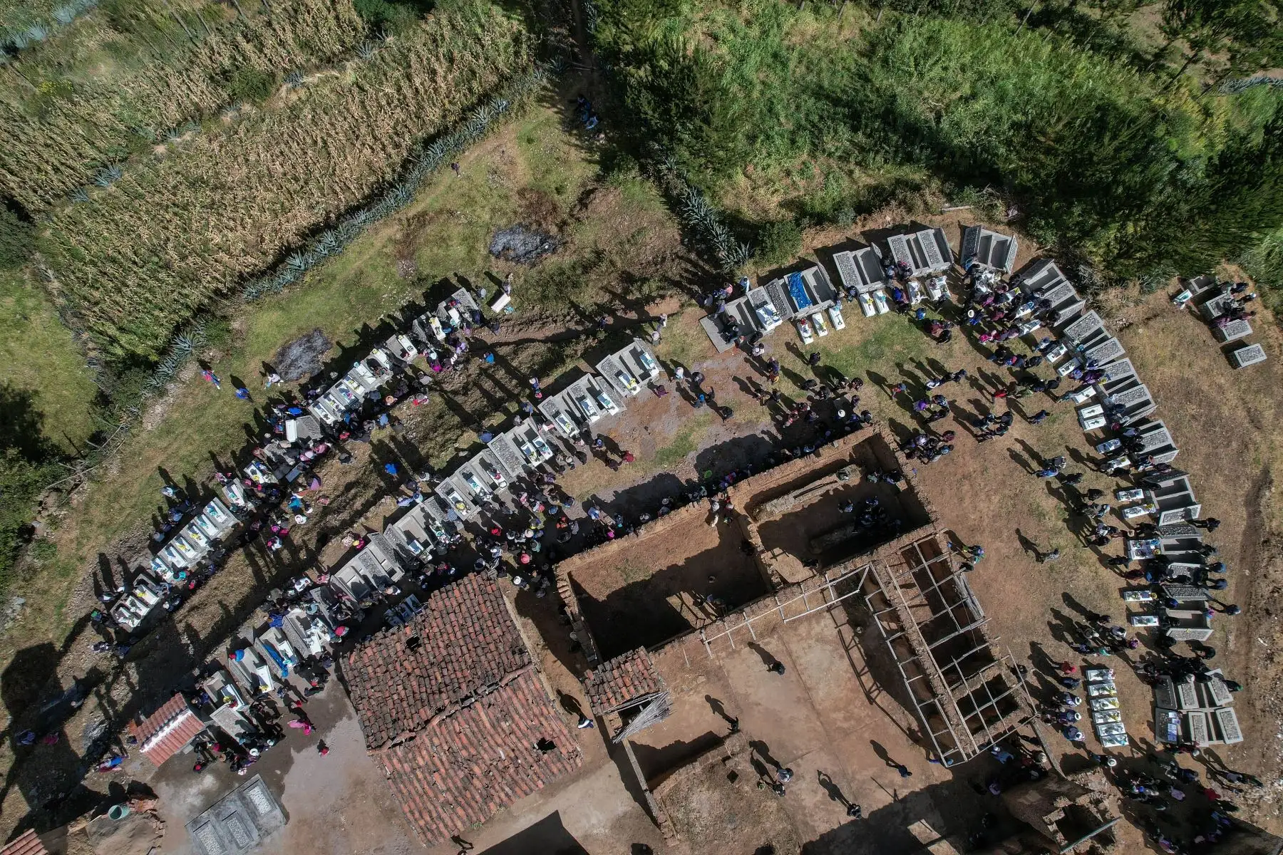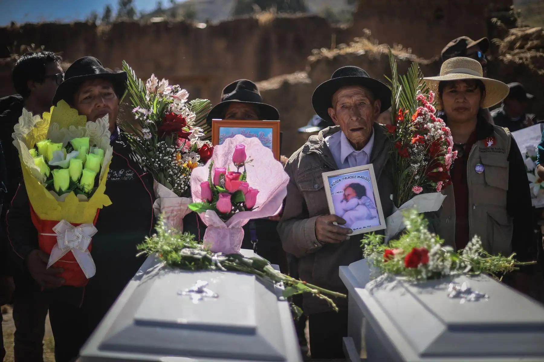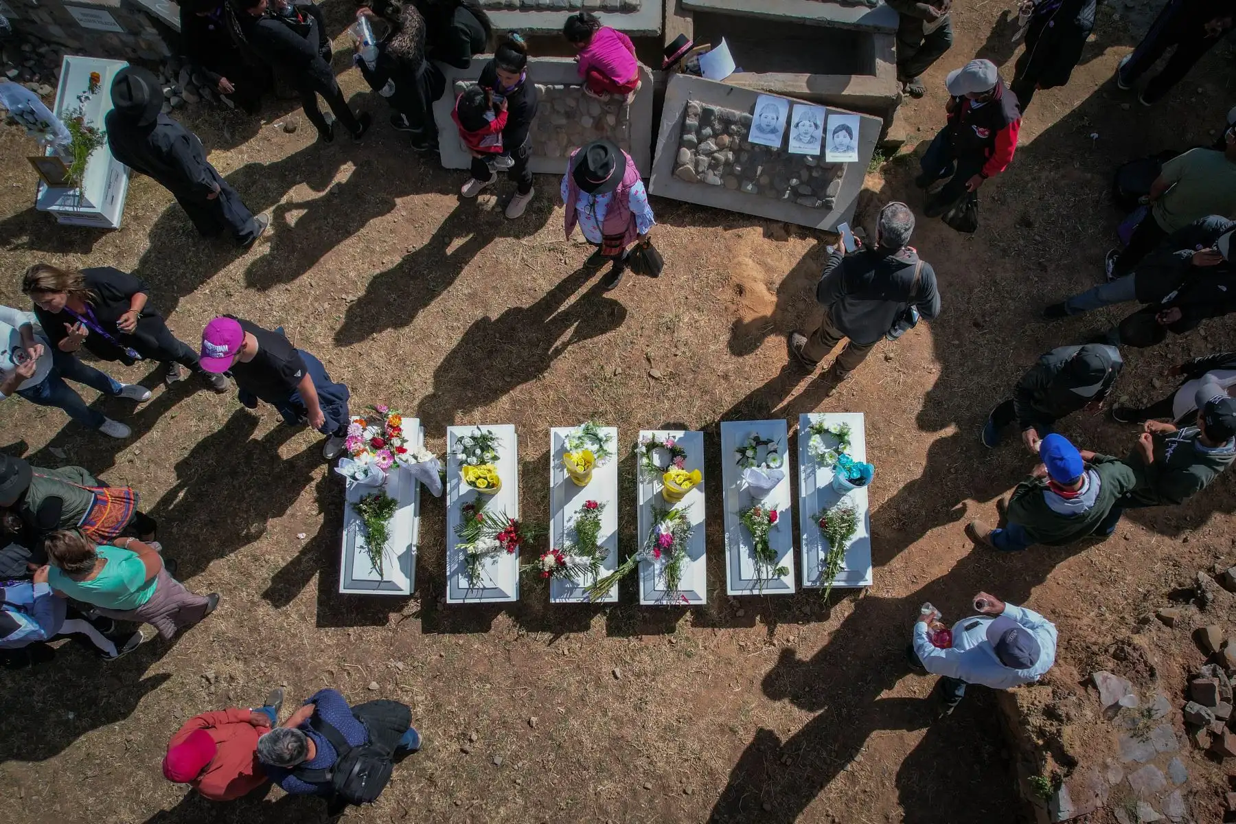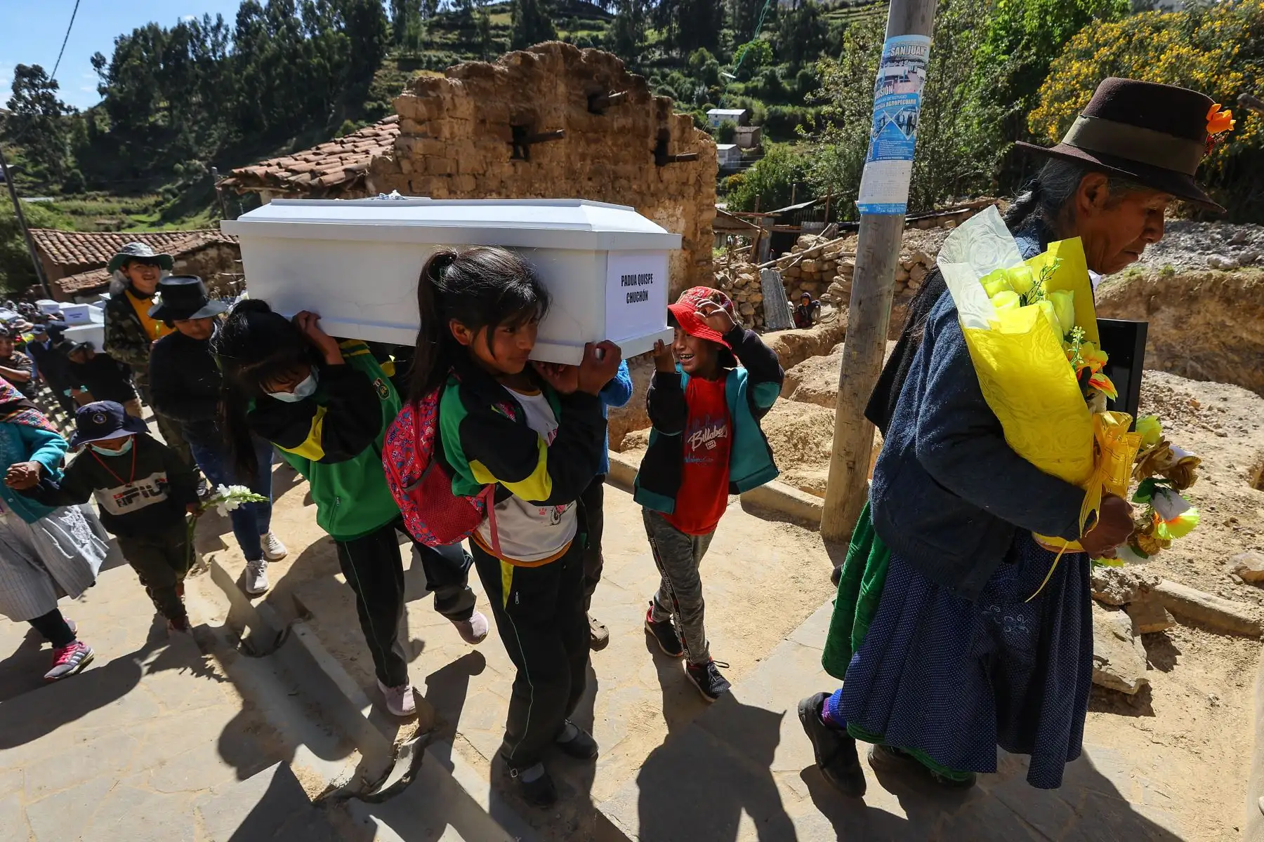 20/05/2022 Familiares de las víctimas y las autoridades inician el cortejo fúnebre hacía el santuario ubicado en la ex base militar de Accomarca, para darles una sepultura digna. Foto: ANDINA/ Andrés Valle