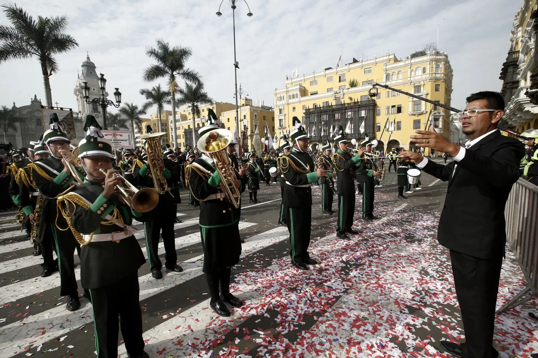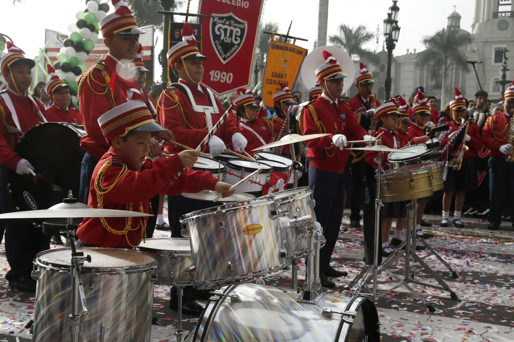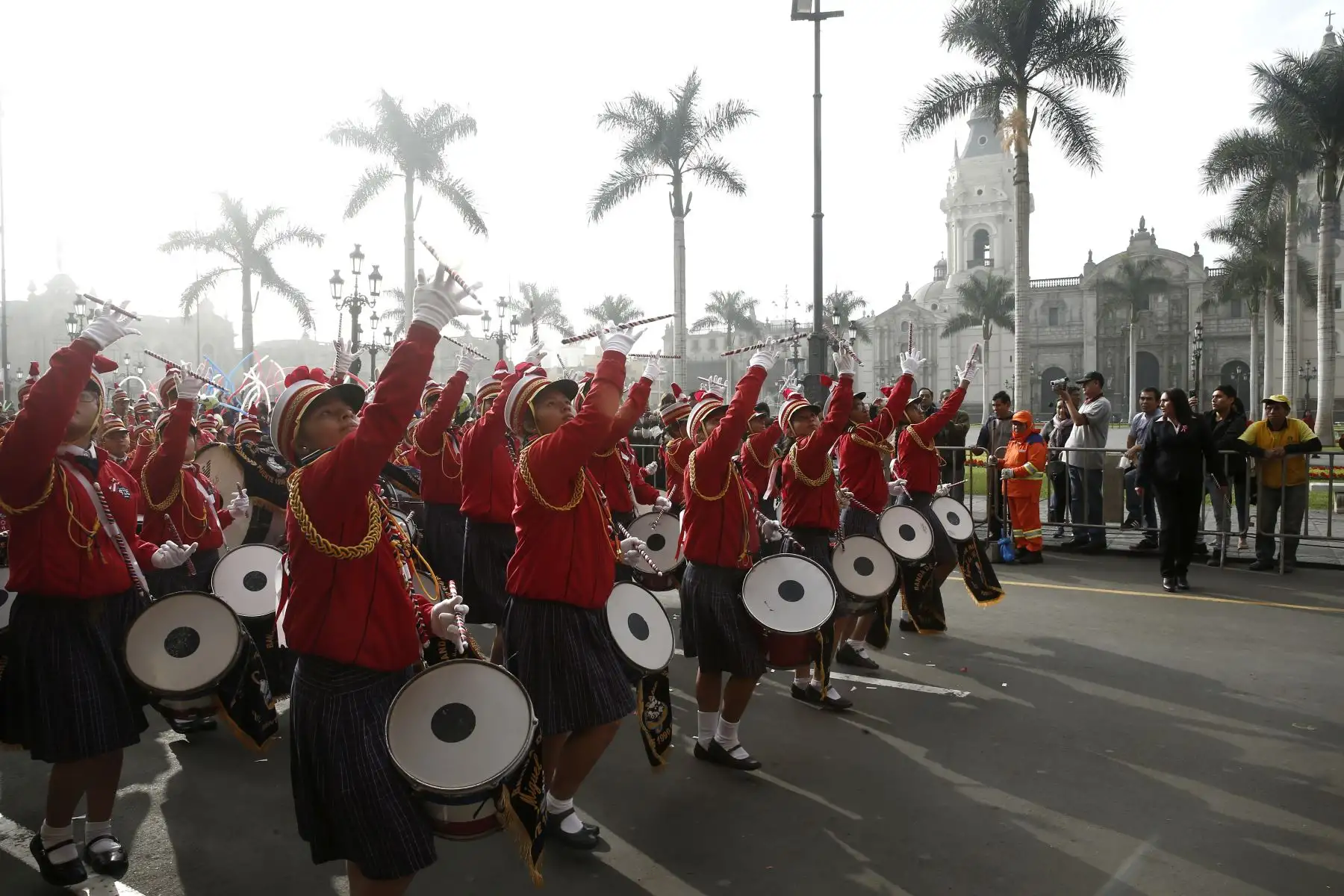 13/07/2018 Más de 17 bandas escolares, conformadas por 60 integrantes cada una, se presentaron en la Plaza de Armas de Lima. Foto: ANDINA/Melina Mejía
