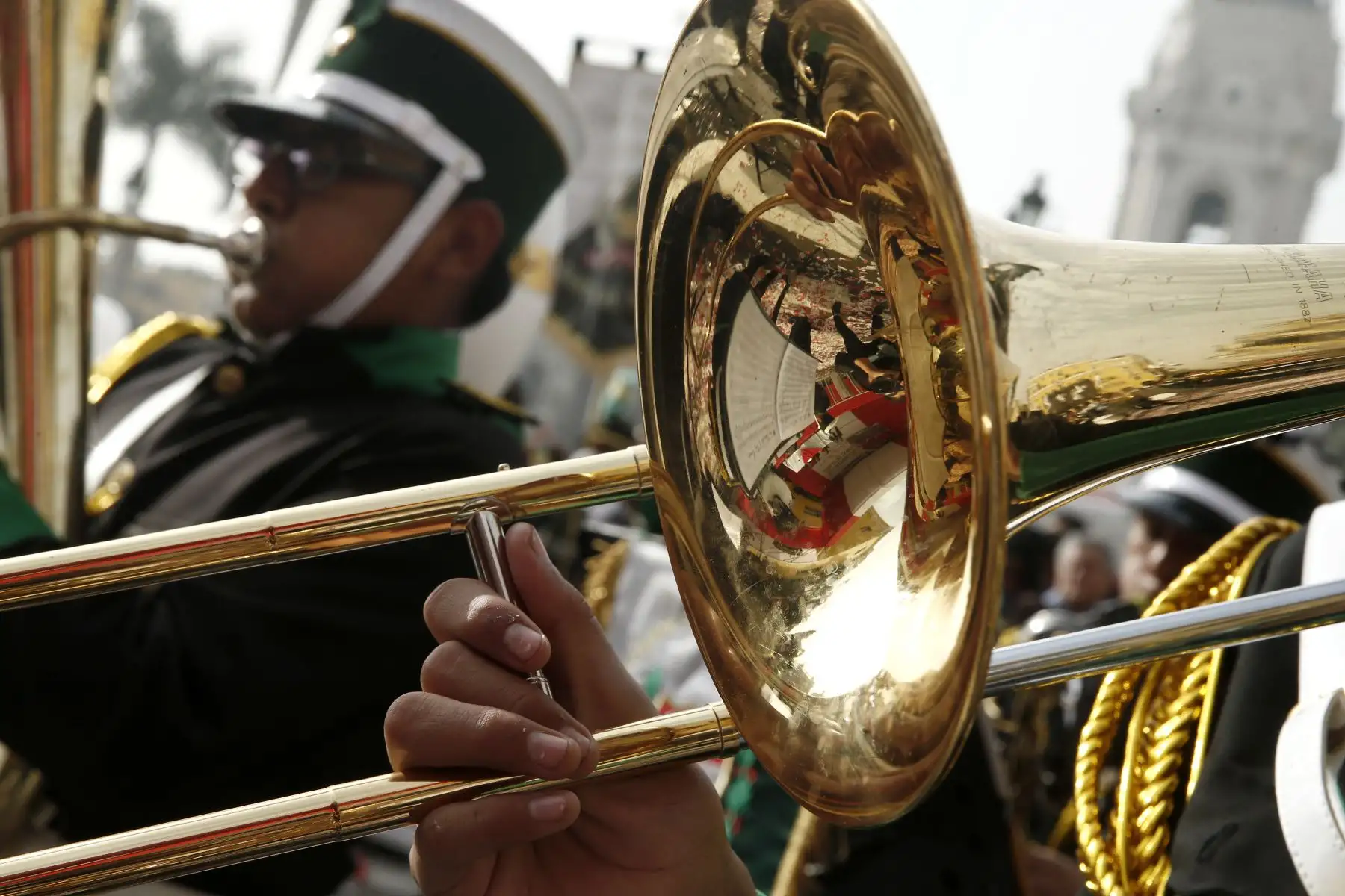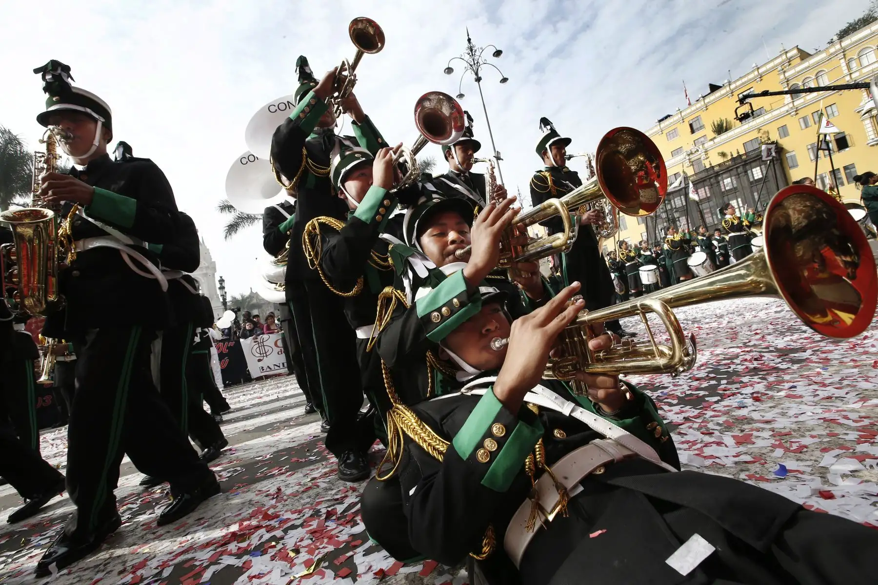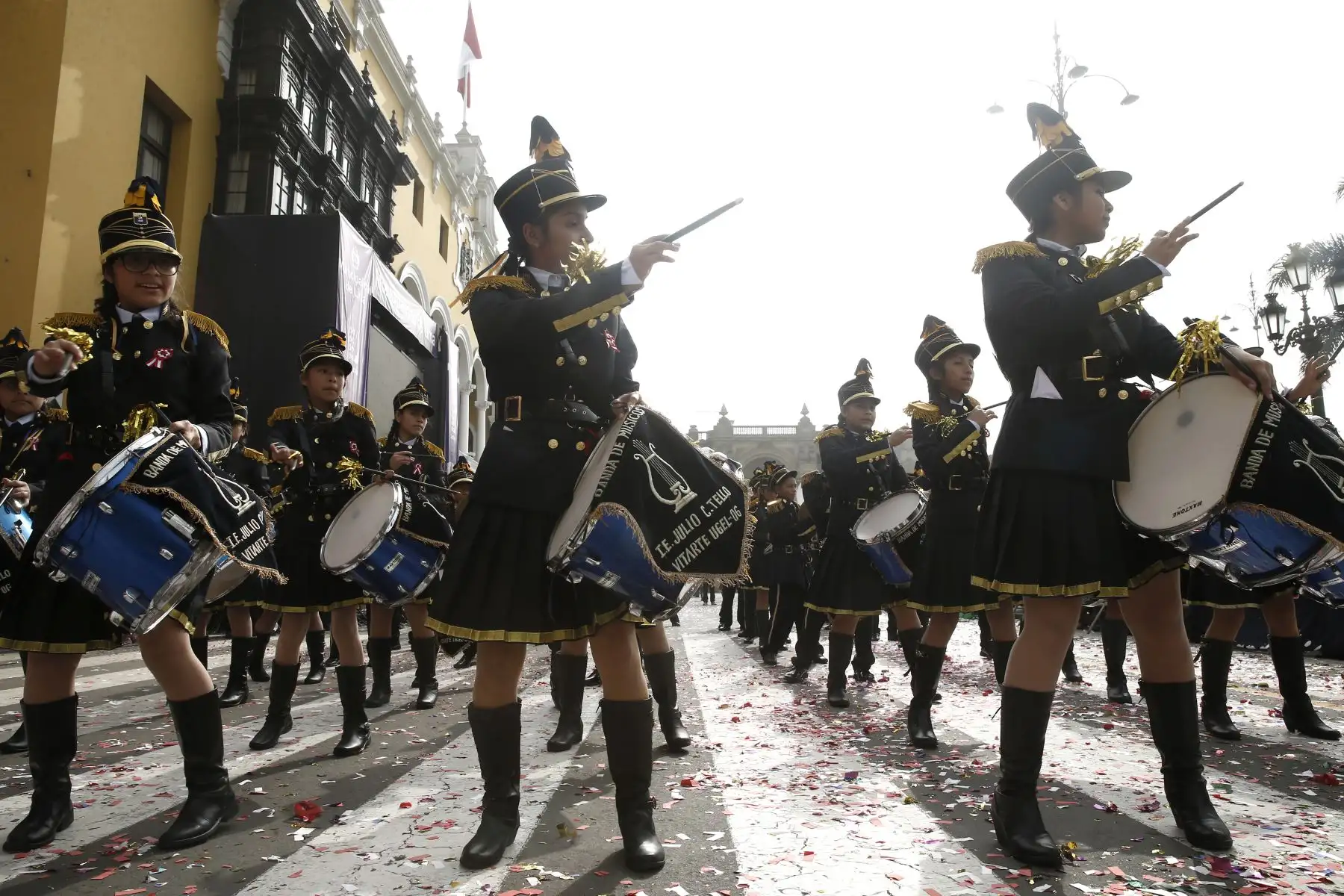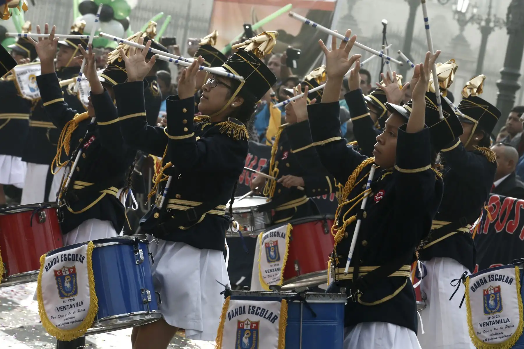 13/07/2018 Más de 17 bandas escolares, conformadas por 60 integrantes cada una, se presentaron en la Plaza de Armas de Lima. Foto: ANDINA/Melina Mejía