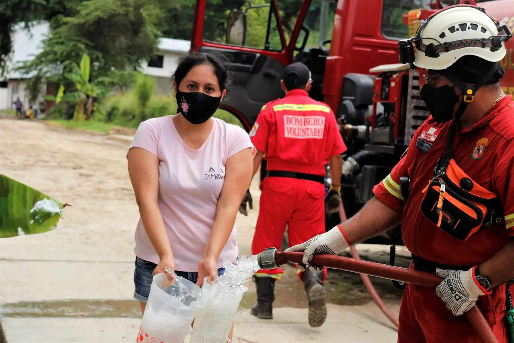 23/02/2021 En coordinación con la compañía de Bomberos N° 054 y el alcalde del distrito de San Ramón llegaron a la Provincia de Chanchamayo llevando agua potable para todas las familias afectadas del sector María Pía, Pampa del Carmen de la Merced, Chanchamayo.