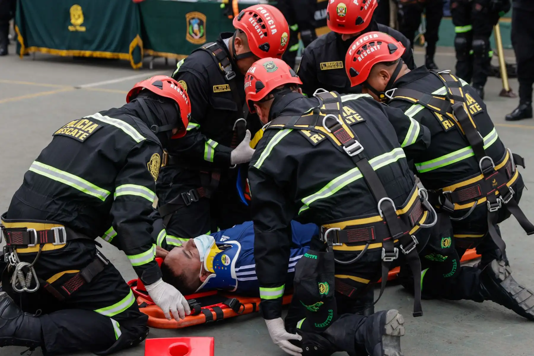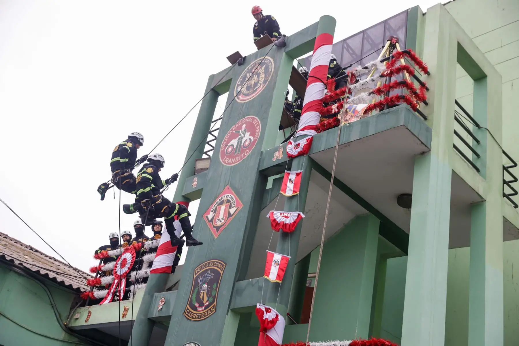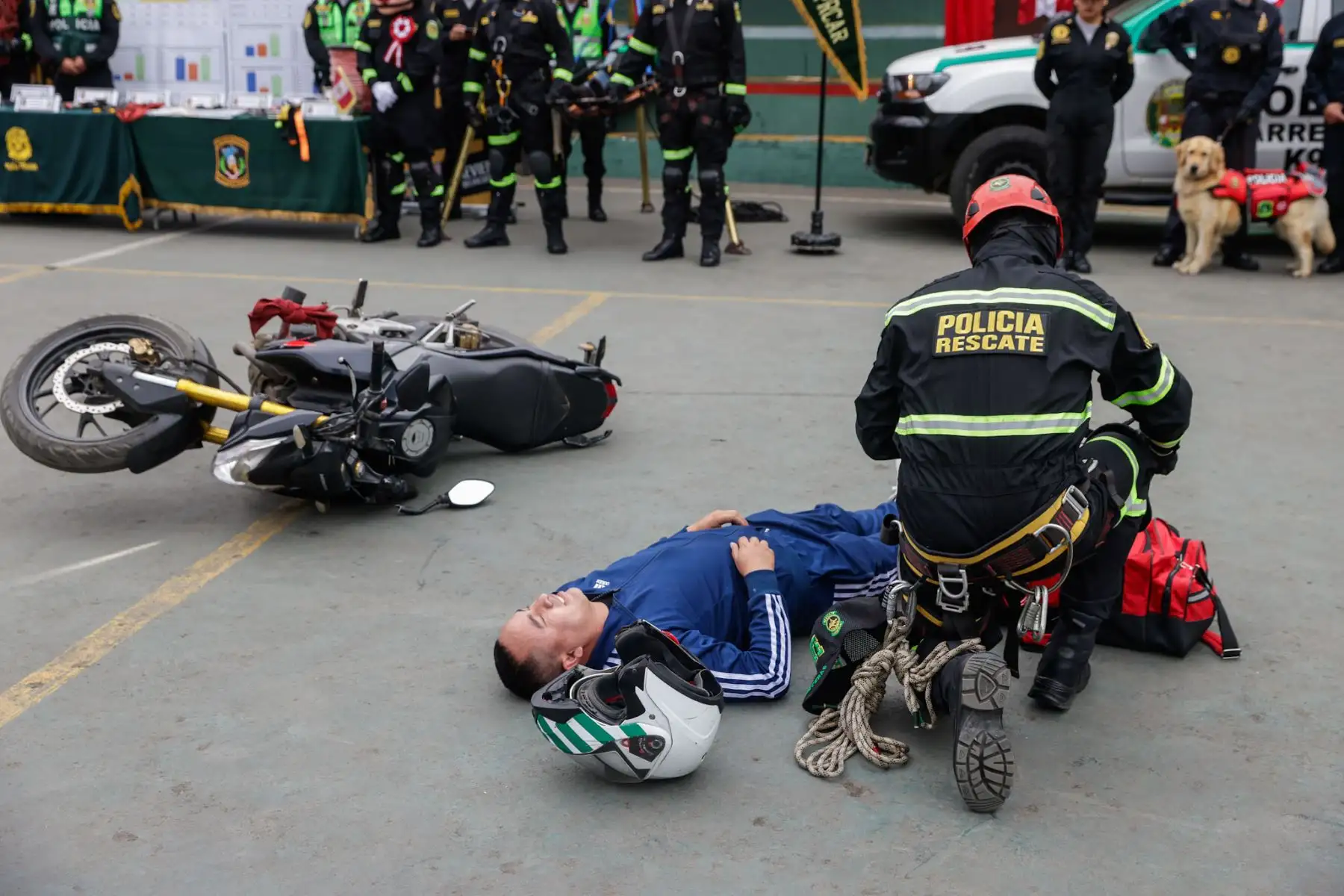 18/07/2025 Como parte de las actividades por Fiestas Patrias, la Dirección de Tránsito escenificó las funciones de sus cinco divisiones. Esta iniciativa busca prevenir accidentes y concientizar a la ciudadanía sobre la importancia del respeto a las normas viales durante las celebraciones, reforzando el compromiso con la seguridad en estas fechas festivas. Foto: ANDINA/Luis Iparraguirre
