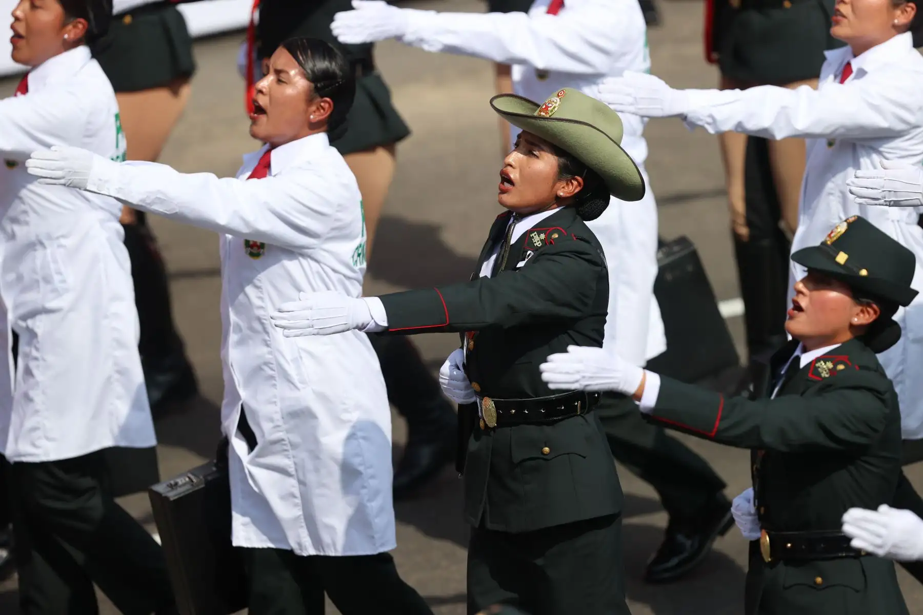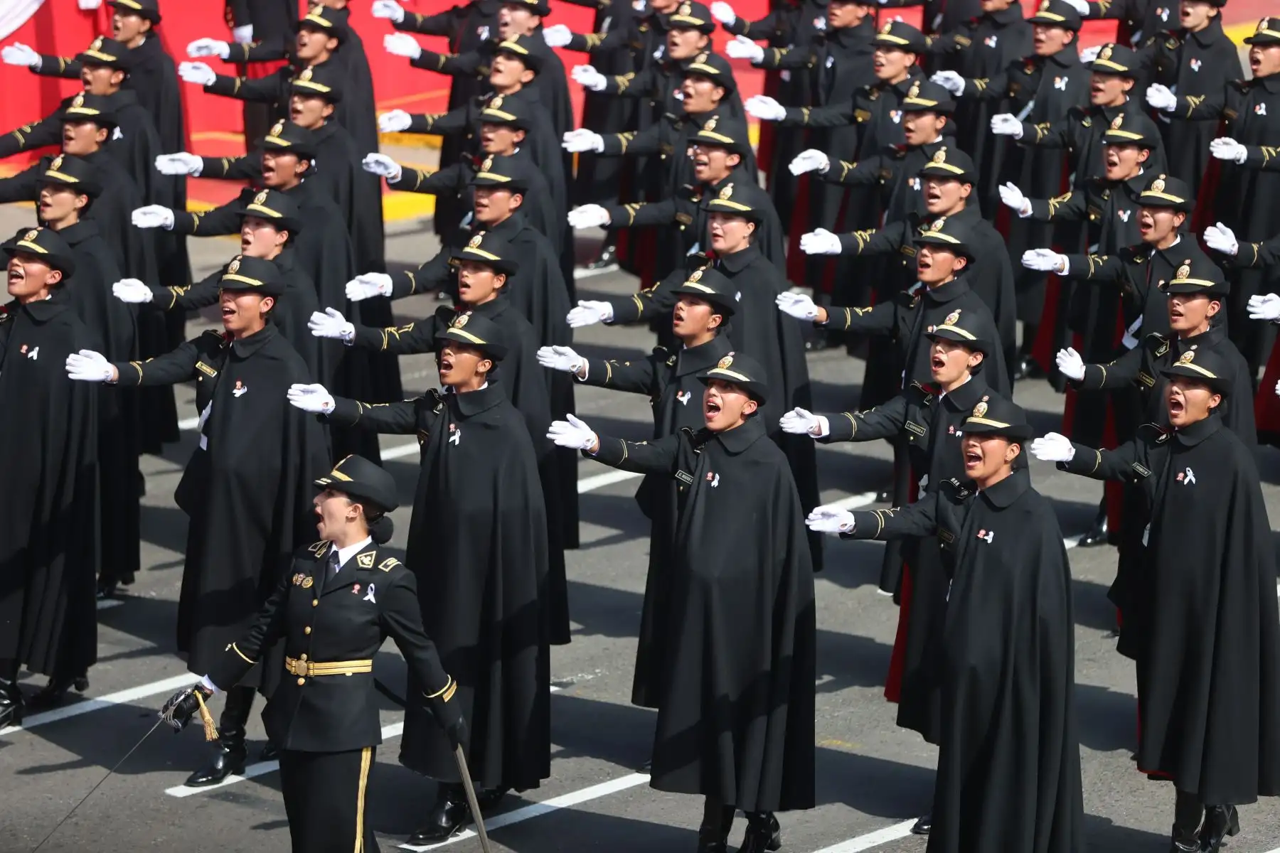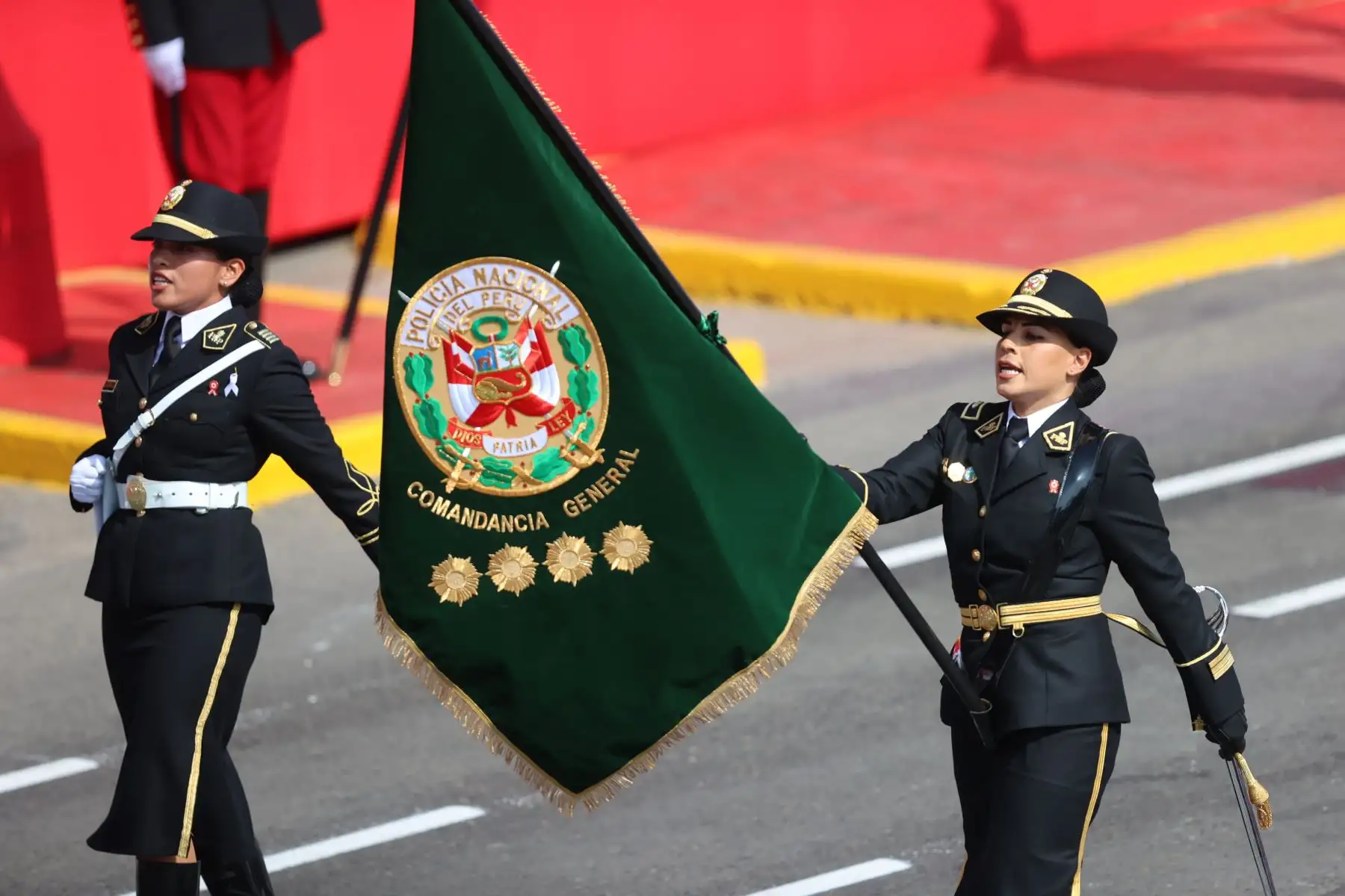 29/07/2023 Policía Nacional del Perú, en la Gran Parada y Desfile Cívico Militar 2023 que se realiza en la emblemática Avenida Brasil, como parte de los actos conmemorativos por el 202 aniversario de la Independencia Nacional del Perú. Foto: ANDINA/ Andrés Valle
