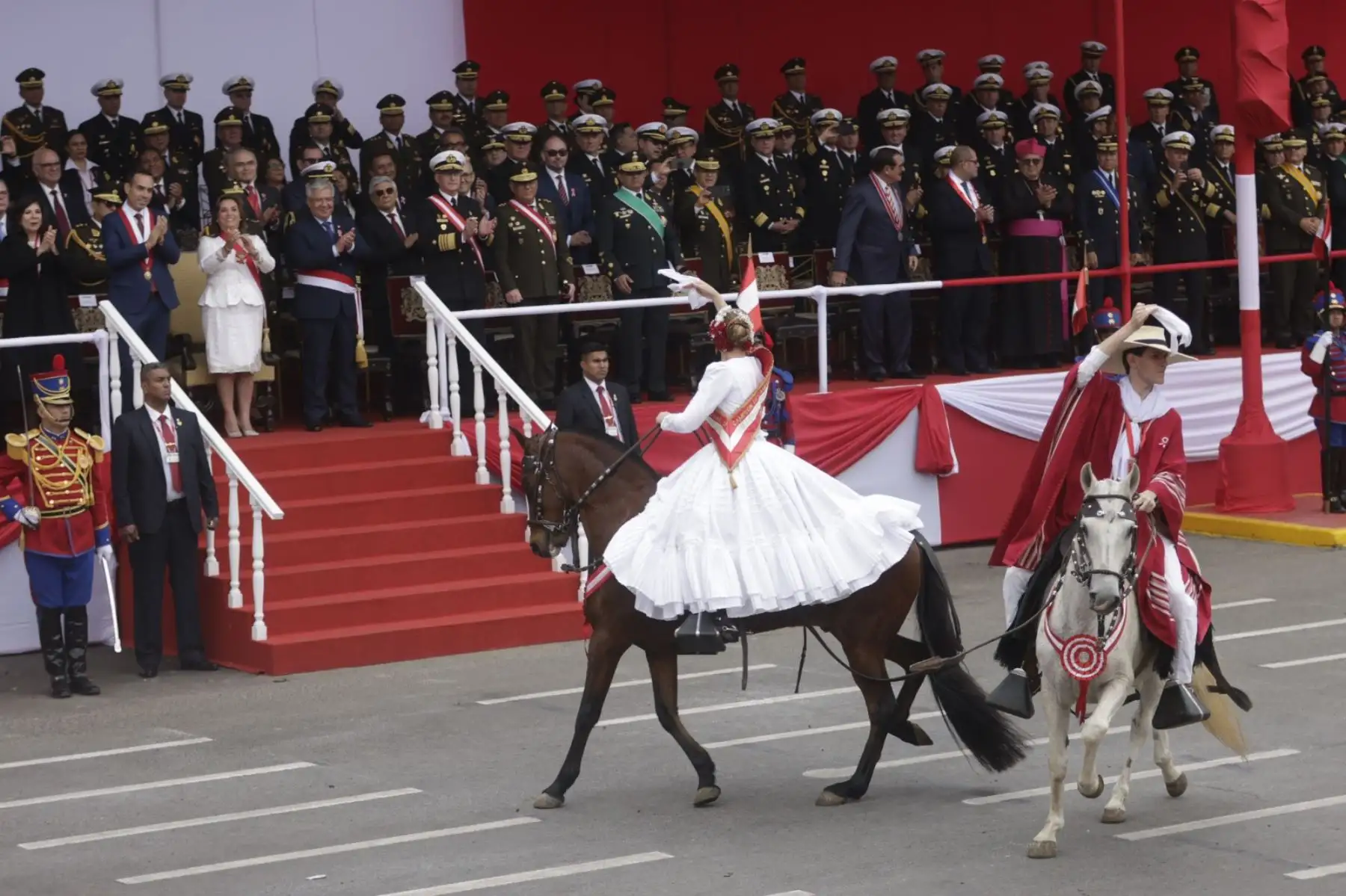 29/07/2025 Representación artística con caballos de paso participan en la Gran Parada y Desfile Cívico Militar 2025 como parte de los actos conmemorativos por el 204° aniversario de la Independencia del Perú.