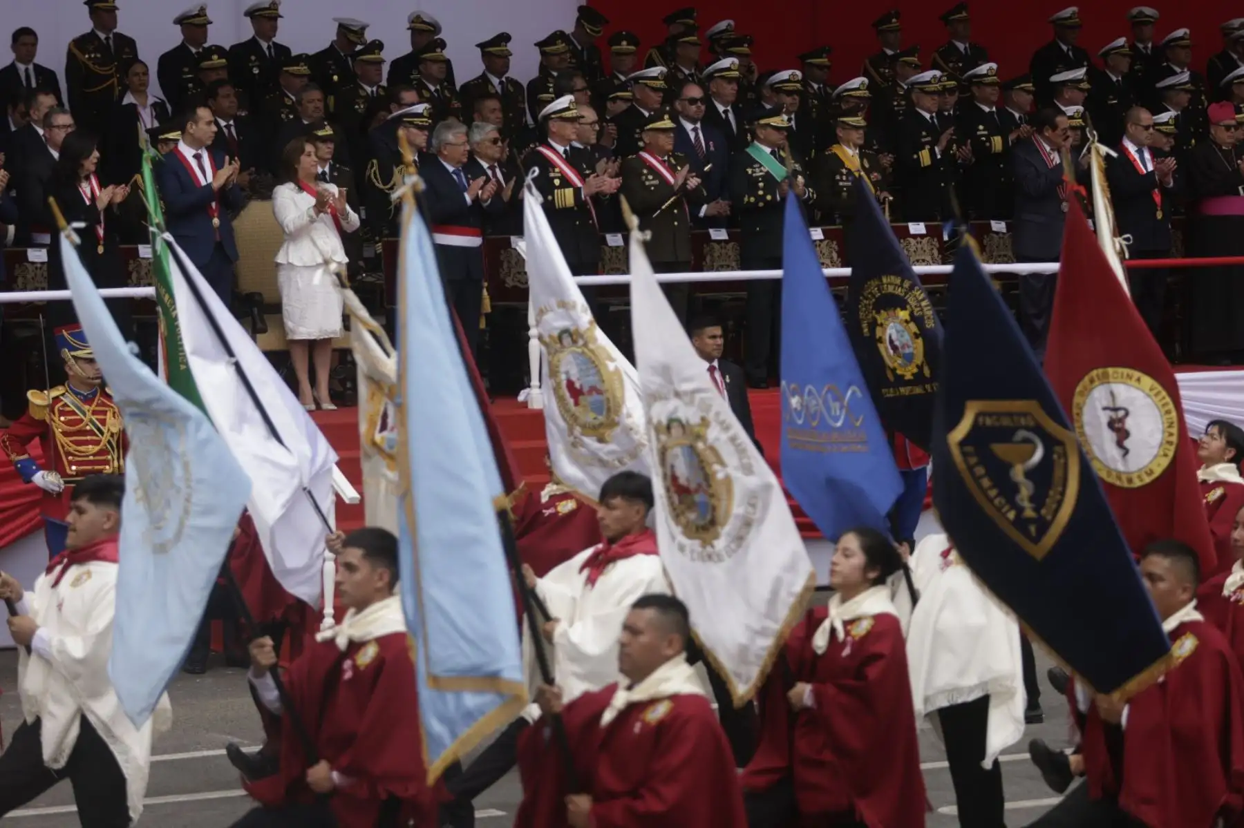 29/07/2025 Estudiantes de la Universidad Nacional Mayor de San Marcos participan en la Gran Parada y Desfile Cívico Militar 2025 como parte de los actos conmemorativos por el 204° aniversario de la Independencia del Perú.