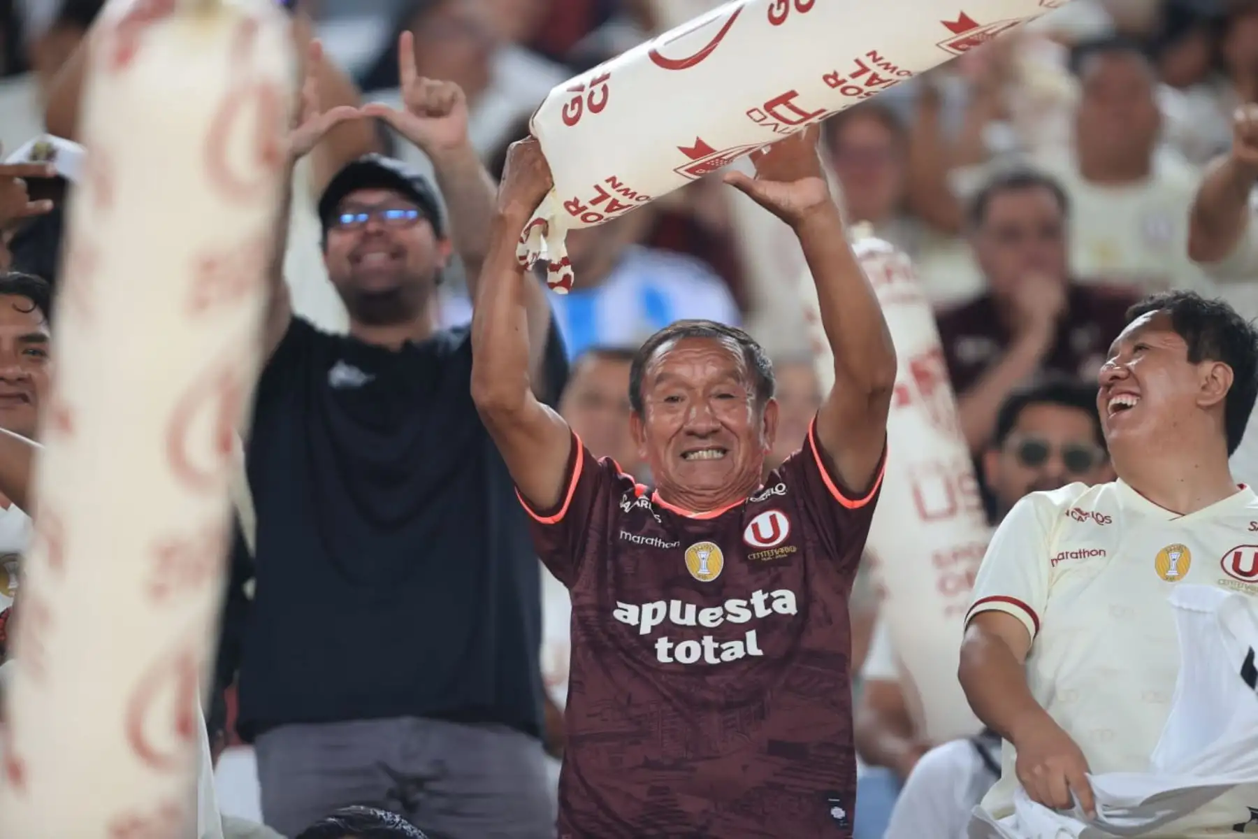 05/04/2024 Hinchas de Universitario de Deportes alientan a su equipo previo al partido ante el club Alianza Atlético por la Liga 1 2024, en el Estadio Monumental de Ate. Foto: ANDINA/Jhonel Rodríguez Robles