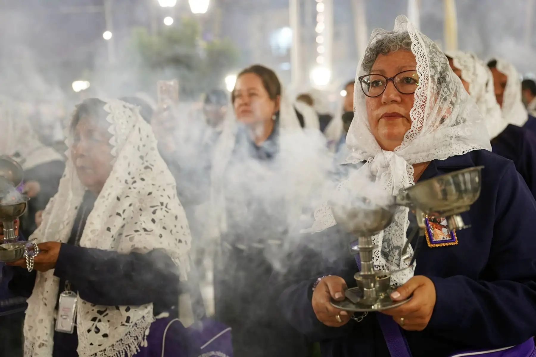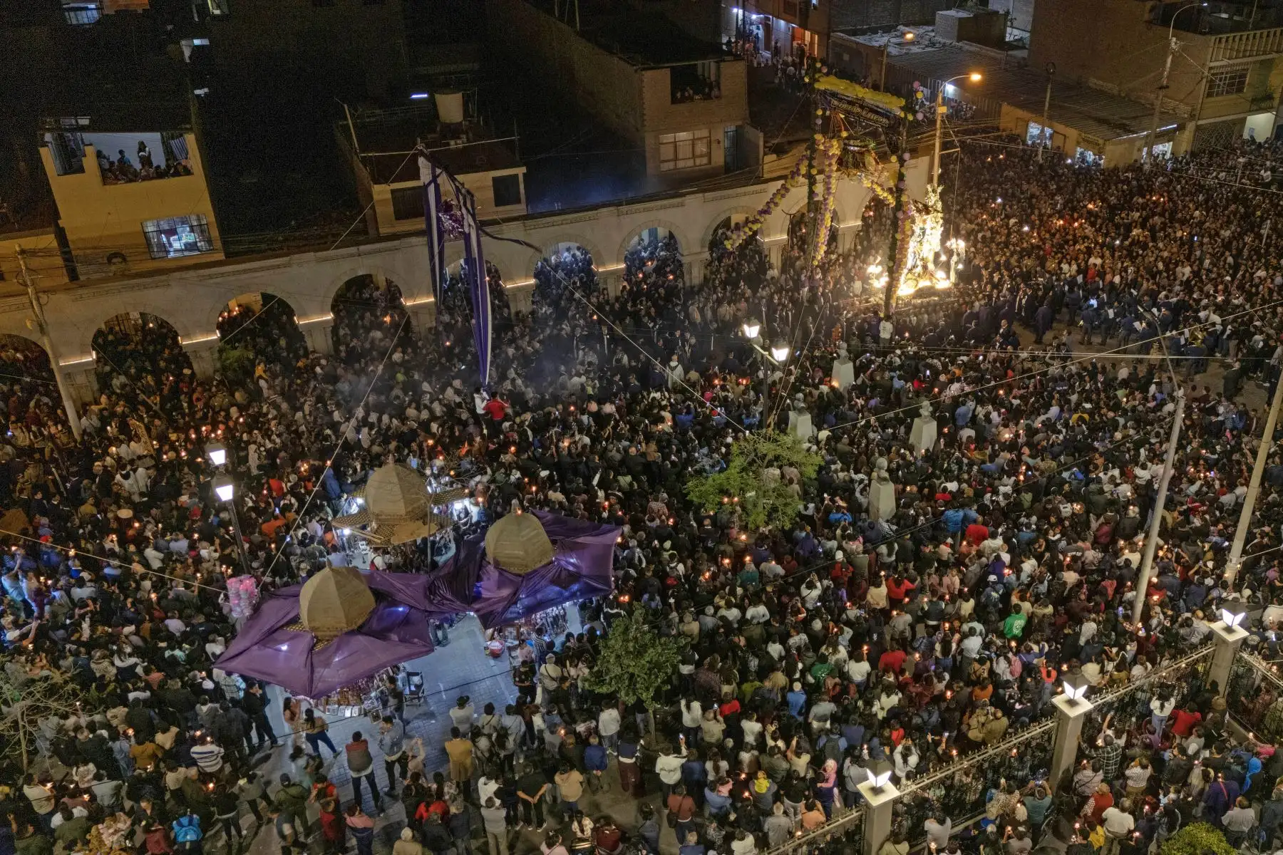 22/10/2024 Miles de feligreses acompañan desde anoche el primer recorrido procesional del Señor Crucificado de Luren por las calles y avenidas de la ciudad de Ica y que hoy al mediodía retorna a su santuario. Foto: Genry Bautista