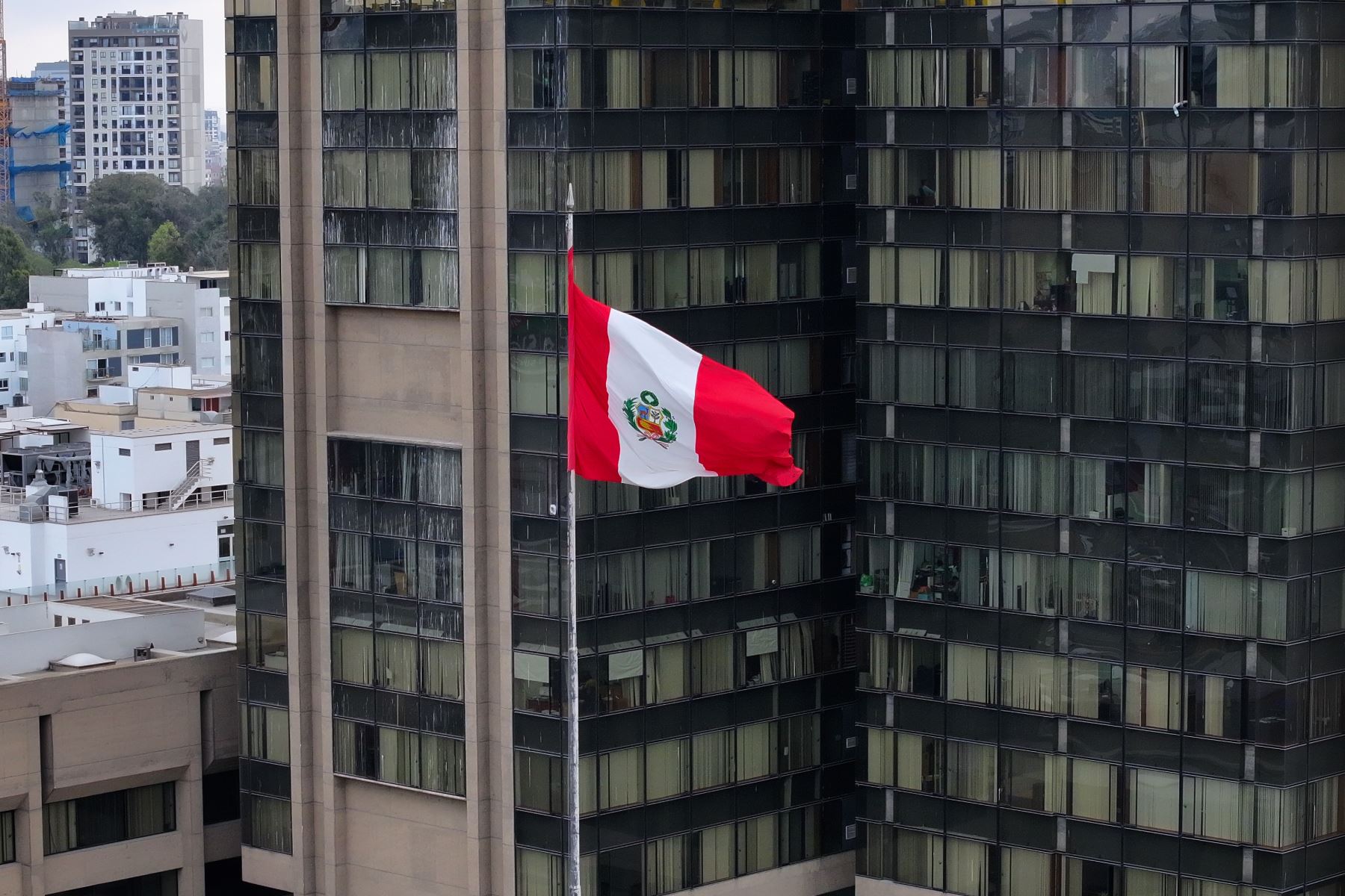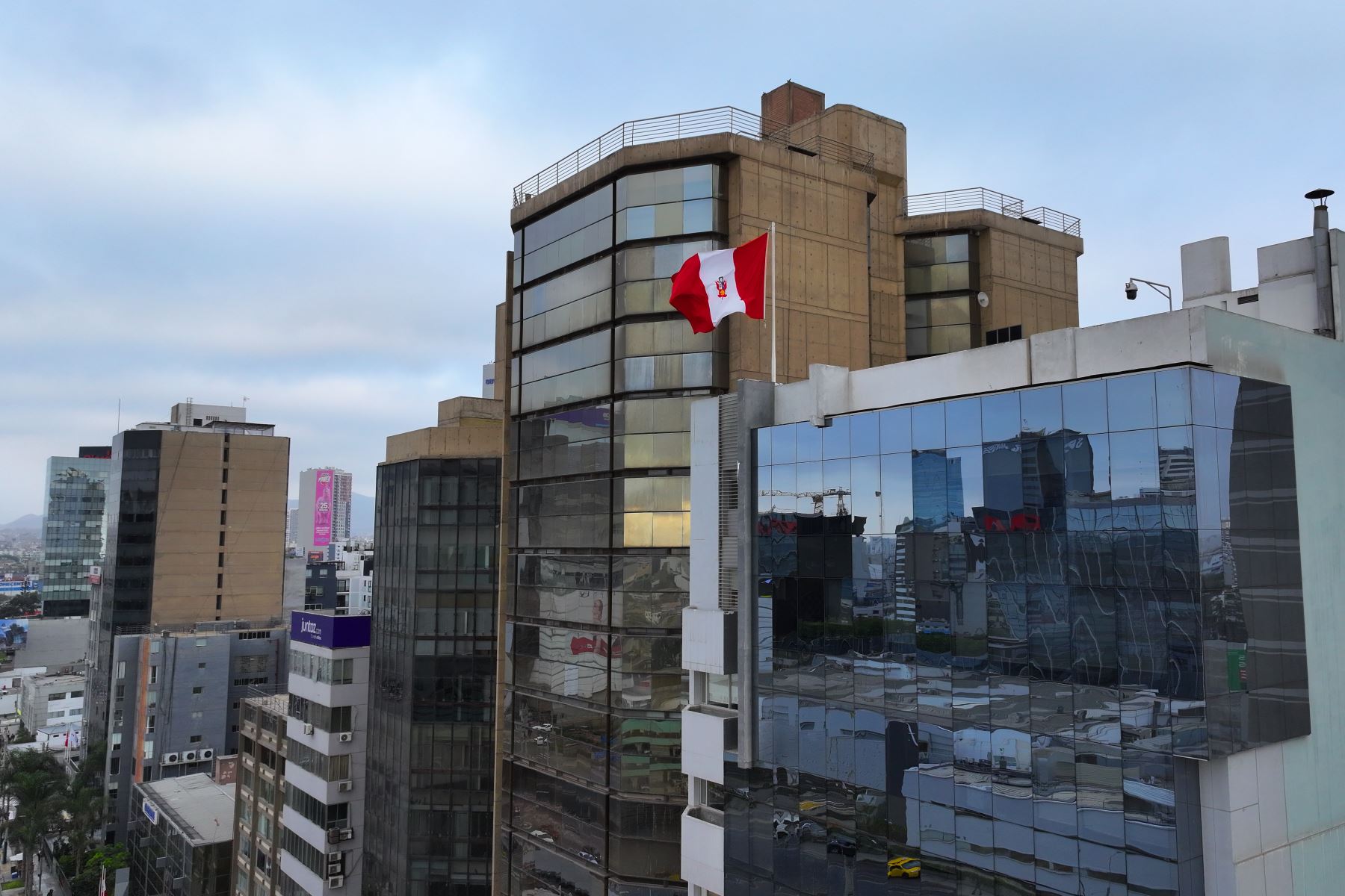 20/11/2025 Bandera del Perú izada en el frontis de Petroperú, en San Isidro, como parte de las nuevas disposiciones del Poder Ejecutivo que incluye el izamiento obligatorio de la bandera nacional en instituciones públicas. Foto: ANDINA/Daniel Bracamonte