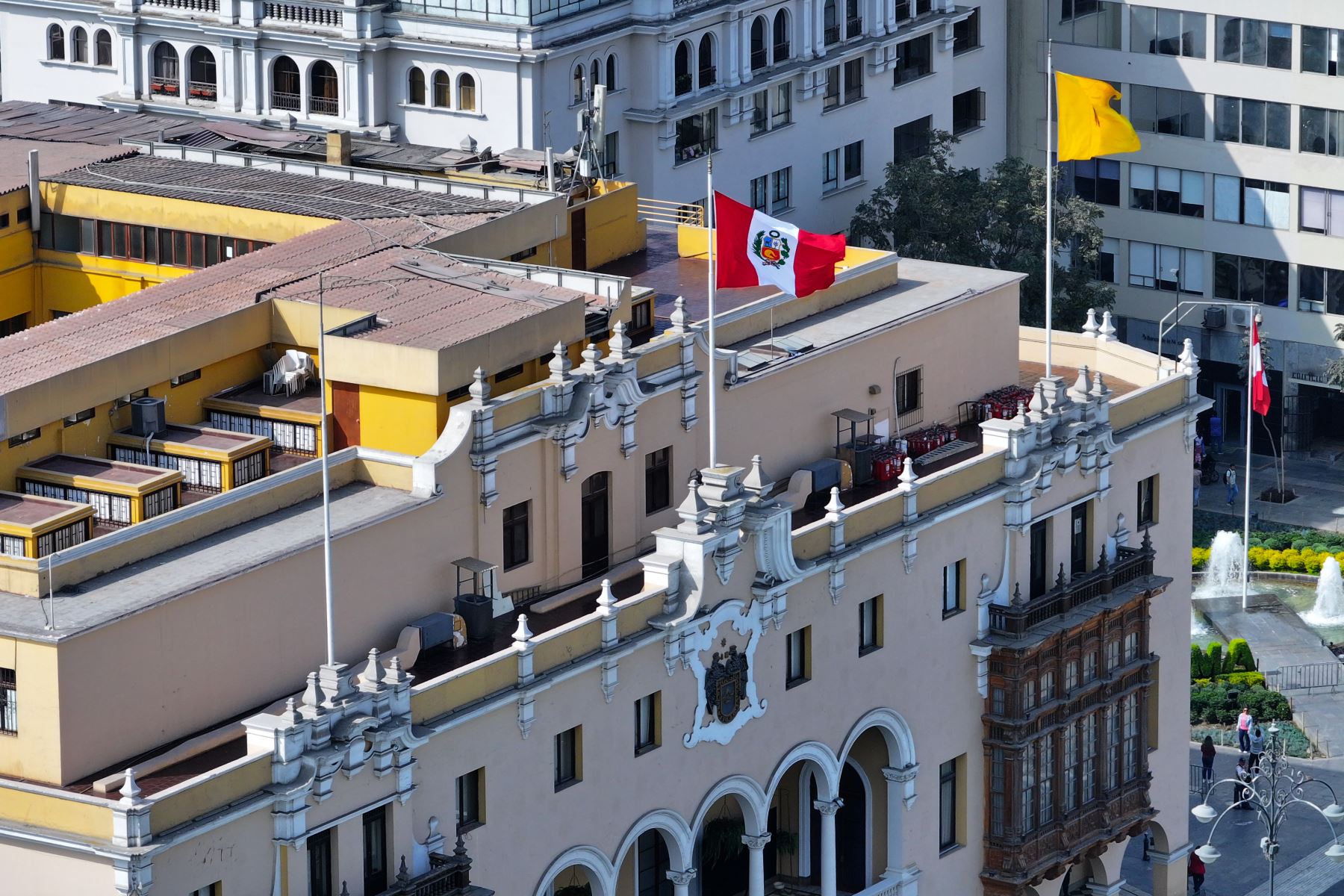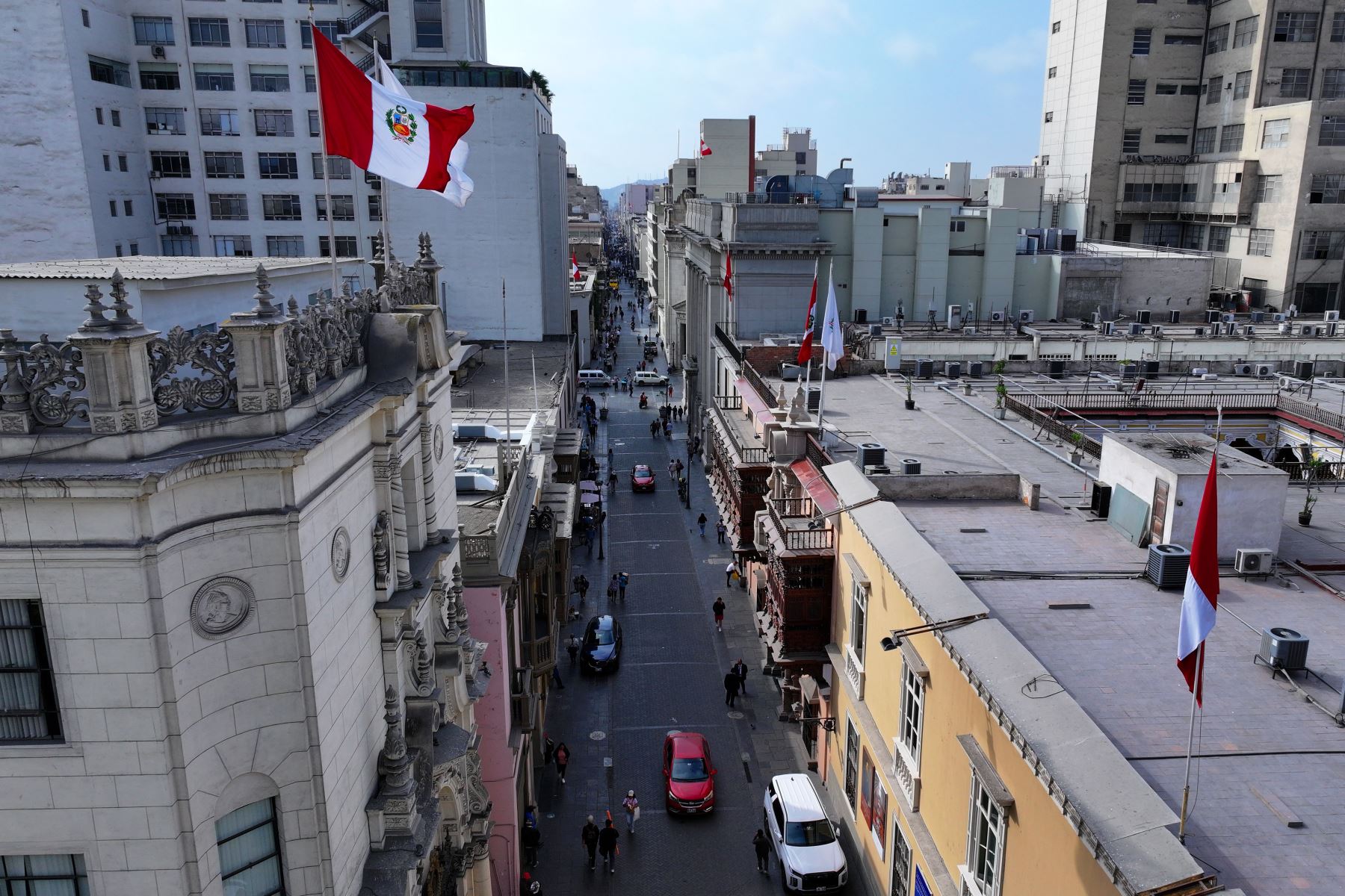 20/11/2025 Banderas del Perú izadas en los frontis de la Defensoría del Pueblo y del Ministerio de Relaciones Exteriores, en el Cercado de Lima, como parte de las nuevas disposiciones del Poder Ejecutivo que incluye el izamiento obligatorio de la bandera nacional en instituciones públicas. Foto: ANDINA/Daniel Bracamonte