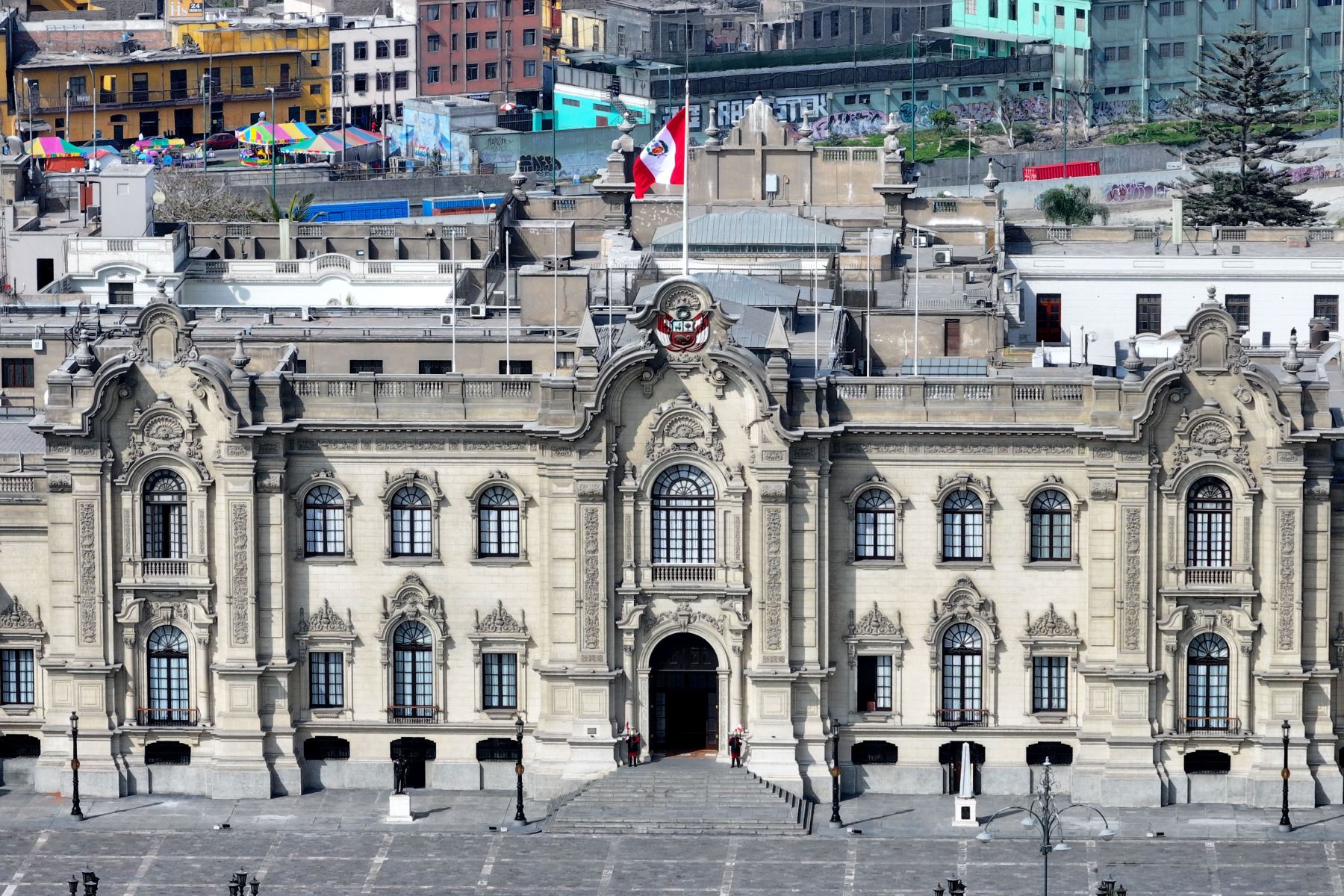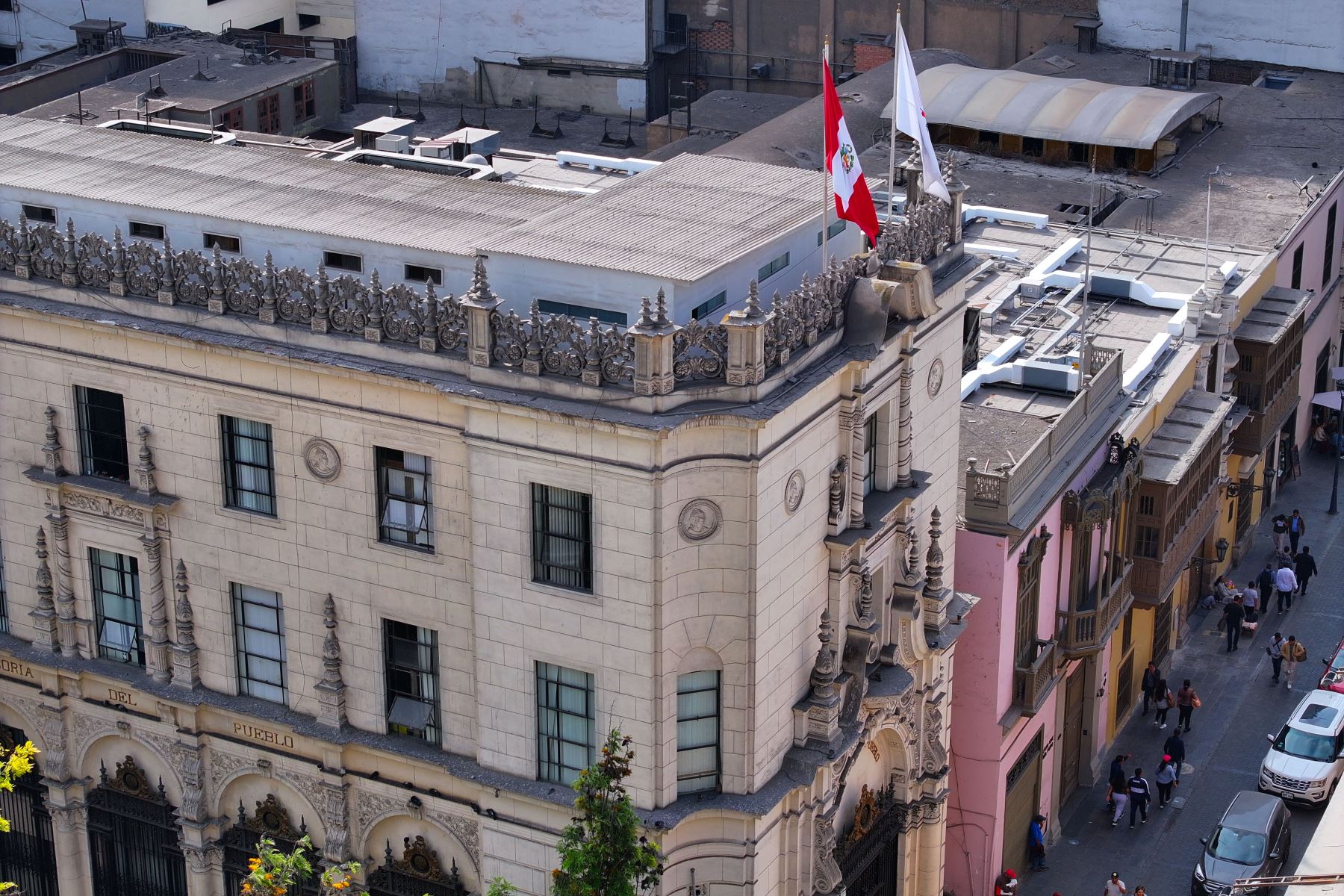 20/11/2025 Bandera del Perú izada en el frontis de Palacio de Gobierno, en el Cercado de Lima, como parte de las nuevas disposiciones del Poder Ejecutivo que incluye el izamiento obligatorio de la bandera nacional en instituciones públicas. Foto: ANDINA/Daniel Bracamonte