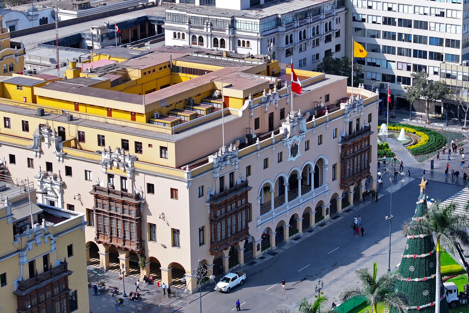 20/11/2025 Bandera del Perú izada en el frontis de la Municipalidad de Lima, en el Cercado de Lima, como parte de las nuevas disposiciones del Poder Ejecutivo que incluye el izamiento obligatorio de la bandera nacional en instituciones públicas. Foto: ANDINA/Daniel Bracamonte