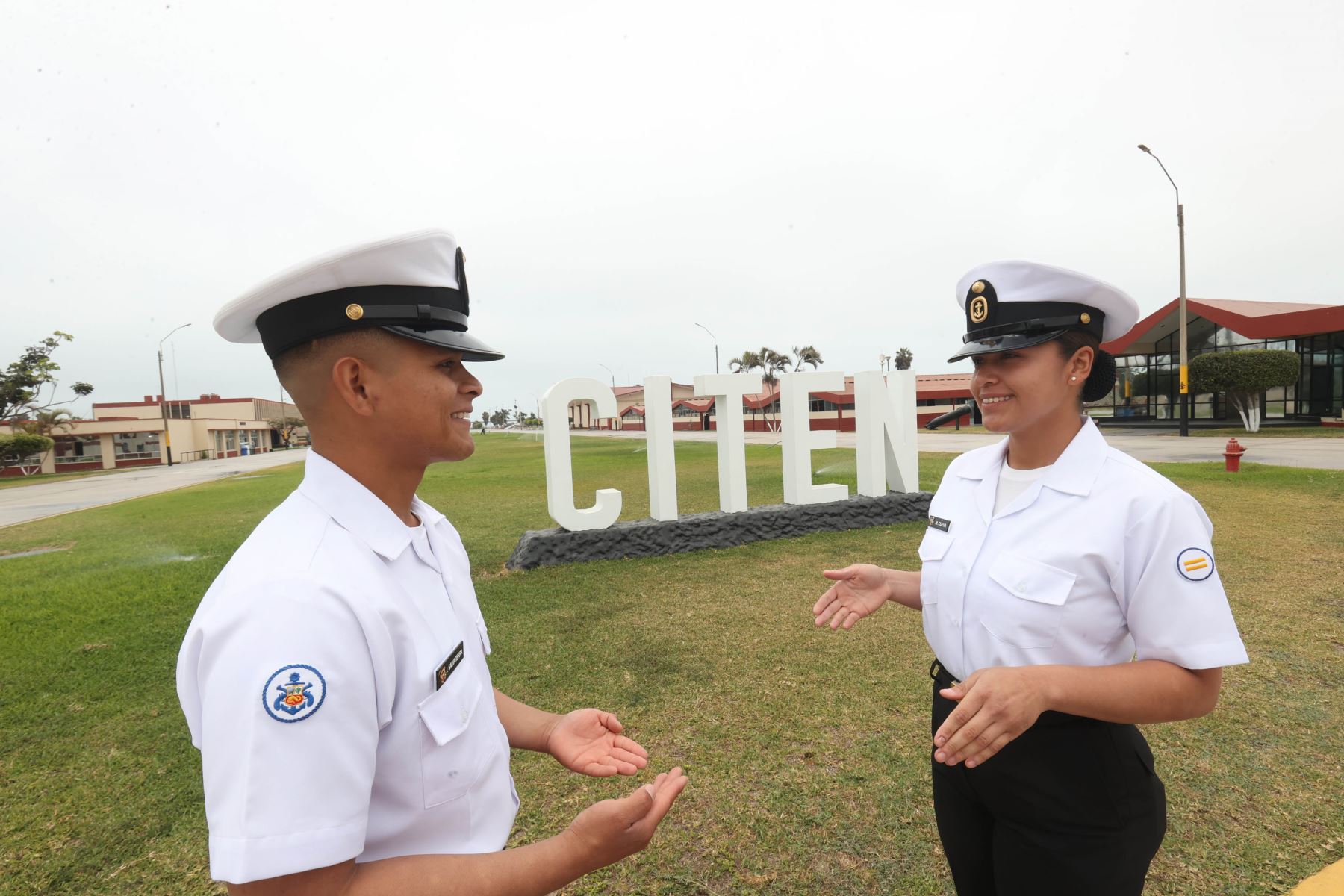 13/11/2025 Técnico segundo y músico Pablo César Prado Navarro y Oficial de Mar Primero Comunicadora Audiovisual Angélica Rojas Castañeda del Instituto de Educación Superior Tecnológico Público Naval – CITEN.