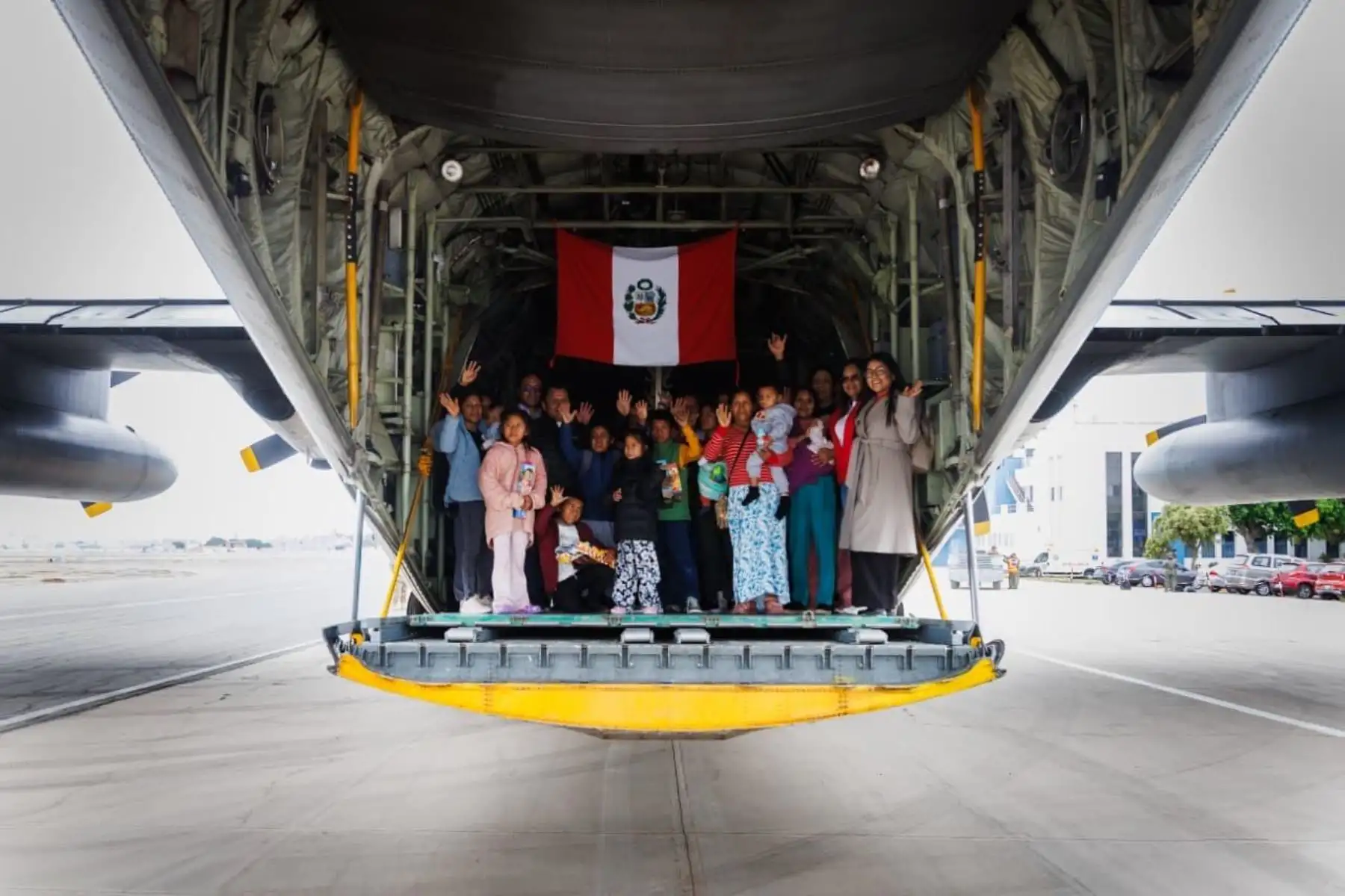17/10/2025 El retorno fue posible gracias a un KC-130 Hércules de la Fuerza Aérea del Perú, que partió desde la Base Aérea Las Palmas con destino a la Base Militar de Ciro Alegría, en Condorcanqui, en una operación conjunta con el Ministerio de Salud (Minsa) y el Programa Integral Nacional para el Bienestar Familiar (Inabif), del Ministerio de la Mujer y Poblaciones Vulnerables (MIMP). Foto:MINDEF