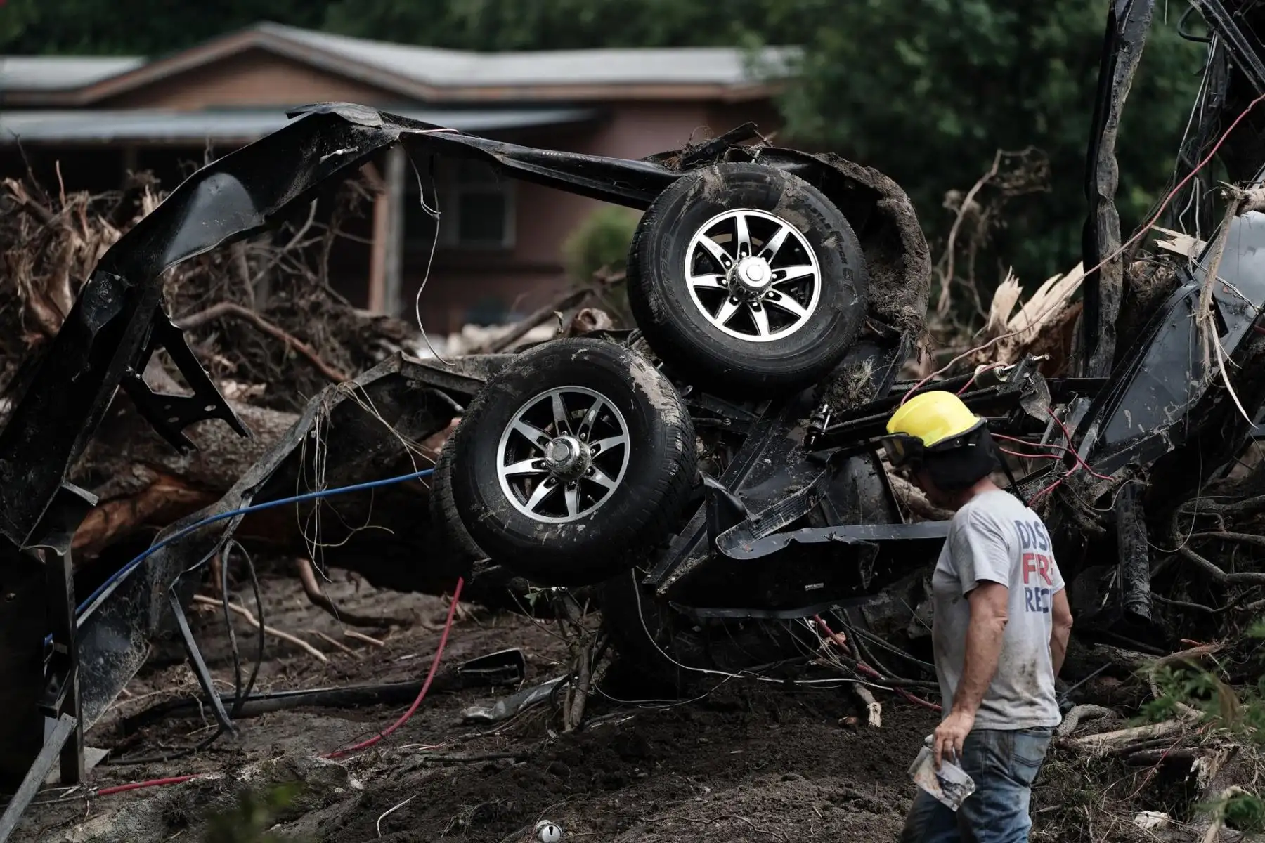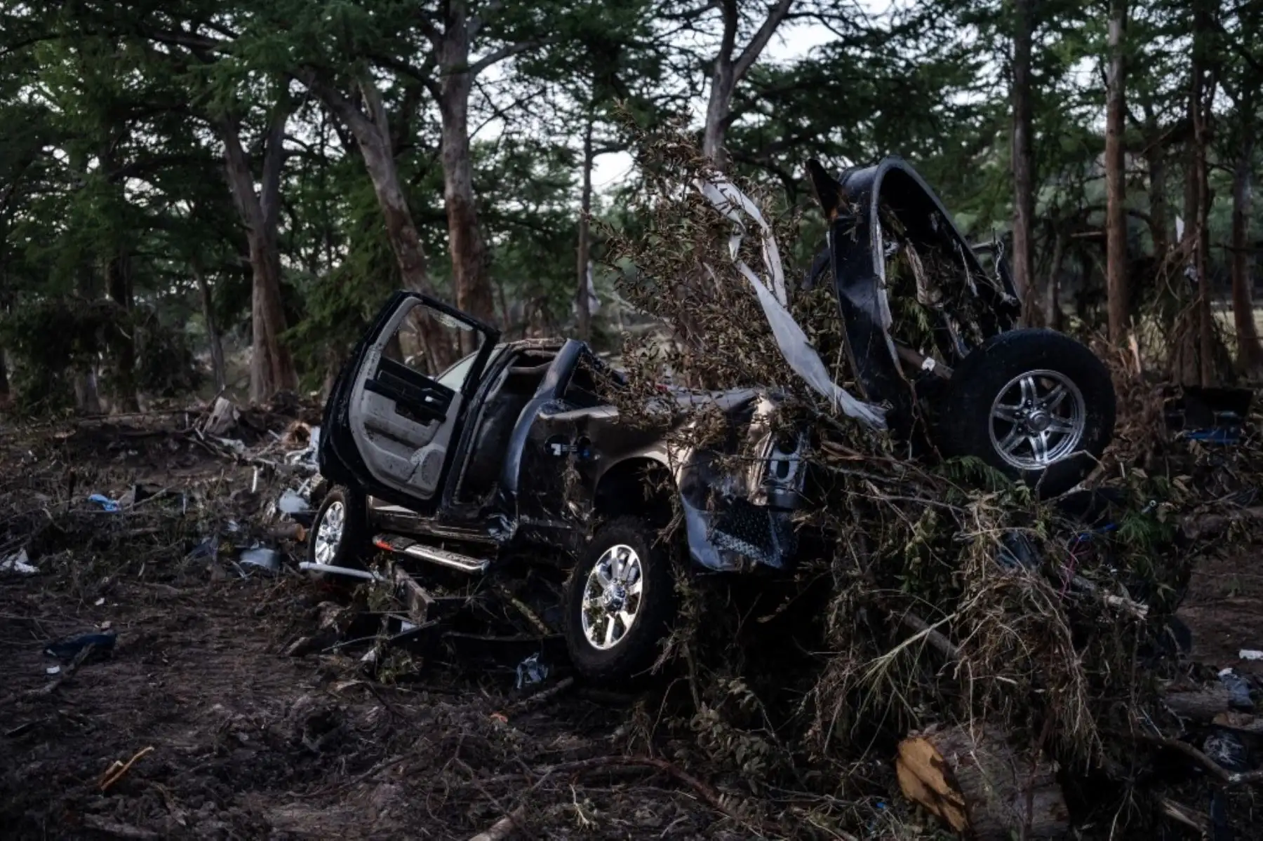 08/07/2025 Montones de escombros, barro y árboles arrancados complican las labores de rescate en Hunt. La comunidad local se ha sumado a los esfuerzos para hallar a decenas de personas que siguen desaparecidas desde el fin de semana. Foto: EFE